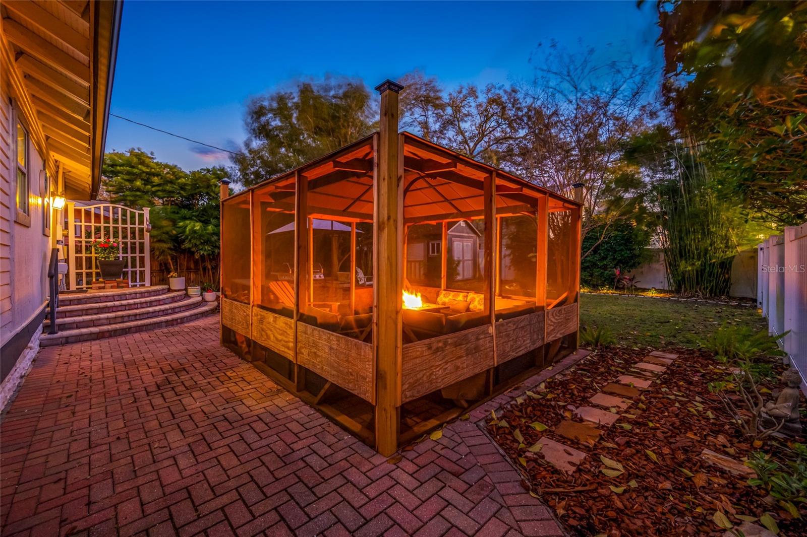 LOCATION, LOCATION, LOCATION! There is a specific kind of magic that exists on the border of North Clearwater and Dunedin. As featured in the Tampa Bay magazine, this is a neighborhood where the trees themselves tell stories. You'll see tree lined streets with full-sized chandeliers of mermaids, glowing jellyfish, flamingos and this home's own custom Chihuly-inspired bubble fixture that shines bright, a gift of "literal light" created by neighbors to lift the spirit. While many historic homes require a compromise between character and convenience, this charming bungalow with 3 bedrooms, 2 baths, and 1,658-sq ft, has been lovingly brought into the modern era. The goal of the current owner was simple, preserve the soul of 1925 while bringing the home up to todays standards. In 2006, the plumbing was updated and in 2008 the electrical was updated. The journey began for this owner in 2019, with over $90,000 in recent upgrades, starting with a high-efficiency tankless water heater was installed, and a dedicated gas line. In 2020, the focus shifted to the exterior, with Hurricane-grade windows installed on all but the unexposed east side of the house and a gutter system around the home. The owner also added a custom-designed 10x10 Tuff-Shed, providing ample space for hobbies, gardening tools, etc. The year 2022 brought one of the most significant upgrades any homeowner could desire: a brand-new roof, and in 2023 the HVAC was replaced. The primary bathroom was completely renovated in 2023 with subway tile, high-end fixtures, and a free standing soaking tub, bridging the gap between the home's vintage roots and contemporary luxury. In 2024, the final touches were applied with interior & exterior painting. All in all, this home can be described as "bungalow chic" with hardwood flooring throughout, a cozy fireplace in the living room, along with a sunroom, dining room, and a functional kitchen with quartz counters, and stainless steel appliances. While the front porch is for connecting with the neighborhood, the backyard is for escaping the world. The current owners have transformed this space into a true oasis. In 2020, a new back brick patio was added, creating a sophisticated transition from the back door to the gardens. Here, you will find a fully fenced yard, with an outdoor screened-in gazebo and a dedicated BBQ area, perfect for entertaining. The landscaping has been lovingly cared for to create layers of privacy and color. There is an accessible gate which provides the perfect parking spot for a golf cart—the preferred mode of transportation in this golf-cart-friendly community. From here, you are only a block away from the Pinellas Trail, the Neighborhood Park, and the scenic beauty of waterfront Edgewater Drive. You are minutes away from the vibrant energy of Downtown Dunedin with its boutique shops, award-winning breweries, restaurants, and art galleries. With $90,000 in recent upgrades, the heavy lifting has been done. The roof is new, the air is cold, the windows are strong, and the spirit of 1925 is alive and well. This is your opportunity to own a piece of Clearwater history, wrapped in the comfort of modern luxury. As the teal and purple lights of the Chihuly fixture reflect off the iridescent glass and the evening breeze begins to kick up from the Intracoastal as you watch the sunset from your porch, you will realize that this isn't just a home, it is the beginning of your next chapter. NOT IN A FLOOD ZONE! (X500) NO FLOODING