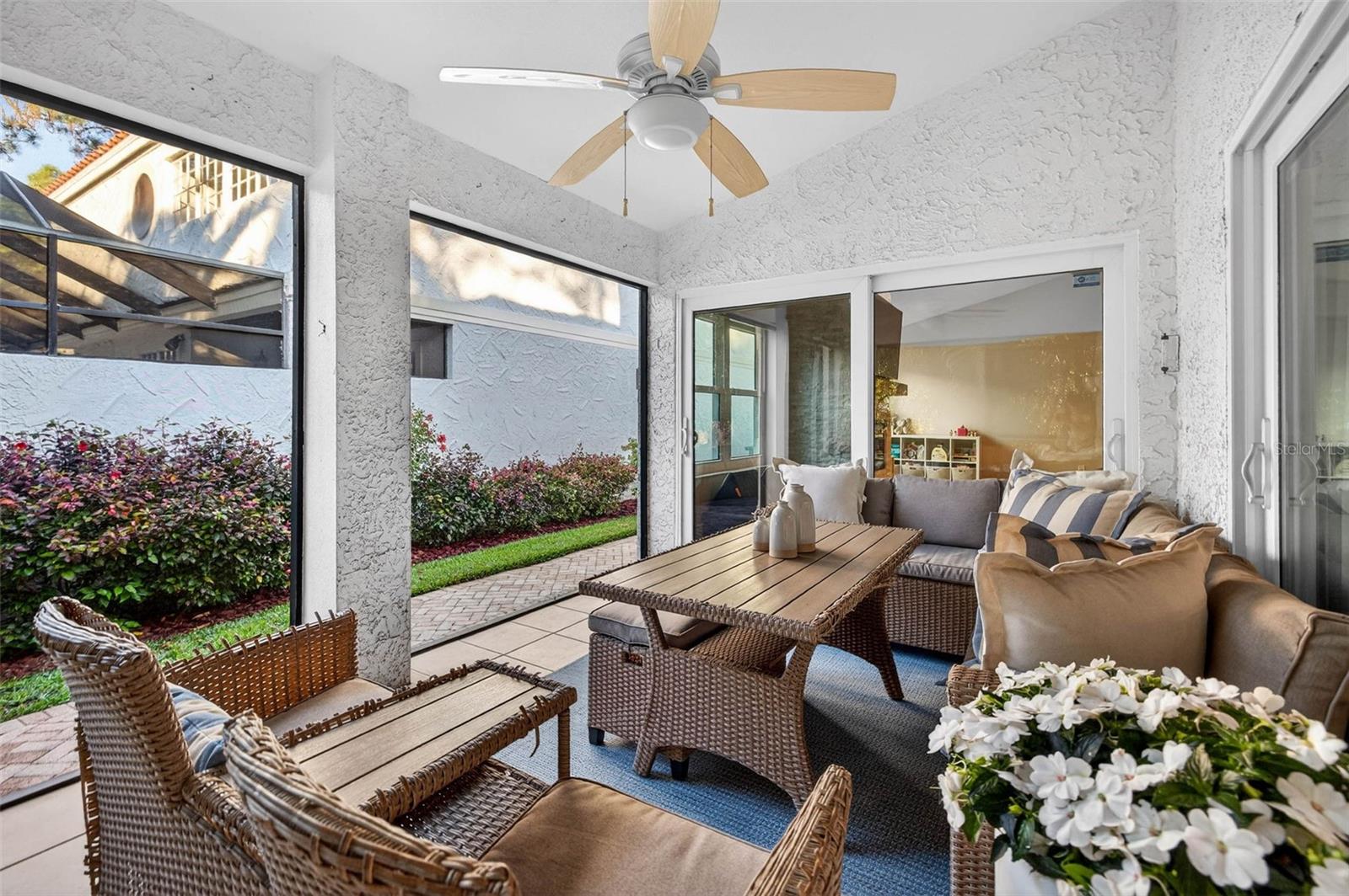 Welcome to Florida living at its best! This beautifully maintained one-level home tucked inside the sought-after Vizcaya community of Feather Sound—where comfort, convenience, and dream Florida living come together effortlessly. The perfect marriage of low maintenance, convenience and comfort, this elevated 3-bedroom, 3-bath home offers 2,094 sq ft of perfectly designed living space! Soaring vaulted ceilings, abundant natural light, and a warm, open feel --this is the one! The abundant living space centers around a stunning updated fireplace with stone, mantle, and marble hearth—perfect for cozy evenings or hosting friends. The thoughtful layout includes large bedrooms offering space to unwind , split floorplan and ample storage. The oversized primary suite is the thing dreams are made of: tall ceilings, sliding doors to the patio, soaking tub, walk in shower, double vanities and TWO separate walk in closets! The kitchen flows seamlessly into the dining and spacious living areas, ideal for holidays, game days, and casual get-togethers. The flex/bonus space can act as a breakfast room, second dining, office or play room while the two car attached garage with electric vehicle outlet is ideal for storing your hobbies. Laundry is a breeze with your indoor air conditioned laundry room. Step outside to the screened lanai, where morning coffee and cool evening breezes become part of your daily rhythm. Your private backyard is perfect for low maintenance living and your furry friends. Major updates bring peace of mind, including new A/C (2024), water heater (2023), updated bathrooms, kitchen updates, new appliances, electric vehicle charger outlet, landscaping, and a Sentricon termite protection system. Vizcaya is a charming, deed-restricted enclave of just 34 Mediterranean-style homes, minutes to the vibrant Downtown St. Pete and 13 minutes to T ampa, close to Tampa International Airport, Clearwater Airport, Topgolf, Publix, and the Gulf beaches—a commuter’s dream with the relaxed neighborhood vibe you're looking for. HOA fee of $220 a month covers items such as landscaping, trash, and sprinklers. Memberships are available at the nearby Feather Sound Country Club. Schedule your showing of this beautiful home today!