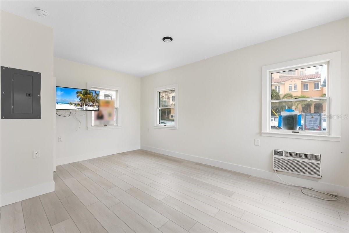 One or more photo(s) has been virtually staged. Once called “A Little Bit of Heaven” this Ground-floor studio unit located in the desirable Coral Resort on Clearwater Beach. This remodeled shell presents a rare opportunity for the buyer to complete and customize the space to their own vision. Ideally situated directly on the Intracoastal Waterway, the community offers a waterfront dock and a resort-style pool overlooking the water. Just two blocks from the sugar sand beaches of Clearwater Beach, the property is located in the tourist district and is approved for short-term rentals, making it a strong income-producing opportunity as a vacation rental. An excellent option for first-time investors or anyone looking to own an affordable slice of the beach lifestyle with both boating and beach access nearby.