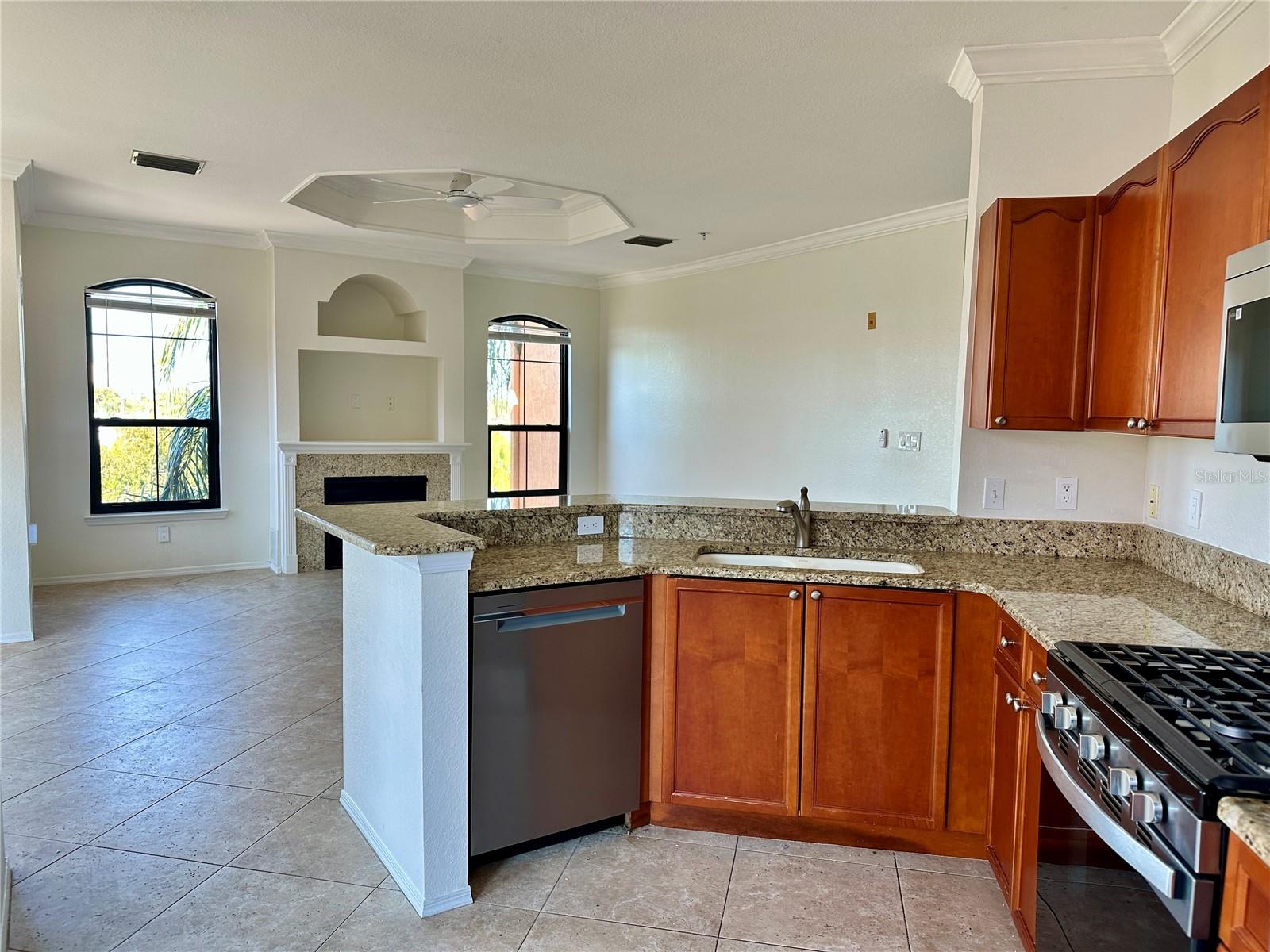 Experience the ultimate coastal retreat at The Grand Bellagio at Baywatch, an exclusive gated waterfront community nestled along the serene shores of Old Tampa Bay in sunny Clearwater, FL. This spacious 2-bedroom, 2-bathroom residence (plus Bonus Area) offers 1,368 sq. ft. of refined living space, perfectly positioned for those who crave a lifestyle defined by boating, relaxation, and luxury amenities. The interior is designed with both comfort and versatility in mind, featuring a bright living area anchored by a gas fireplace and an elegant dining space. The kitchen is a chef’s delight, recently updated with BRAND NEW stainless steel appliances—refrigerator, gas range, dishwasher, and microwave—complemented by rich cherry cabinetry and Granite countertops that extend throughout the home. The primary suite serves as a private sanctuary, offering a large walk-in closet and an expansive en-suite bathroom with a garden tub and dual sinks. Unique to this floor plan is a dedicated "BONUS ROOM," providing the perfect footprint for a high-end home office, a quiet library, or a cozy morning sunroom. Inside Laundry Room with Washer and Dryer included. A separate storage unit (#88) on the first floor is included for convenience. While the unit maintains its classic charm, the entire building and grounds have been significantly enhanced with major 2023 upgrades, including brand-new hurricane-impact PGT windows, new roofing, fresh stucco, and updated landscaping. The building also benefits from a community-wide water softener system, conveniently maintained by the HOA. Life at The Grand Bellagio feels like a permanent vacation. Offers 24 hr guardhouse with check-in guard pavilion; 6800 sq. ft. clubhouse; owner conference room. You’ll have access to a geothermal-heated pool and spa with private cabanas, a 1.5-mile lighted waterfront jogging path, a 24 hr fitness center, tennis and volleyball courts, and even a kayak ramp/storage. Outside grills in front of each building, and for boaters, there are 62 private slips available for rent or sale, providing direct water access to the bay's best restaurants and sandbars. Located just minutes from the world-class sands of Clearwater Beach and the convenience of Tampa International Airport, this pet-friendly community is the gold standard for Florida living. Please note that a new owner must own for 7 months before renting the unit. Schedule a private showing and see why this waterfront gem is the perfect place to call home in 2026. Owners are offering a flooring allowance...ask me today!