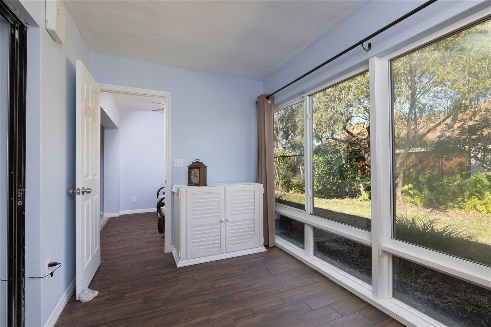 ***MOTIVATED SELLER*** Welcome to your new home located in the heart of this family-friendly Golf Community. Your new home offers picturesque scenery and a quiet atmosphere. The home features a walkway to a gated patio/courtyard area, as well as an entrance to the patio/courtyard area through the detached one-car garage. A new door opener was installed in 2024. Once you enter the home, you are met with an updated kitchen with new lower cabinets and countertops (2024). The dining room/living room combination lend themselves to a spacious, open floor plan with vaulted ceilings. There is a built-in dry bar adjacent to the kitchen. The split-plan, 2-bedroom home features a sizeable primary bedroom (with new carpet 2024) with an en suite bathroom (with a new vanity in 2024) and a huge walk-in closet, along with a linen closet. A bonus room looks out upon the beautifully manicured flower beds. A new roof was installed in 2017, and a new HVAC system in 2022. The interior was painted in 2025, and the exterior was painted in 2022. This spacious home is located in the heart of the Feather Sound Golf Community and is located within 10 minutes of the St. Pete/Clearwater International Airport and under 20 minutes to the Tampa International Airport. The commute to I275 is less than 5 minutes and is located within 5 minutes of shopping and dining. This home is also located within 20 minutes of several of Florida's top-rated beaches. Make an offer today!