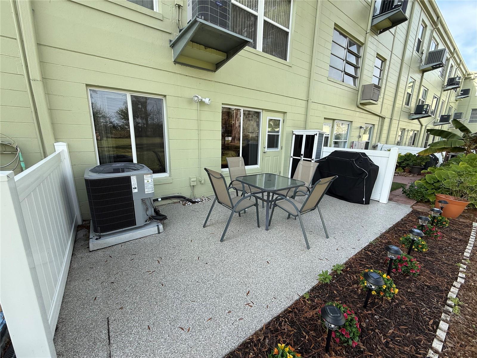 Beautiful, fully furnished, first-floor condo in the vibrant, active lifestyle community of On Top of the World. This two-bedroom, two-bath gem features wood-look laminate flooring throughout its living spaces and bedrooms. The kitchen boasts wood cabinets, under-mount lighting, matching appliances, and a spacious pantry nearby. Adjacent is a bright Florida room with a utility closet, housing a newer 2024 hot water heater and updated recessed lighting. Both bathrooms are beautifully remodeled, with a walk-in shower in the primary suite and a shower-tub combo in the guest bath. Enjoy energy efficiency with double-pane windows and the convenience of a stackable washer/dryer in the primary closet. The rear patio with epoxy floor, opens to a serene, private green space, and the brand new 2025 AC unit was repositioned to provide more space for entertaining guests or relaxing on a beautiful sunny day! Located on a quiet cul-de-sac, you’re just moments from the community clubhouse and all the incredible amenities—heated pools, private golf, tennis, a state-of-the-art gym, and more. Don’t miss this exceptional opportunity!