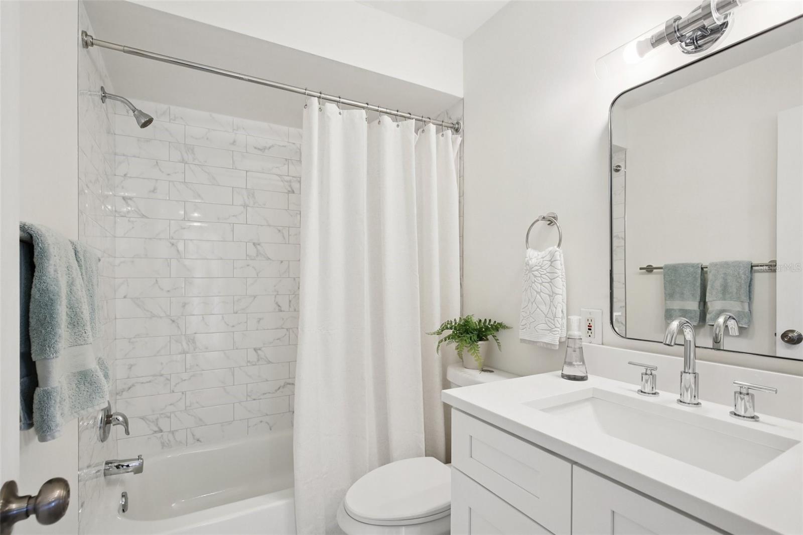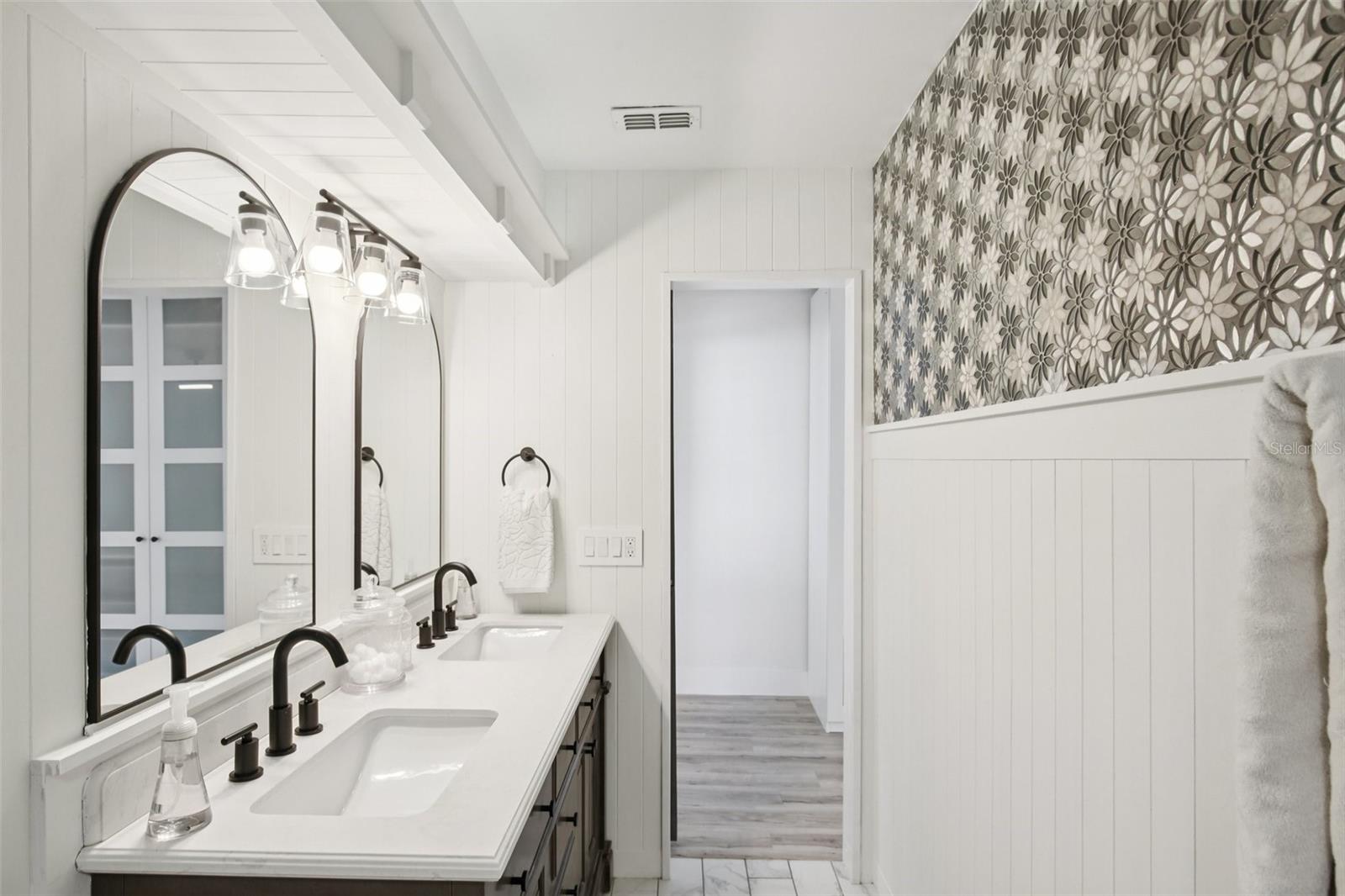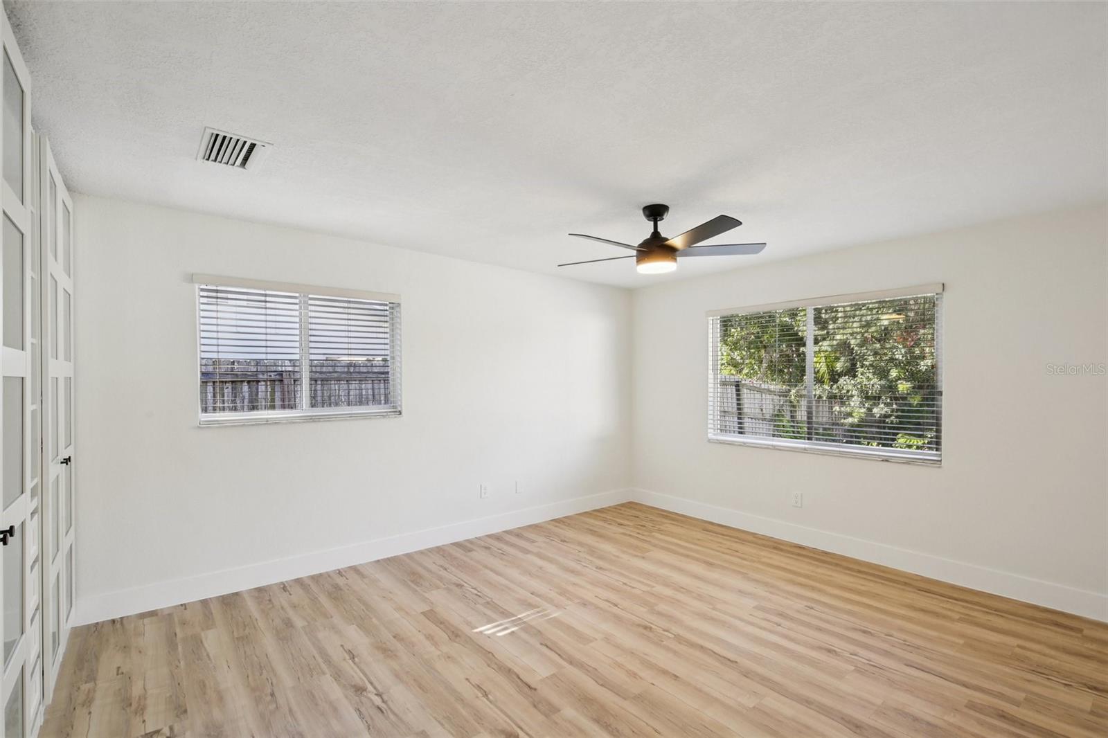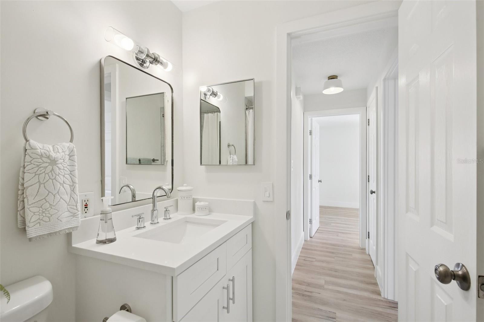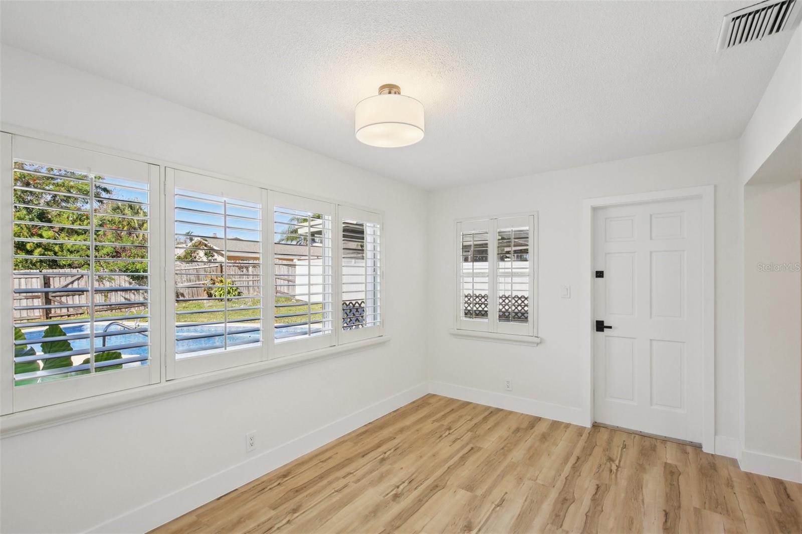 Fully renovated and move-in ready, this 3-bedroom, 2-bath pool home offers modern finishes, a functional layout, and effortless Florida living — all located in Flood Zone X (no flood insurance required). Updated in 2025, the home features luxury vinyl plank flooring, fresh neutral paint, recessed lighting, and updated fixtures throughout. The completely renovated kitchen showcases shaker-style cabinetry, sleek countertops, a clean tile backsplash, and brand-new stainless steel appliances, including a KitchenAid range and dishwasher, Samsung refrigerator, and Whirlpool microwave/vent. The kitchen opens seamlessly to the living and dining areas, creating an ideal layout for everyday living and entertaining. The primary suite includes a beautifully remodeled en-suite bathroom with dual-sink vanity, designer tile shower, modern fixtures, and a custom walk-in closet system. Two additional bedrooms are well sized and share a fully updated guest bathroom. Step outside to a private, fenced backyard featuring an oversized in-ground pool, newly resurfaced in 2025, along with a covered and screened patio — perfect for entertaining, relaxing, or enjoying year-round Florida weather. The lot extends beyond the back fence, offering additional space that can be cleared and customized. Major upgrades include a new roof (2025), A/C (2022), updated windows, and a newer electrical panel. Additional features include a 1-car garage and an indoor laundry room. Located in Clearwater and situated on the edge of Dunedin, just minutes from downtown Dunedin, Clearwater beaches, shopping, dining, and major roadways, this turn-key home is ideal as a primary residence, second home, or investment opportunity.
