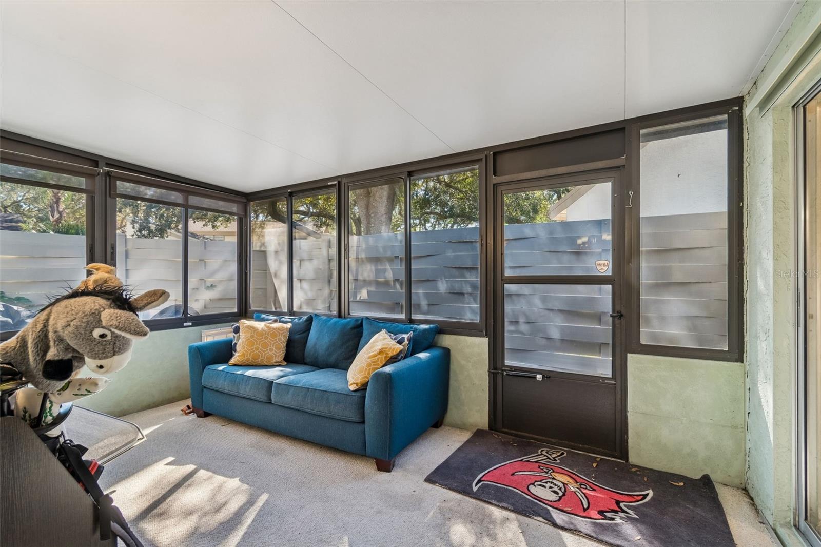 Winding Wood condo, ready for it’s new owners! With 3 bed, 2 baths, and a carport there is plenty of room for everyone. As you enter the front door you are greeted by high vaulted ceilings with accent beams. This home has an open living & dining space and fresh interior paint. The kitchen has cabinets galore, a great horseshoe layout, and you will enjoy the sunshine beaming from the window while you’re at the sink. The primary bedroom includes a walk-in closet and an en-suite bathroom. Two additional bedrooms have great closet spaces plus accent molding and plantation shutters. The main bath hosts a shower-tub combo. Inside laundry includes the washer & dryer. Enjoy multiple sliders out to the covered and screened lanai to enjoy our Florida weather and outdoor entertaining plus a patio space for the grill. The back patio is fenced and has great privacy. The community comes with a maintenance free lifestyle with lawncare, exterior maintenance including the roof and there is a community pool. The location is amazing, with easy access to US 19 or McMullen Booth Rd, plus is walkable to tons of shopping and dining and the Countryside Mall. Call today for a private tour!