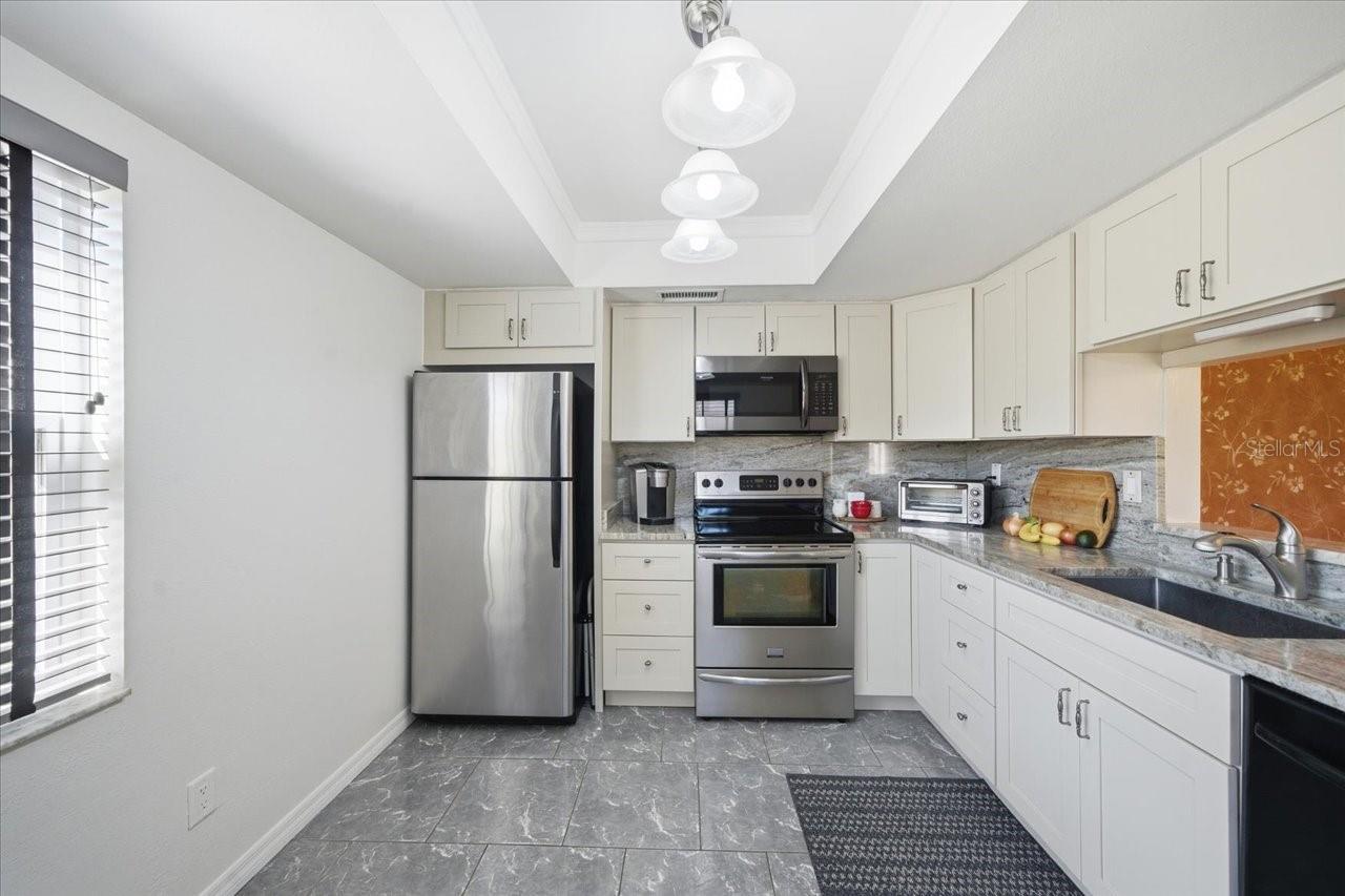 True Show Home | Fully Updated | Prime Clearwater Location Welcome to this beautifully updated 2-bedroom, 2-bath condo in the highly desirable Winding Wood community of Clearwater. Nestled on a quiet cul-de-sac, this meticulously maintained residence blends modern style, comfort, and easy living. Step inside to a bright, open floor plan featuring vaulted ceilings and fresh interior paint (2025) and loads of natural light. The fully renovated kitchen and bathrooms (2022) showcase granite countertops, stainless steel appliances, sleek finishes, and generous storage. The spacious primary suite offers a walk-in closet and an updated en-suite bath, while the guest bath is equally stylish and well appointed. Major system upgrades include a new HVAC (2021) and water softener system (2020). Additional highlights include in-unit laundry, a covered screened patio with privacy fencing, a carport with private storage, and easy access to the resort-style community pool. Low HOA fee covers exterior building and roof maintenance, lawn care, pest control, building insurance, cable TV, internet, and access to the resort-style community pool. Ideally located near Countryside Mall, dining, movie theaters, Enterprise Dog Park, and less than 20 minutes from the Dunedin Causeway and Gulf beaches. Stylish, move-in ready, and impeccably maintained—this Winding Wood gem truly checks every box.