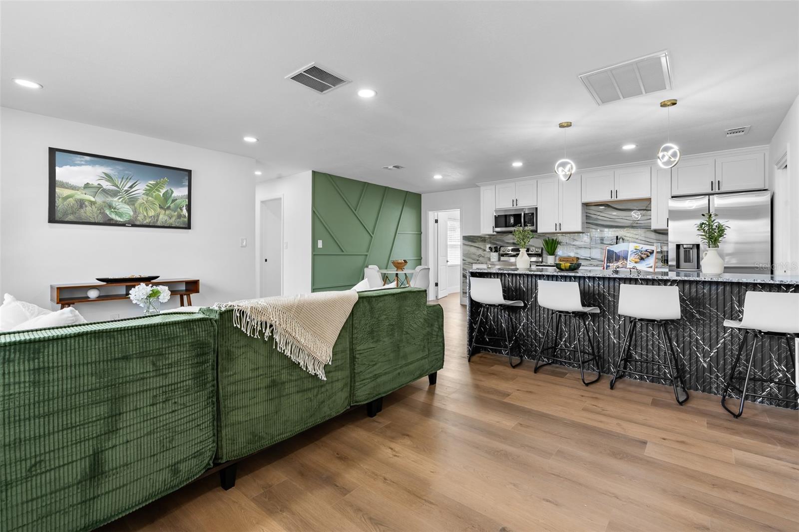 Welcome to 1480 Fairfield Dr., Clearwater, FL — a beautifully updated 3-bedroom, 2-bathroom home offering approximately 1,265 heated square feet and a spacious two-car garage. This single-story block home has been thoughtfully renovated from floor to ceiling. As you step inside, you’ll immediately notice the open-concept layout that creates a seamless flow between the living, dining, and kitchen areas, maximizing functionality and natural light. The fully updated kitchen features granite countertops, white soft-close cabinetry, and brand-new stainless steel appliances including a wine fridge. Both bathrooms have been tastefully remodeled with modern finishes, giving the home a clean and contemporary feel throughout. Major improvements include a newer roof (2020), new A/C system (2025), and new water heater (2025), providing added peace of mind for the next owner. Situated on an approximately 8,185 sq ft lot in unincorporated Clearwater, this property offers a fully fenced outdoor space to enjoy while remaining centrally located near shopping, dining, airports, and Clearwater’s award-winning beaches. Located in a non-evacuation zone. Move-in ready and thoughtfully upgraded — schedule your private showing today.