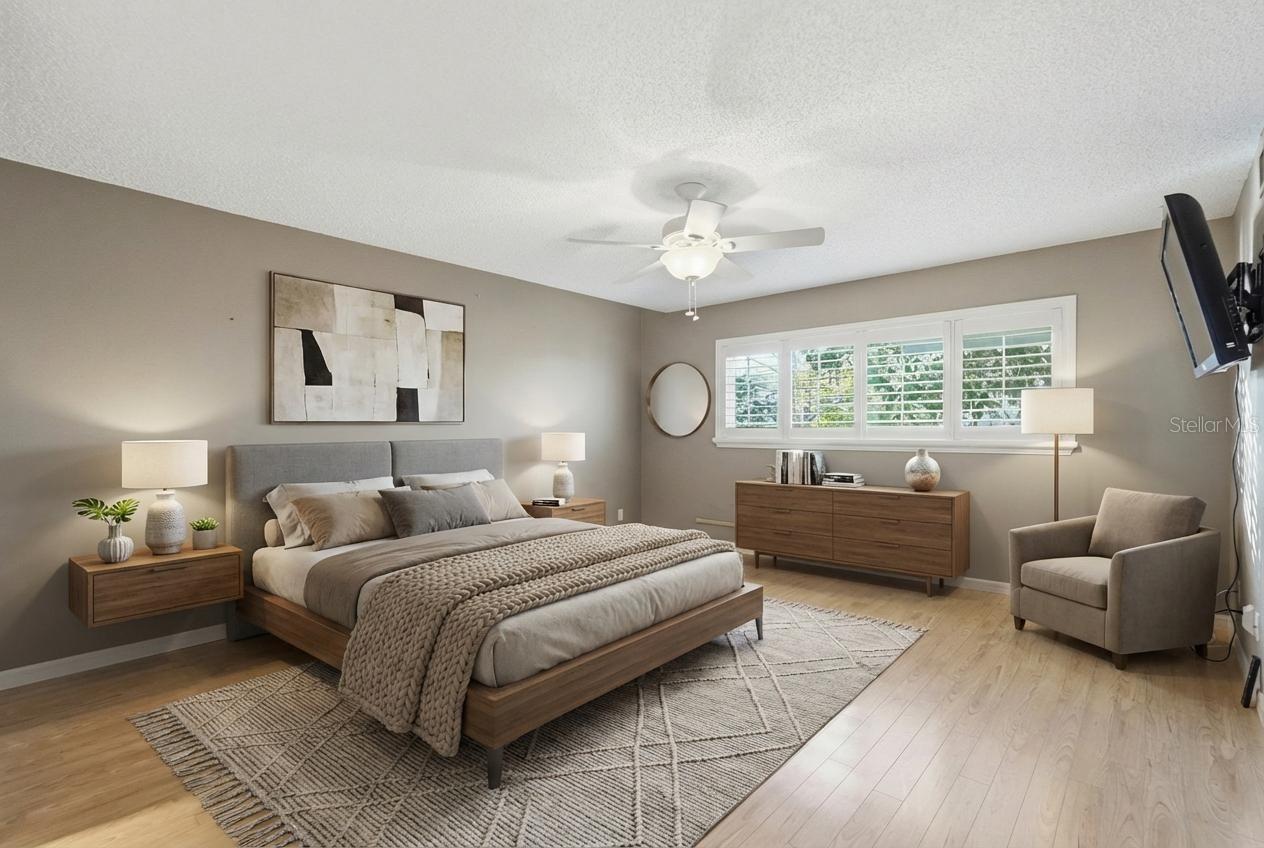One or more photo(s) has been virtually staged. Get ready to fall in love with space, light, and effortless Florida living in this rare fully updated, move-in-ready 2-bedroom, 2.5-bath residence offering 1,675 square feet of open, airy living space that feels immediately comfortable and inviting, featuring wood flooring throughout, tile in the baths for durability, abundant natural light, new windows, and plantation shutters that create a bright, modern, and welcoming atmosphere. The fully updated kitchen is a chef’s dream, complete with stainless steel appliances, a chic backsplash and countertops, a large center island, and cabinets galore for all your storage needs—perfect for hosting family dinners or casual gatherings with friends. Two massive bedrooms feature personal en suites and walk-in closets, plus an additional half bath for guests, while a dedicated laundry room includes a washer, dryer, and cabinetry that complements the kitchen’s finish. A new $15,000 A/C system ensures worry-free comfort year-round, and the large covered lanai overlooks mature landscaping, serene garden and tree views—ideal for morning coffee, evening wine, or enjoying the Florida breeze. This little gem is the perfect second home or a place to hang your hat as a forever home in one of Florida’s #1 55+ active adult communities, where monthly fees include a 24-hour guard, recreational facilities, water, sewer, trash, a basic cable package, and grounds maintenance. This ground-floor unit also offers assigned parking just steps from the front door, ample guest and street parking, and extra storage nearby, with convenient access to trash and mail. Residents enjoy wide-open green spaces, lush tropical palms, scenic walking paths along the lake and mature trees, nearly 200 clubs, two golf courses with a putting green, a heated pool, spa and sauna, fitness center, tennis and pickleball courts, two fishing piers, an outdoor exercise gym, dog park, Good Karma Café, and woodshop, plus convenient transportation and just minutes from excellent dining, shopping, recreation, and the white sugar-sand Gulf beaches, including Clearwater Beach, recently voted #2 in the USA. With its spacious open layout, updated finishes, and unmatched lifestyle, this home is perfect for entertaining and everyday comfort, making it a rare opportunity—schedule your private showing today.