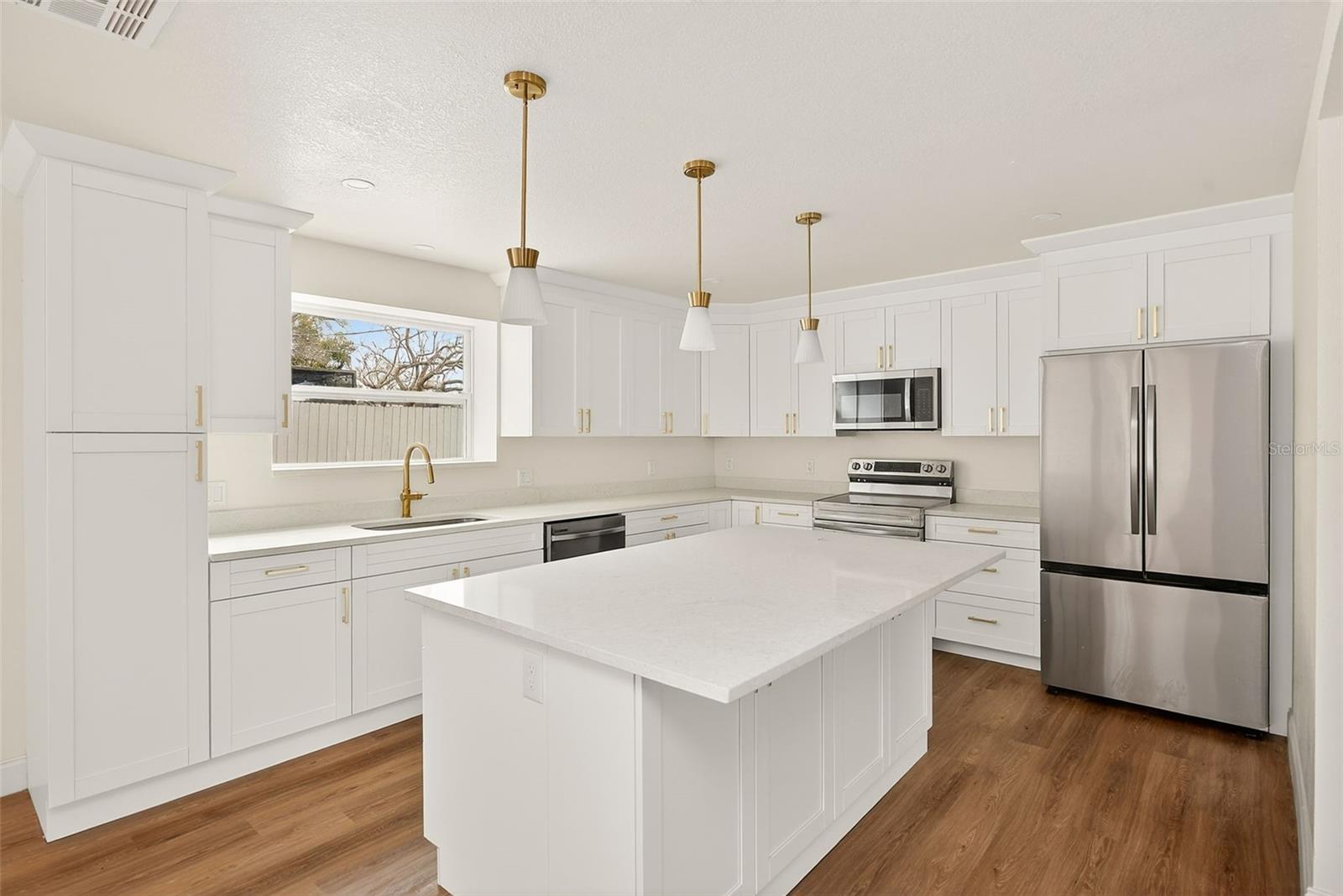 Discover modern living at its finest in this fully renovated 4-bedroom, 3.5-bathroom home, perfectly positioned on a quiet corner lot with no front-yard neighbors—offering rare privacy and peaceful surroundings. Every inch of this property has been thoughtfully updated, giving you the feel of a brand-new home with timeless style. Step inside to find all-new LVP flooring, fresh interior paint, and an inviting open-concept layout designed for effortless living and entertaining. The chef-ready kitchen shines with new cabinetry, quartz countertops, and a spacious island that flows seamlessly into the dining and living areas. All bathrooms have been beautifully modernized with high-quality finishes, creating spa-like retreats throughout the home. The renovation continues behind the walls with all-new plumbing, electrical, and HVAC, ensuring long-term comfort and efficiency. Outside, the upgrades continue with a new roof, new windows, new doors, new siding, and crisp exterior paint—delivering exceptional curb appeal and peace of mind for years to come. Move-in ready and meticulously updated, this home blends contemporary style with everyday functionality in a serene, desirable location.
