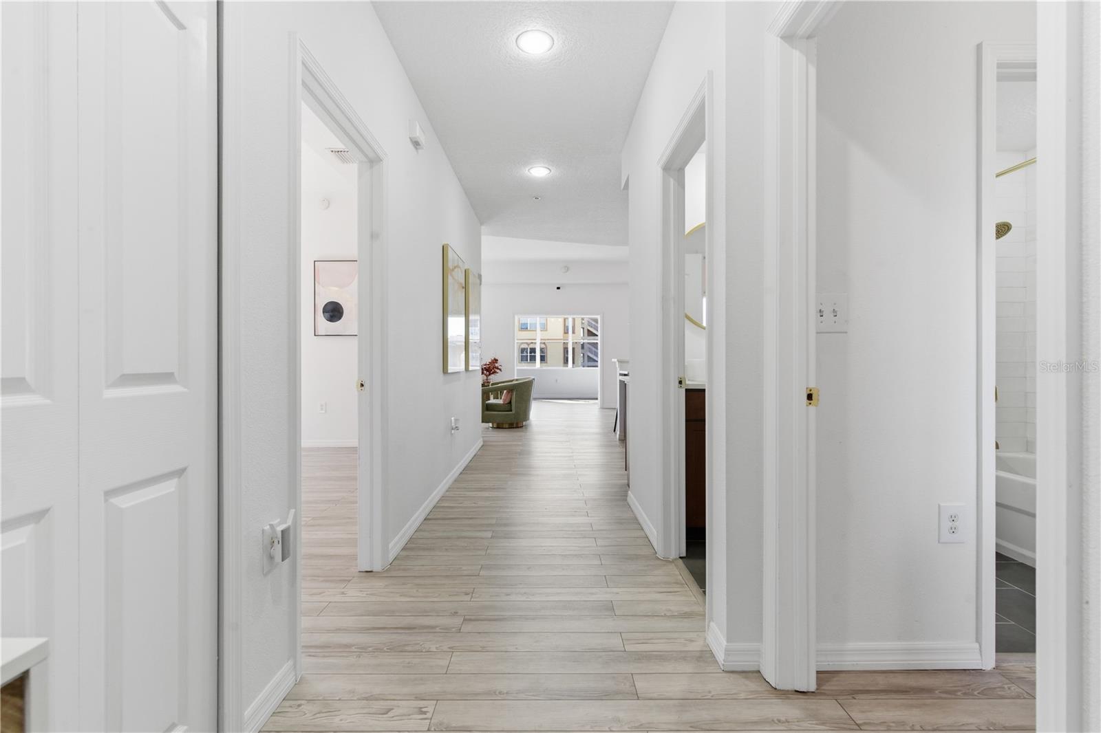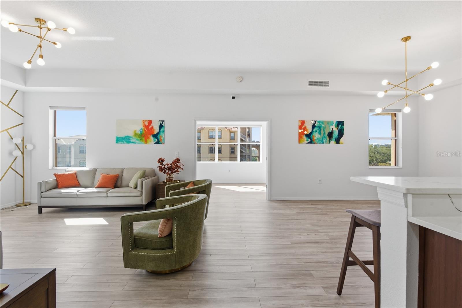 Tucked behind the gates of the Mediterranean inspired Wells Court Condominium community, this beautifully updated residence offers the perfect blend of comfort, convenience, and coastal lifestyle just moments from Downtown Clearwater. Ideally positioned near the Intracoastal Waterway and the Pinellas Trail, the location places you within easy reach of Cleveland Street’s boutiques, restaurants, and cafés, live entertainment at the Sound and Capitol Theatre, and the sugar sand beaches of Clearwater Beach just a short drive away. Coachman Park, recently renovated and known for its waterfront events and concerts, is also just a short walk from your door. Inside, this spacious two bedroom, two bathroom condo with a bonus office offers a bright and open layout enhanced by soaring 10 foot ceilings and updated luxury vinyl flooring throughout. The kitchen features hardwood cabinetry, quartz countertops, and brand new appliances, opening naturally to the main living and dining areas for easy everyday living and entertaining. Large windows fill the space with natural light while the bonus office overlooks the community pool, creating a perfect work from home setup. The primary suite offers a comfortable retreat with a walk-in closet and a beautifully finished bathroom featuring marble accents, dual sinks with quartz countertops, a garden tub, and a custom walk-in shower. The second bedroom and bathroom are thoughtfully positioned for privacy and feature updated finishes and quartz surfaces as well. One of the standout features of this condo is the rare two car tandem garage and an additional partially covered parking space in the driveway. Wells Court offers a resort style setting with a heated pool, clubhouse, fitness center, and beautifully maintained grounds. Residents also enjoy direct access to the Pinellas Trail right next to the community, making it easy to walk or bike to downtown shops, restaurants, and waterfront parks. The HOA includes cable, high speed internet, and exterior maintenance for easy, low maintenance living. Elevator access makes navigating the building simple and convenient. Located just minutes from Belleair, Dunedin, and Safety Harbor, this home offers quick access to waterfront dining, local markets, festivals, and some of the best beaches on the Gulf Coast. With two international airports within comfortable driving distance, travel is also easily accessible. This is a rare opportunity to enjoy stylish condo living in a gated community in one of Clearwater’s most connected and desirable locations.