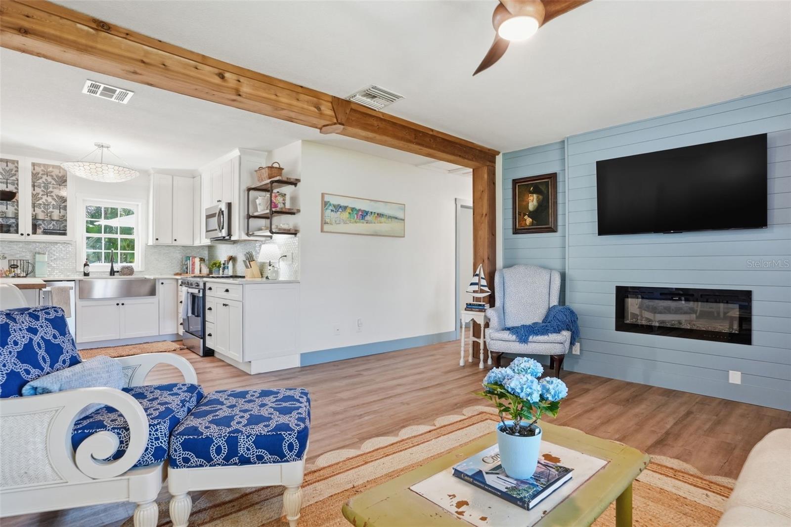 Live the ultimate beach lifestyle just three blocks from the white sands of Clearwater Beach, nestled in the delightful Old Florida atmosphere of North Beach. Charming and fabulously updated pool home boasting 1,869 sq.ft. with 3 bedrooms and 3 full baths, plus a guest cottage with kitchenette and 2-car garage on a premium home site! Whether you prefer biking along the shore, sunset walks on the beach, hopping on the trolley, or enjoying nearby dining and activities, this location offers it all or simply stay home and relax in your magnificent private oasis. Set on an oversized lot rarely found on North Clearwater Beach (a full lot and a half), this property features a recently transformed backyard designed for entertaining and relaxation. Enjoy expansive travertine-covered pool decking, an extended outdoor living area, a stone-built kitchen with a Coyote gas grill, fire pit, Zen-style outdoor shower, and thoughtfully designed landscape lighting that highlights the lush, private setting for your serene pool and hot tub… fully fenced for ultimate privacy! Adding incredible flexibility is a detached guest cottage/cabana complete with a kitchenette and full bathroom with walk-in shower—perfect for guests, a home office, fitness or yoga studio, or multigenerational living. The main residence has 3 bedrooms and 2 handsomely updated baths. The home showcases a modern coastal vibe with its brilliant updates and finishes. The primary suite features a lovely tray ceiling with crown molding accents, a sizable walk-in closet, a spa-like ensuite and enchanting French doors opening directly to the pool and backyard, creating seamless indoor-outdoor living. Light wood-look ceramic tile runs throughout the home. The kitchen shines with quartz countertops, shaker cabinetry with crown molding, designer glass tile backsplash and newer stainless-steel appliances. A dedicated dining area and the main living area are open to the kitchen. The gathering area showcases the striking architecture and features a mood setting fireplace. Additional features in this ADA compliant home include a gas tankless water heater, saltwater pool with Dolphin Nautilus cleaner, a durable sea-green metal roof, and a generator dedicated to the guest cottage for peace of mind during outages and a sizable laundry room with extended counter space and cabinetry. Completing the property is a detached two-car garage with an additional rear door—ideal for storing a boat, golf cart, and all your beach toys. This is a rare find offering space, privacy, and versatility in one of Clearwater Beach’s most desirable communities. Opportunities like this don’t come often… better hurry!