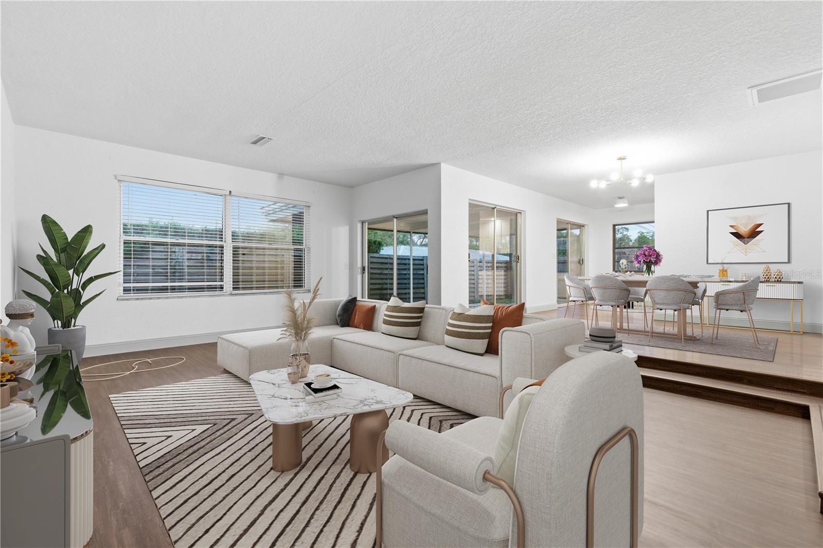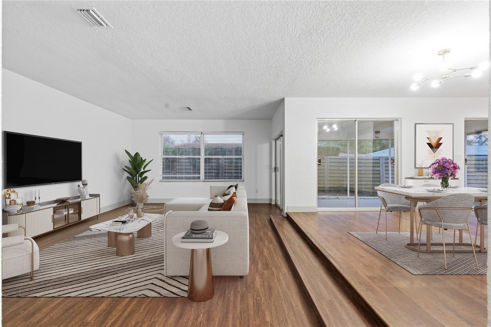 One or more photo(s) has been virtually staged. Welcome to Oak Lake Estates, a well established community in Clearwater where pride of ownership is evident from the moment you arrive. With no HOA fees, no CDD fees, and located in a non flood zone, this property offers both flexibility and peace of mind. Set on nearly a quarter acre of land, the home welcomes you with a circular driveway, mature landscaping, and a classic Mediterranean barrel tile roof that adds character and curb appeal. Inside, more than 2,200 square feet of interior living space unfolds across a thoughtful layout with LVP flooring throughout. The home offers both a living room and a separate family room, creating multiple spaces to relax, entertain, or gather with family and friends. The kitchen is well appointed with granite countertops, stainless steel appliances, and ample cabinetry. The owner’s suite offers a private retreat with a massive walk-in closet and an ensuite bathroom featuring dual sinks, a large garden tub, and a separate glass enclosed shower. Two additional bedrooms and a second full bathroom provide comfortable accommodations for family or guests. Sliding glass doors lead to a screened in lanai, creating the perfect indoor outdoor flow and a peaceful space to enjoy Florida evenings while overlooking the backyard. Perfectly positioned in the heart of Clearwater, this centrally located home offers the ideal balance of neighborhood charm and everyday convenience. Situated just minutes from Downtown Clearwater, you will enjoy quick access to local dining, shopping, entertainment, and the vibrant waterfront district. Clearwater’s world famous Gulf beaches are only about 5.5 miles away, making sunset beach walks and weekend coastal escapes effortless. Outdoor lovers will appreciate the nearby parks, nature areas, and trails for walking and biking. The home also provides easy access to major roadways including US 19 and the Courtney Campbell Causeway, allowing for convenient commuting to Tampa, St. Petersburg, and surrounding Pinellas County destinations. Everyday essentials such as grocery stores, restaurants, shopping centers, and medical facilities are all within close reach, with Morton Plant Hospital just a short drive away. This home presents a wonderful opportunity to enjoy the best of the Tampa Bay lifestyle.