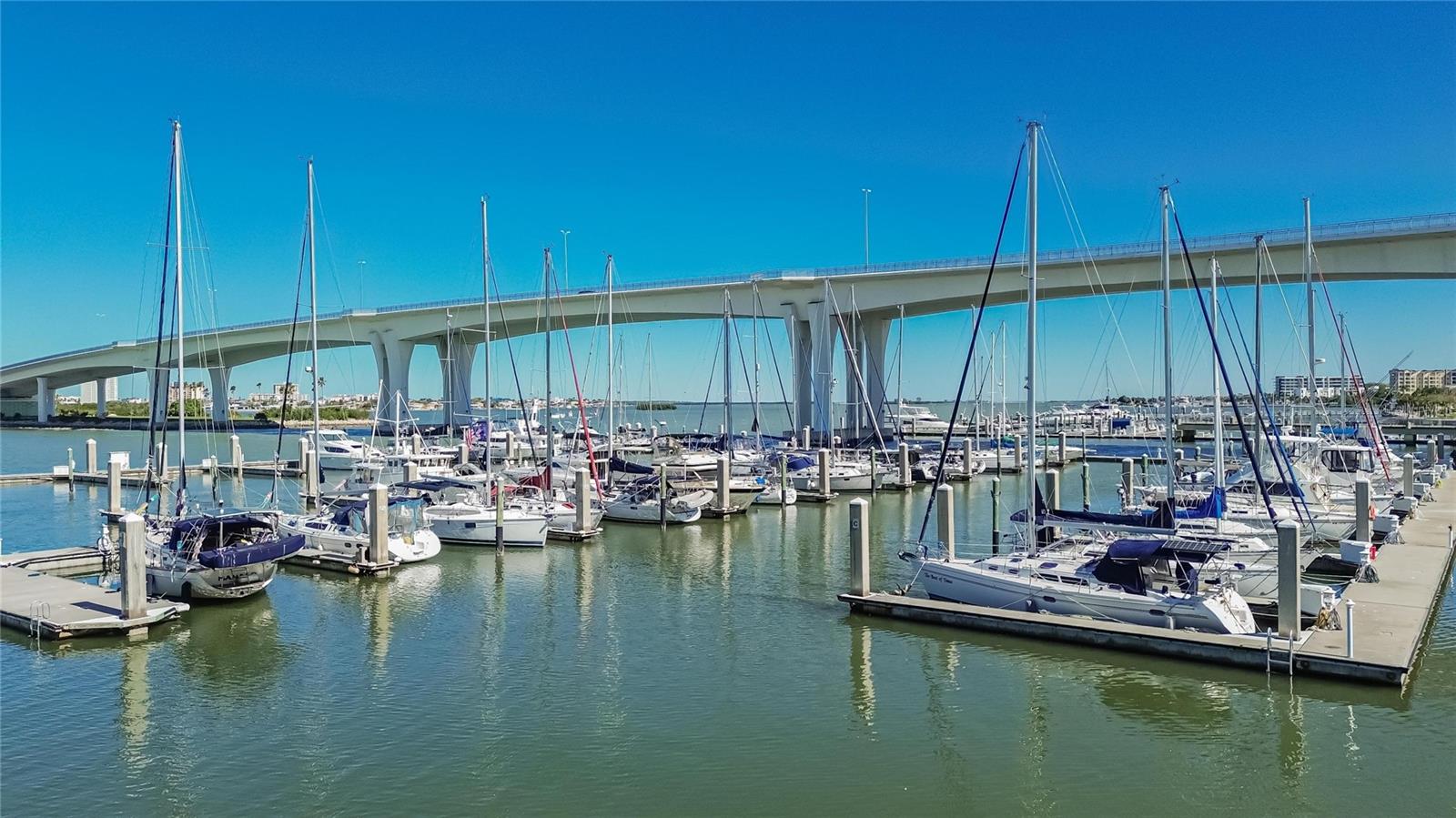 Now available in Clearwater! Welcome to the pinnacle of waterfront living at the iconic 100 Pierce building, ideally located near Downtown and just off the bridge to Clearwater Beach. This 2-bedroom, 2-bath residence offers breathtaking panoramic views of the Intracoastal Waterway and Gulf of Mexico, with wall-to-ceiling windows that fill the space with natural light and create a true "on-the-water" feel. Inside, an open-concept layout seamlessly connects the living and dining areas to a well-appointed kitchen featuring stainless steel appliances, stone countertops, custom cabinetry, tile backsplash, and a breakfast bar—ideal for everyday living or entertaining. The split-bedroom floor plan provides privacy, with each bedroom offering its own ensuite bath and access to a private balcony where you can enjoy serene water views, vibrant sunsets, and passing dolphins. Commercial Speed Queen laundry machines are available directly across the hallway from the condo unit. Step outside to enjoy direct access to the waterfront promenade, perfect for morning strolls or evening relaxation, with the pool, spa, and grilling area just moments away. Residents of 100 Pierce enjoy resort-style amenities including a heated waterfront pool, hot tub, fitness and recreation spaces, secure under-building parking, private storage, fishing pier, and more, with condo fees covering cable, internet, water, sewer, trash, and exterior maintenance. ALL ASSESSMENTS PAID! Ideally situated next to Clearwater Marina and just steps from The Sound at Coachman Park, you’ll enjoy a vibrant mix of waterfront recreation, concerts, dining, and entertainment, all just minutes from Clearwater Beach, the ferry, trolley, and major travel routes.