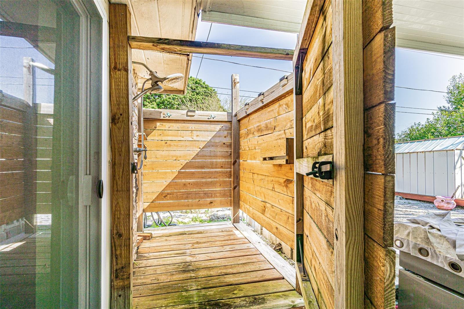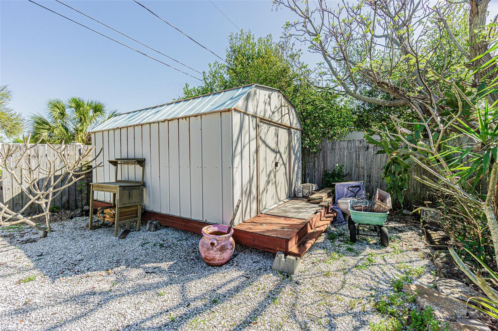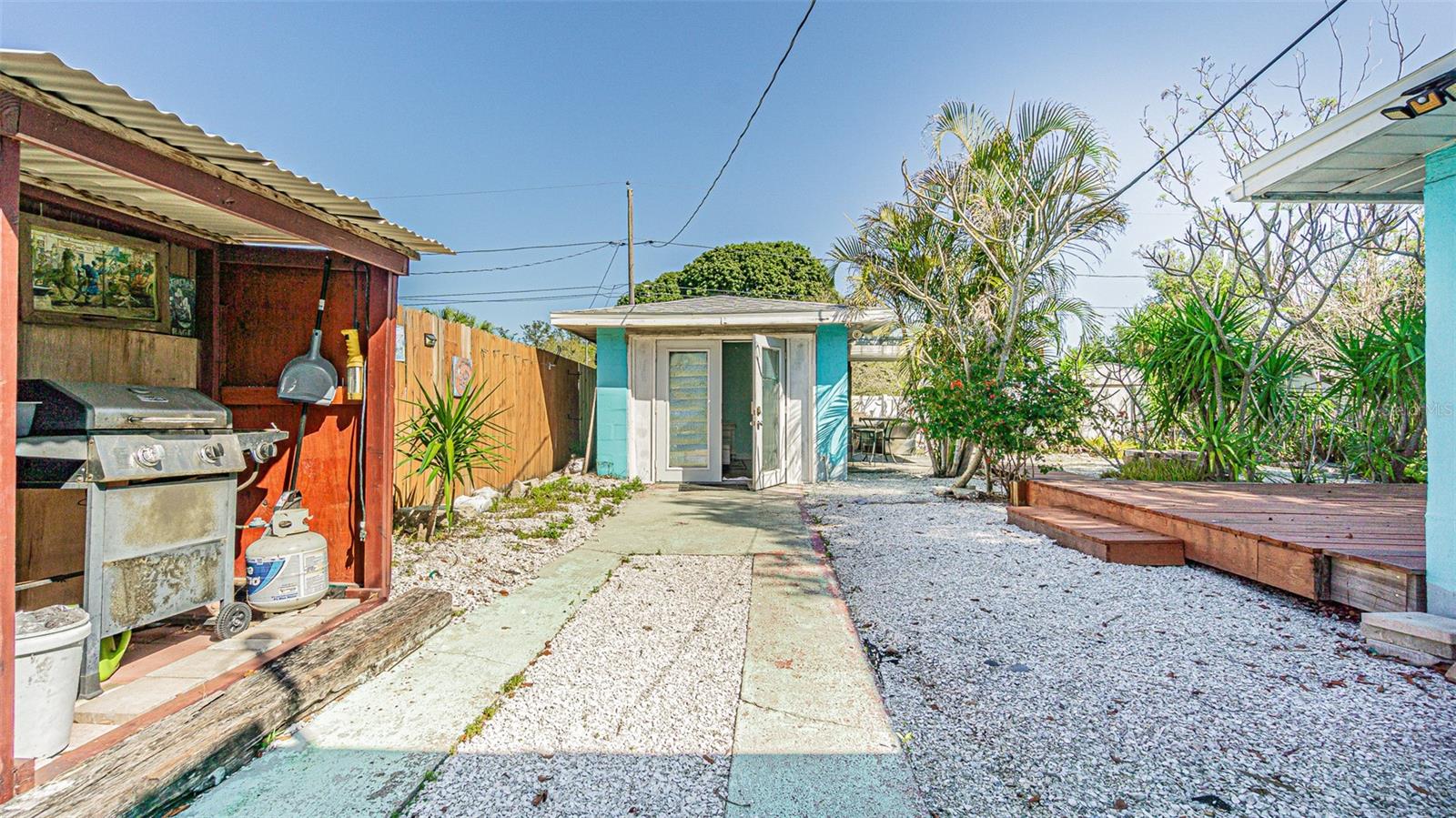 Adorable 2 Bedroom 1 bath main home with a thoughtfully converted garage that now serves as a charming rental unit with its own full bath & private entrance. The property features a large fenced backyard complete with an outdoor shower, a cozy fire pit and practical sheds for all your yard tools. Inside, you will find tile throughout and ceiling fans in every room to stay comfortable during Florida's hot days and nights. An under-sink water osmosis system provides high-quality water for the home. The bathroom gleams with slate tile and the open kitchen design includes a stylish barn-door pantry for extra storage. The dining room offers flexible potential and could be converted into an additional bedroom or Florida room to suit your needs. No flood insurance is required, providing peace of mind. A wood deck off the back door is ideal for BBQs and relaxing evenings. This home sits in a nice quiet neighborhood near the beaches & downtown Clearwater. Its a short drive to local amenities and ready for you to call it Home. Schedule your Showing TODAY!