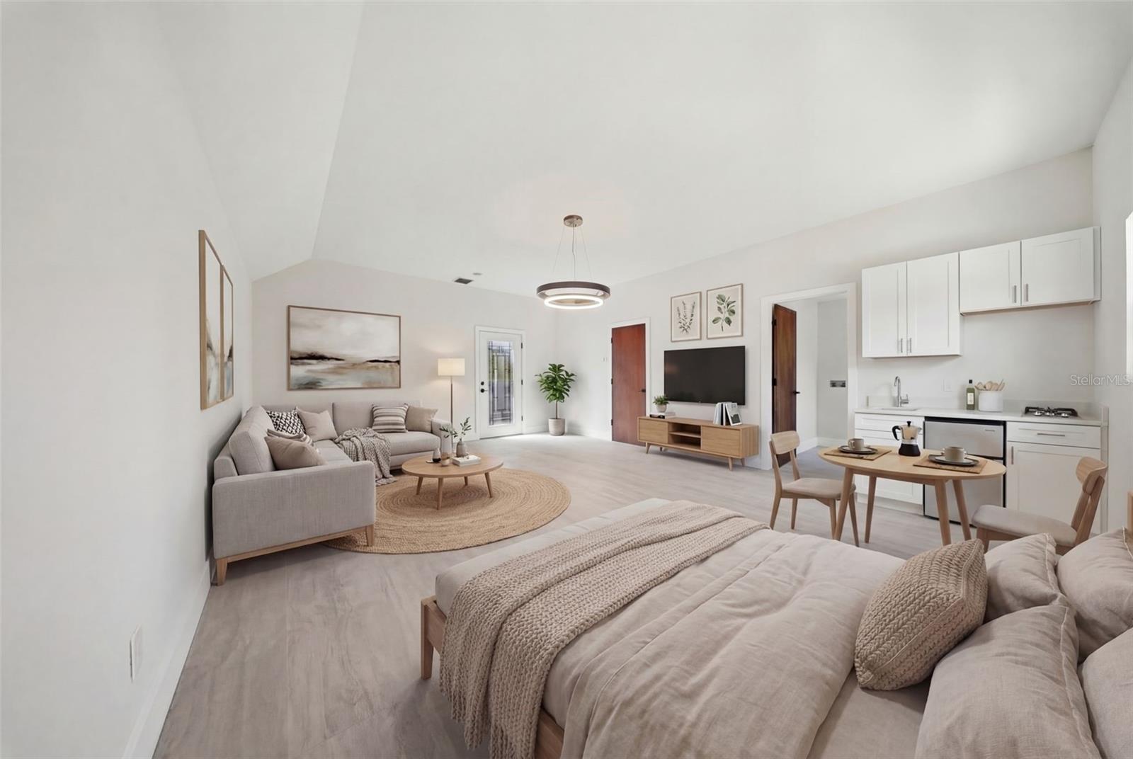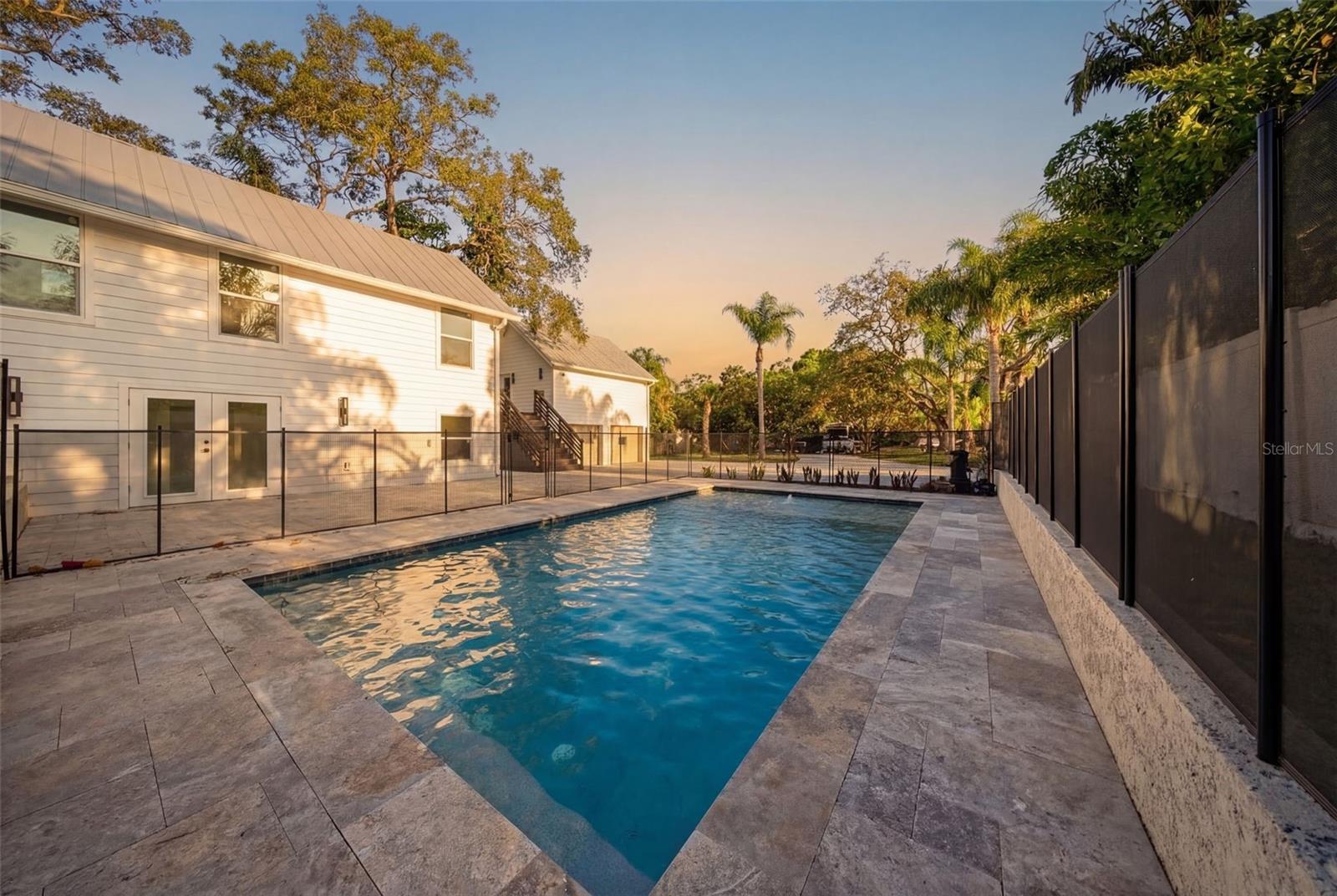 One or more photo(s) has been virtually staged. This is your chance to own a one-of-a-kind legacy property crafted for coastal living in one of the most sought-after locations in Pinellas County. This double lot, surrounded by lush tropical landscaping, sits just blocks from St. Joseph’s Sound, where sunsets and salty air become part of your daily lifestyle. A renowned local builder preserved the bones and “Old Florida” charm of the original structures while completely renovating the property from the studs out to deliver modern comfort and convenience. To complete the experience, a brand-new pool, framed by gorgeous pavers, makes outdoor living and entertaining an absolute dream. Perhaps the most valuable aspect of this property is the grandfathered multi-family designation, which means it can be used as a single-family home or as a two-unit rental. The new owner can live in one unit and rent out the other, offering exceptional flexibility and income potential. The large double lot also supports future expansion, provides ample space for RV or boat parking, and creates an inviting backdrop for gatherings and celebrations. The location is extraordinary: despite its proximity to the ocean, the property sits high enough in elevation to remain outside the flood zone, eliminating any flood insurance requirement. The Pinellas Trail is accessible at the end of the block and, within minutes, connects you to downtown Dunedin, where restaurants, bars, renowned breweries, shopping, live music, award-winning beaches, and Major League Baseball spring training await. There are many creative ways to customize this property to suit your vision. The staged renderings highlight multiple possibilities, from a refined single-family haven to a multi-family, income-producing retreat.High-end finishes and thoughtful, flexible design are apparent in every space and feature throughout this home. Make this property yours—opportunities like this are rare!