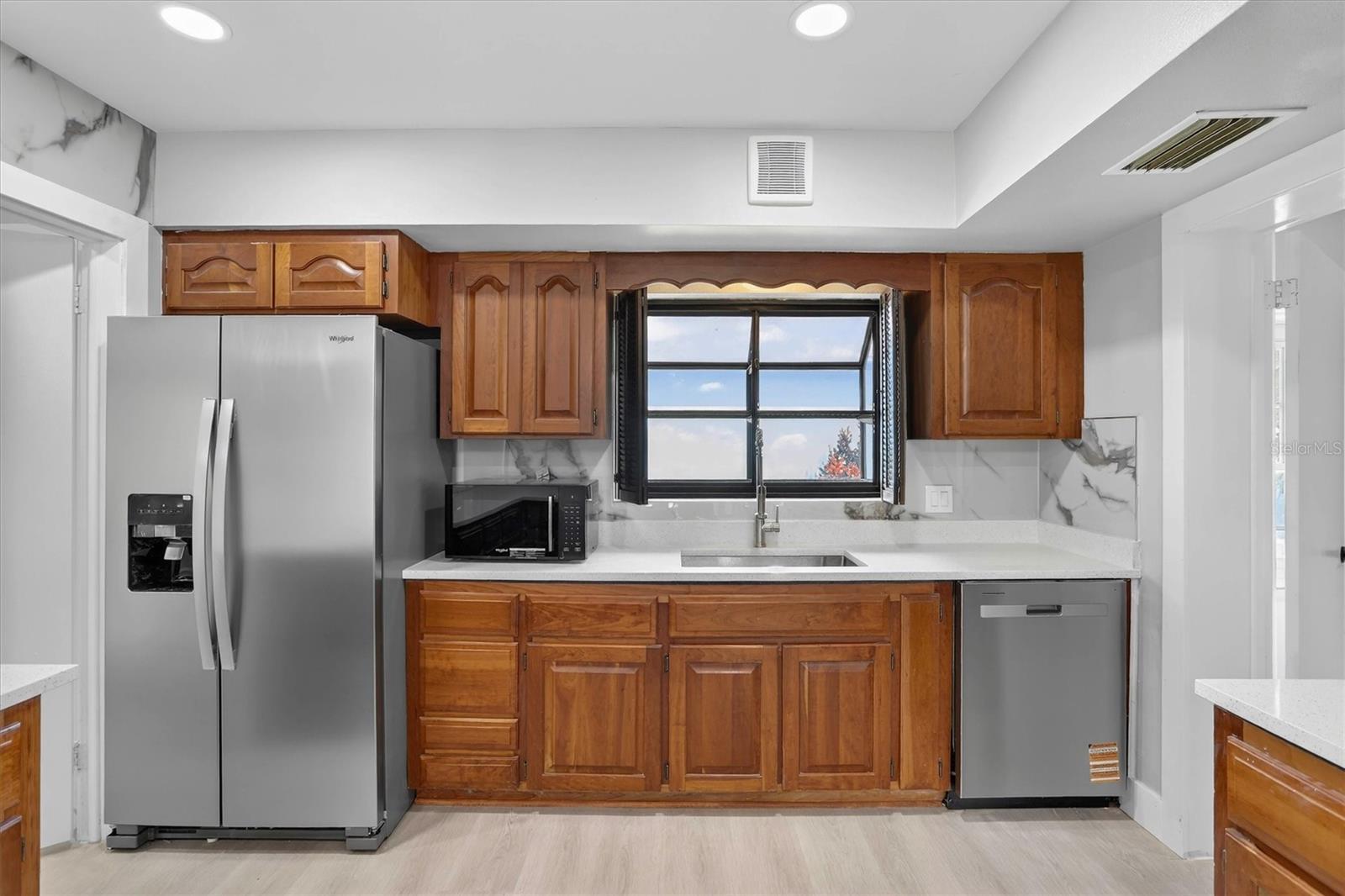 Beautifully remodeled 3 bedroom, 2 bath lakefront home in Clearwater! This move-in ready home features all new flooring throughout, an updated kitchen with new countertops and stainless steel appliances, and renovated bathrooms with modern finishes. Spacious backyard overlooks a peaceful pond with serene water views. 2-car garage. Located in a quiet, established neighborhood just minutes from Clearwater Beach, shopping, dining, and Gulf-to-Bay Blvd for easy access to everything the area has