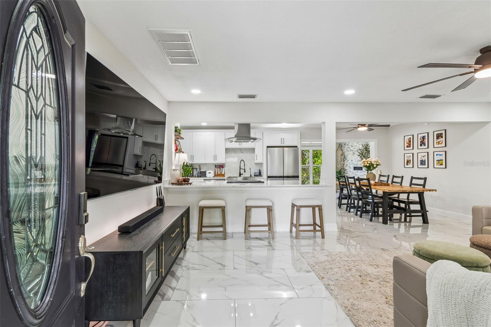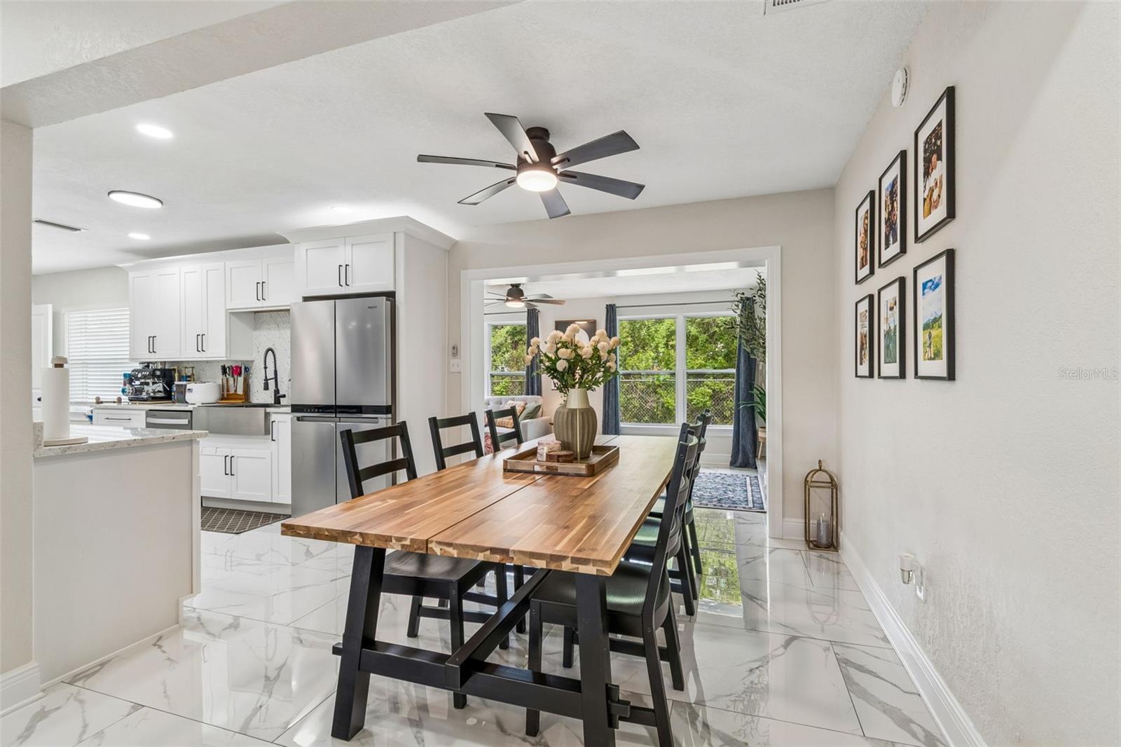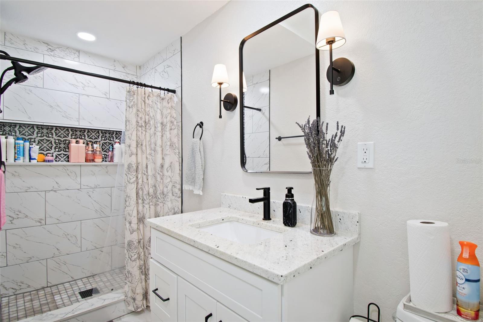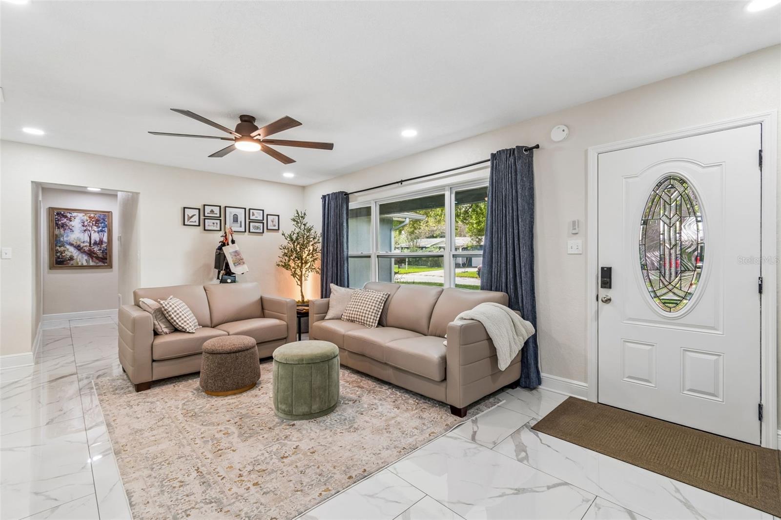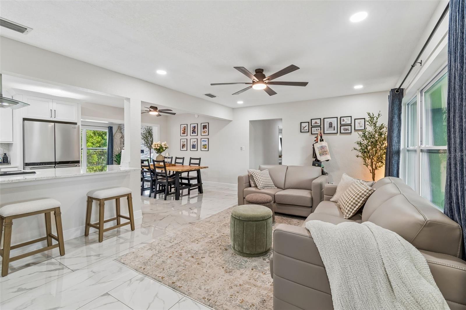 The charming front porch welcomes you into this beautifully updated home featuring an open floor plan with 3 bedrooms, 3 full bathrooms, and a versatile bonus room. The spacious living area flows seamlessly into the dining room and fully remodeled kitchen, creating an ideal space for both everyday living and entertaining. The kitchen has been thoughtfully upgraded with new appliances, granite countertops, and an oversized stainless steel sink. A sleek flat-top stove paired with a modern canopy range hood adds a contemporary touch. Natural light fills the home, enhancing its bright and airy feel. Tile flooring runs throughout the main living areas, while the bedrooms feature stunning new wood-look tile flooring. All three bathrooms have been tastefully renovated, complete with stylish finishes and shower niches for added convenience. At the rear of the home, the bonus room showcases a striking stone accent wall and fireplace, making it perfect as a family room, home office, or flex space. Step outside to a fully fenced backyard featuring a Rubbermaid storage shed (2022), ideal for lawn equipment and extra storage. Six-inch gutters with guards (installed May 2023) provide lasting protection and low-maintenance peace of mind. The spacious garage includes a 25-amp EV charger, adding everyday convenience for electric vehicle owners. Additional highlights include a roof replacement and new HVAC system (May 2022), along with a whole-home water softener and reverse osmosis system for added comfort and efficiency.