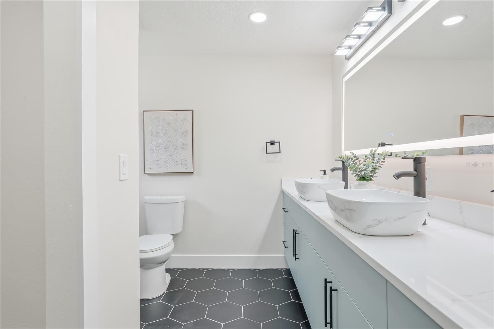 Under contract-accepting backup offers. Welcome to this beautifully renovated 4-bedroom, 3-bathroom home offering modern design, thoughtful upgrades, and exceptional indoor-outdoor living, complete with a 2-car side-load garage and extended driveway providing ample parking. From the moment you arrive, you’ll notice the clean curb appeal highlighted by white brick exterior accents, fresh landscaping, and a fully fenced backyard with brand-new white vinyl fencing for added privacy. Step inside to a bright and airy layout featuring brand-new luxury vinyl flooring throughout and an abundance of natural light. The main living room makes a statement with a sleek electric fireplace framed by custom wood slat detailing and elegant marble-inspired accents, creating a warm yet modern focal point. The fully updated kitchen is designed for both everyday living and entertaining, featuring brand-new stainless steel appliances, a spacious island, and stylish finishes throughout. Overlooking the backyard oasis, the kitchen sink offers a direct view of the pool, while expansive pocket sliding glass doors open completely to create a seamless indoor-outdoor flow—perfect for entertaining. The family room continues the elevated design with a second custom wood and marble-inspired accent wall, tying the home’s modern aesthetic together. The split floor plan provides both privacy and functionality. The primary suite is tucked away on one side of the home, featuring a beautifully updated en-suite bathroom, a walk-in closet, and a statement LED mirror. On the opposite side, you’ll find three additional bedrooms, including a Jack-and-Jill bathroom connecting two rooms, plus an additional full guest bathroom conveniently located for guests. A spacious laundry room offers added convenience with a utility sink, cabinetry, and included washer and dryer, with direct access to the garage. Step outside to your private backyard retreat featuring a sparkling, fully screened-in pool with brand-new resurfacing and LED lighting, along with a covered patio area ideal for relaxing or entertaining year-round. The surrounding yard is lined with mature palms and lush greenery, enhancing both privacy and the overall Florida lifestyle experience. This home has been extensively upgraded for peace of mind, including a brand new roof and water heater, 2025 HVAC system, new hurricane-impact windows, new insulation, rain gutters, updated light fixtures and fans, and fresh interior and exterior paint. Ideally located in Clearwater, this home offers convenient access to Downtown Safety Harbor about 10–15 minutes away, known for its local restaurants, shops, and community events. For beach lovers, Honeymoon Island State Park is approximately 20 minutes away, providing beautiful Gulf beaches and nature trails. Commuters will love the easy access to Tampa International Airport, located about 25–30 minutes away. Just minutes away you’ll find shopping, dining, and entertainment options. This move-in ready and designed with both style and function!