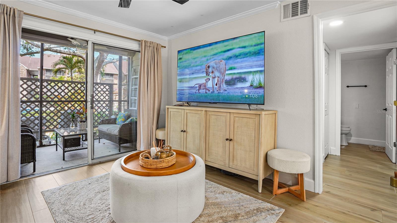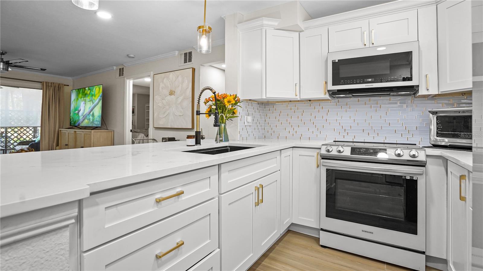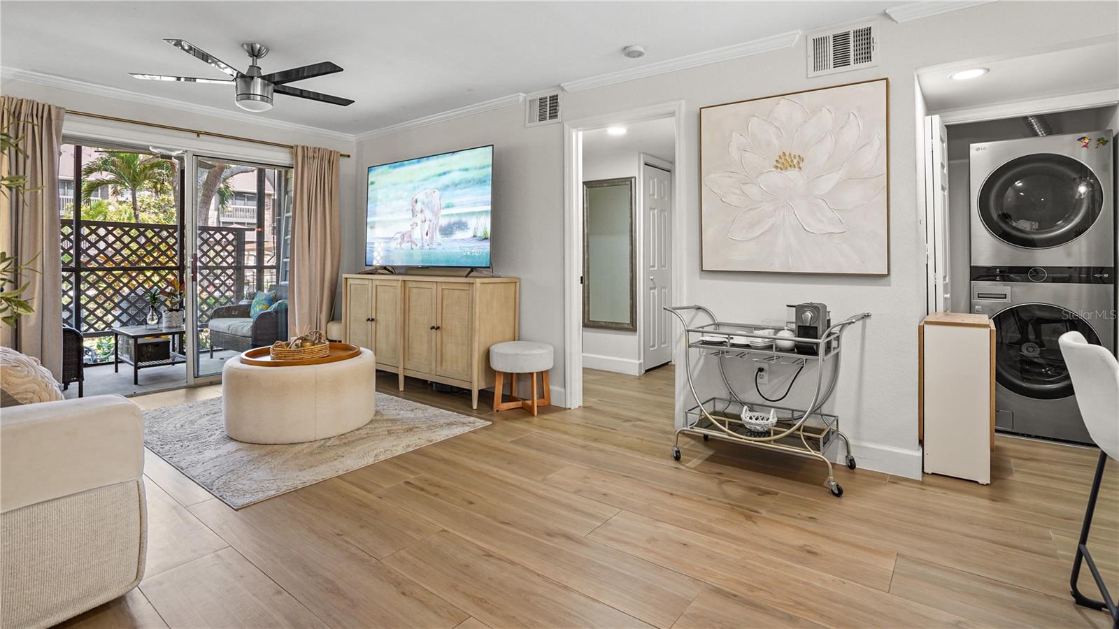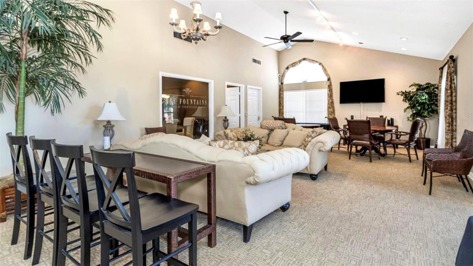 Experience elevated Florida living in this completely reimagined, first-floor 2-bedroom, 2-bath, easily functioning as two private primary suites in the gated community of The Fountains at Countryside. This is not a simple update but rather a full-scale renovation where virtually every surface and detail has been replaced, delivering a truly like-new living experience. The kitchen has been beautifully transformed into a standout feature of the home, offering upgraded appliances, sleek countertops, and a functional layout enhanced by a window overlooking the tranquil courtyard fountain, bringing in natural light and a peaceful view rarely found. It’s a space that blends everyday practicality with clean, modern design. The expansive living area opens through sliding glass doors to a screened lanai with serene views of the resort-style pool, creating a seamless indoor-outdoor living experience. Additional highlights include a private indoor laundry closet with stackable washer and dryer, a new A/C system installed in 2025, a semi private fountain courtyard, and a covered carport. Throughout the home, you’ll find a cohesive, high-quality finish level that elevates every room, creating a polished yet comfortable environment that immediately stands apart from typical condo offerings. Residents of The Fountains at Countryside enjoy a maintenance-free lifestyle with an impressive array of amenities, including a heated pool and spa, elegant clubhouse, state-of-the-art fitness center and yoga studio, dog park, butterfly garden, grilling stations, and beautifully landscaped walking paths. Monthly HOA fees cover security, exterior maintenance, water, sewer, trash, cable TV, pest control, and more, delivering both value and convenience. Perfectly positioned near top-rated beaches, shopping, dining, and major thoroughfares, this home offers the ideal blend of tranquility and accessibility. This is more than a condo-it’s a turnkey, resort-style retreat where every day feels like a vacation.