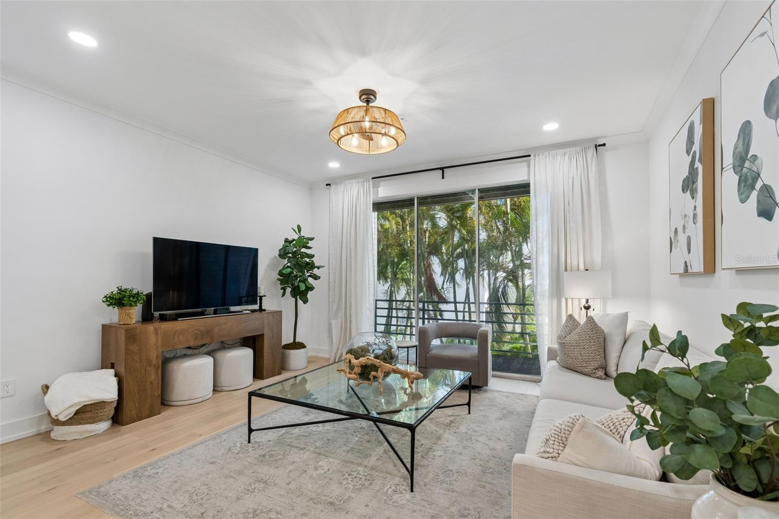 Balcony, Lighting, Rain Gutters, Sidewalk, Sliding Doors