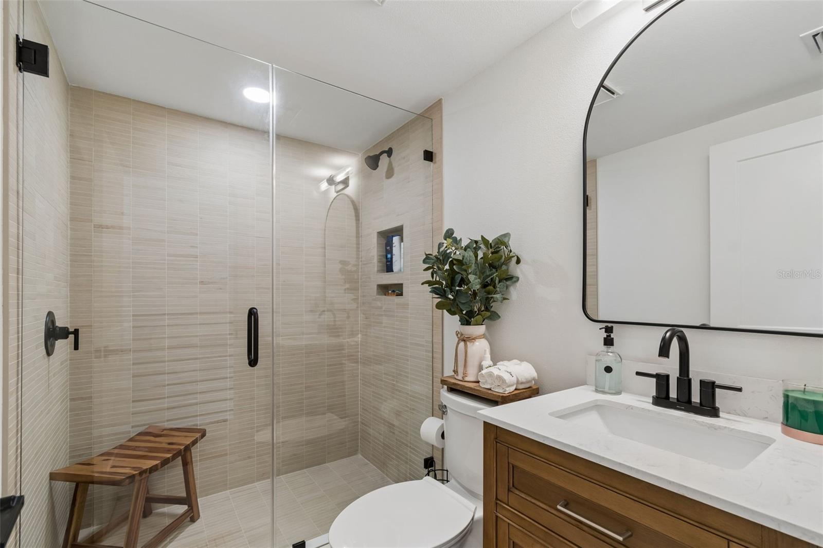 Welcome to one of the most extensively upgraded residences on Island Way, where modern coastal design meets true turnkey living. Offering 1,700 sq ft, 3 bedrooms, and 3 full bathrooms, this fully renovated home stands apart with high-end finishes, major system upgrades, and thoughtful design throughout. The open-concept living area is filled with natural light and features engineered wood flooring, designer lighting, cove crown molding, and custom trim work, creating a clean, elevated aesthetic. A new custom staircase leads to a unique loft space, ideal for a home office, den, or guest retreat. The chef’s kitchen is a true centerpiece, showcasing modern wood cabinetry with full-extension dovetail drawers, premium Bosch stainless steel appliances with Induction Cooking, a pot filler, decorative tile backsplash, and Quartz countertops. Designed for both function and style, it flows seamlessly into the dining and living areas. All bathrooms have been completely updated with modern vanities, designer finishes, and floor-to-ceiling tile, creating a spa-like experience. Major upgrades provide peace of mind, including NEW PEX plumbing, a 2024 roof, 2018 HVAC system, 2020 water heater, and a 2025 building tenting with termite bond in place. Outdoor living is equally impressive with three levels of decks off the main living area, perfect for enjoying the coastal lifestyle. The oversized 3-car garage features epoxy flooring, ample storage, and EV charging capability—a rare find in this location. Residents enjoy resort-style amenities including a pool, grilling stations, and tiki hut dining, walk approx. 700' to Publix, restaurants, salons, and more. This is not just another unit—this is a fully upgraded, move-in ready opportunity in one of Clearwater Beach’s most desirable locations. ****See Feature Sheet for all upgrades****