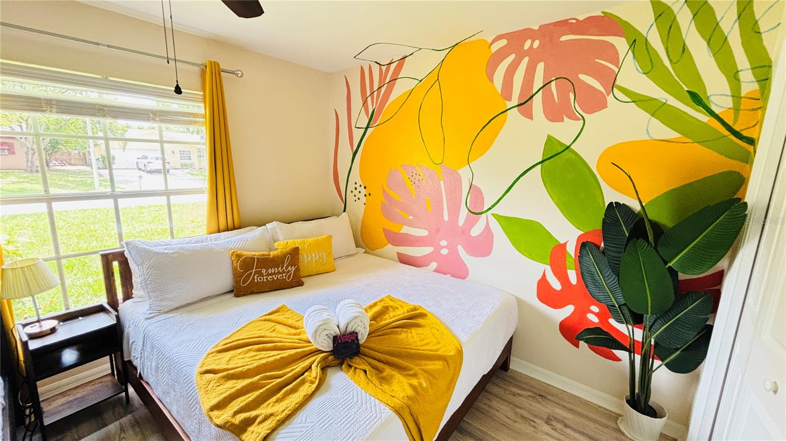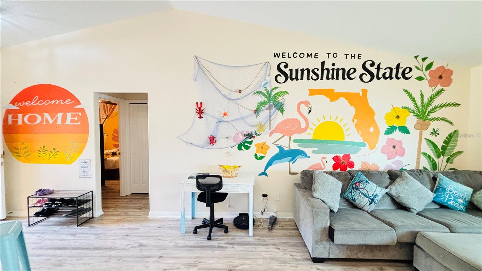Step into this fully furnished Florida oasis, currently operating as a successful vacation rental and ready for its next owner. This well-kept 3-bedroom, 2-bath home sits on a corner lot with no HOA and no flood insurance required, offering both freedom and peace of mind. Inside, you’ll find an open layout with vaulted ceilings, a wood-burning fireplace, and new laminate flooring installed in 2023. The kitchen includes a new Whirlpool refrigerator added in 2026, and the home is equipped with a whole-house water filtration system and a paid-off photovoltaic solar array for low utility costs. Major upgrades include a high-efficiency SEER 17 A/C with HALO-LED purification (2022), GAF roof (2018), impact-rated sliding doors, vinyl privacy fencing with double gate for boat/RV/trailer access (2022), and a matching Tuff Shed for additional storage. The screened pool and spa—installed in 2018—feature PebbleTec finishes, a sun shelf with fountain, multi-color lighting, a saltwater system, and an expansive paver deck with covered patio, creating a private outdoor retreat ideal for year-round enjoyment.