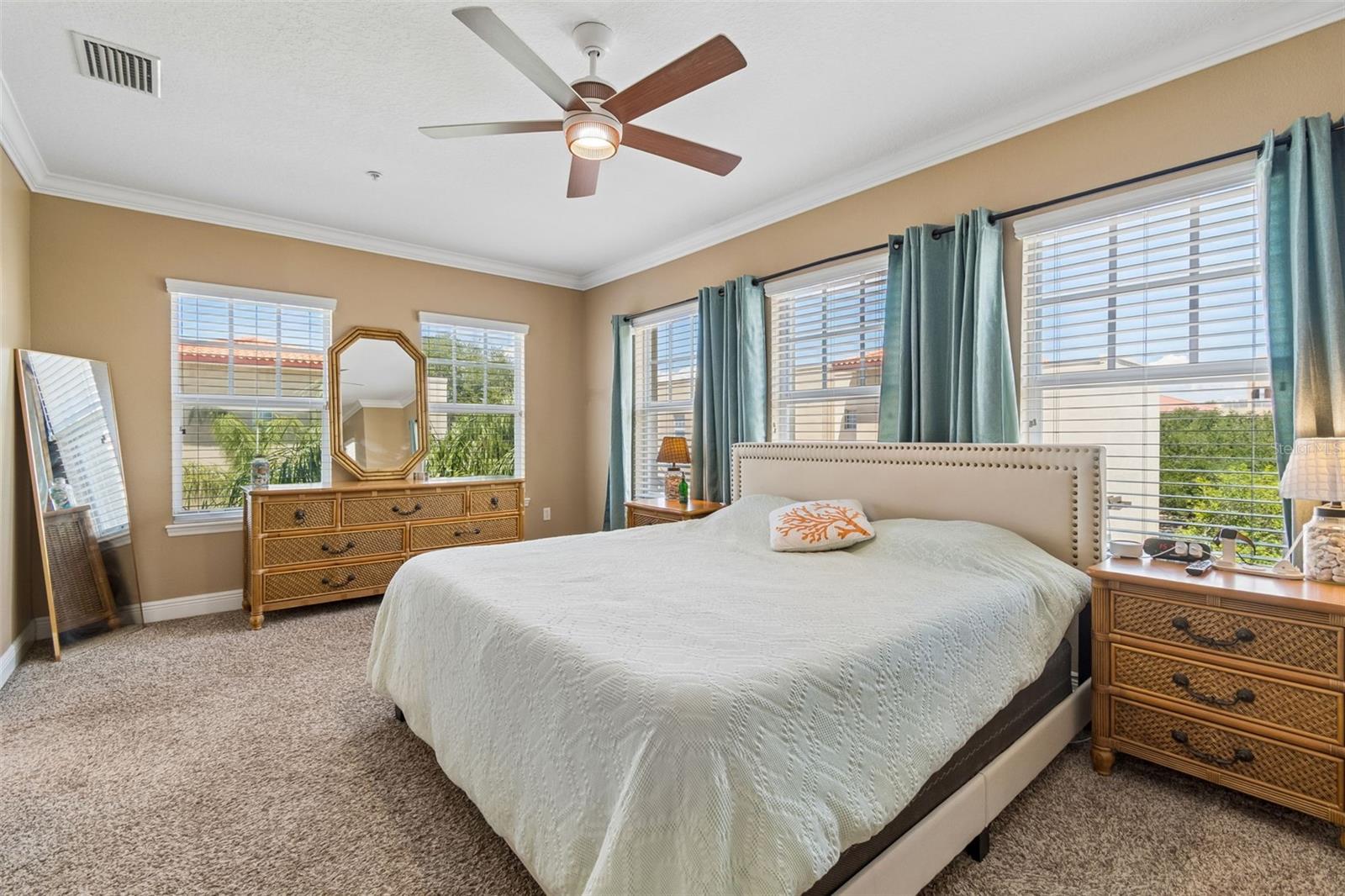 Location, lifestyle, and space—all in the heart of downtown Clearwater just minutes from world-famous Clearwater Beach. This furnished 2008-built end-unit townhome sits in a quiet, tucked-away community just one block east of Ft. Harrison Blvd. You’re minutes to restaurants, grocery stores, the Pinellas Trail, and Clearwater’s new waterfront amphitheater—everything you need right at your doorstep. Inside, the home offers a bright, open second floor with a kitchen/dining combo, half bath, and a living room filled with natural light from oversized windows. The third floor features a spacious primary suite with walk-in closet and en-suite bath, plus a second bedroom with its own private bath—perfect for guests. Laundry is conveniently located between both bedrooms. The 2-car garage includes two storage rooms, one of which is climate-controlled and ideal for a home office or flex space. As a rare larger end unit—one of only four in the community—you also get an extended driveway for guest parking, a private rear paver patio, and access to additional community parking. A rare opportunity for low-maintenance living in one of Clearwater’s most walkable and desirable locations. Schedule your showing today.