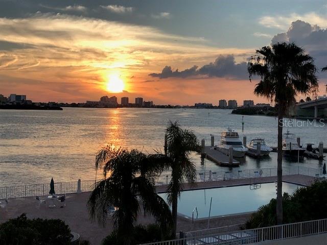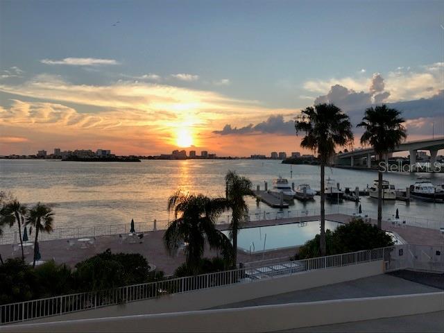 Impressive sunset view all throughout the year. The open western sunset view occurs every day of the year? For this complex the milestone inspection is complete, funding almost complete, conventional loans accepted, and the ongoing done! This is a rare opportunity to purchase 3rd Floor SouthWest Corner that provides open-water views to the west, southwest and the south! Water views from every room. This well-maintained building with onsite staff just completing numerous construction upgrades. There is secure 24/7 access. Underground garage parking with additional parking in the lot. Beautiful pool is directly waterside. Also directly accessible is paddle boarding (with storage) and fishing from the association's pier. Convenience to beach and to downtown (and the newly completed Coachman Park!) is provided by this one-of-a-kind location. The location is adjacent to a city marina where boat slips or boat rentals are available. What a combination to make this a vacation or full-time residence!! Short stroll to downtown and Capitol Theatre offerings, restaurants, etc adds to the desirability.