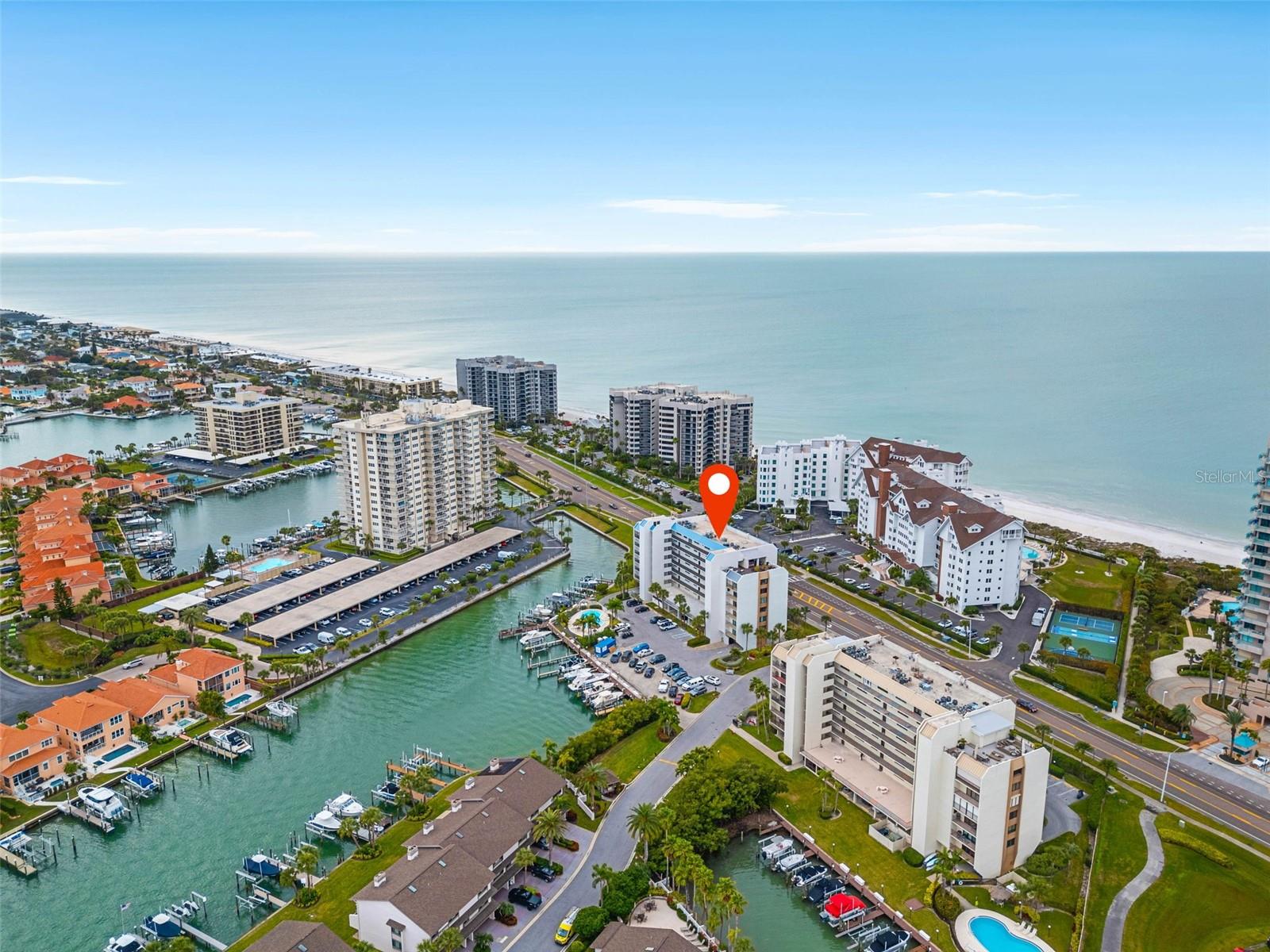 The BEST VALUE ON SAND KEY! PERFECTLY POSITIONED BETWEEN THE GULF OF MEXICO AND THE INTRACOASTAL WATERS, directly across the street from the sugar-white sand at HALF THE PRICE. Embrace the allure of coastal living with this fabulously valued 2-bedroom, 2-bathroom condo along Sand Key in the heart of Clearwater Beach. Perfect for both full-time residents and vacationers alike, this property offers the ultimate beachside retreat. Experience the unparalleled convenience of being just across the street from the pristine sugar-white sands of Sand Key. Whether you're soaking up the sun, taking a refreshing dip in the gulf waters, watching the sunset, or strolling along the shoreline, this location offers endless opportunities for relaxation and recreation. Inside, the kitchen and the guest bedroom have lovely views of the Intracoastal, adding a touch of tranquility to your daily life. Step outside onto your private balcony and savor Peek-A-Boo views of the Gulf of Mexico. This inviting community not only offers a beautiful pool for your leisure but also provides the OPTION TO SECURE A DEEDED BOAT SLIP, available for purchase. Imagine having your boat just steps away, ready for your next aquatic adventure. In addition, all sliders and windows were replaced in 2020, ensuring not only aesthetic appeal but also enhanced energy efficiency. Embrace the coastal lifestyle with open arms and make this condo your oasis by the water. Don't miss the opportunity to experience the best of beach living, combined with the comfort of a thoughtfully maintained complex. Schedule a showing today!