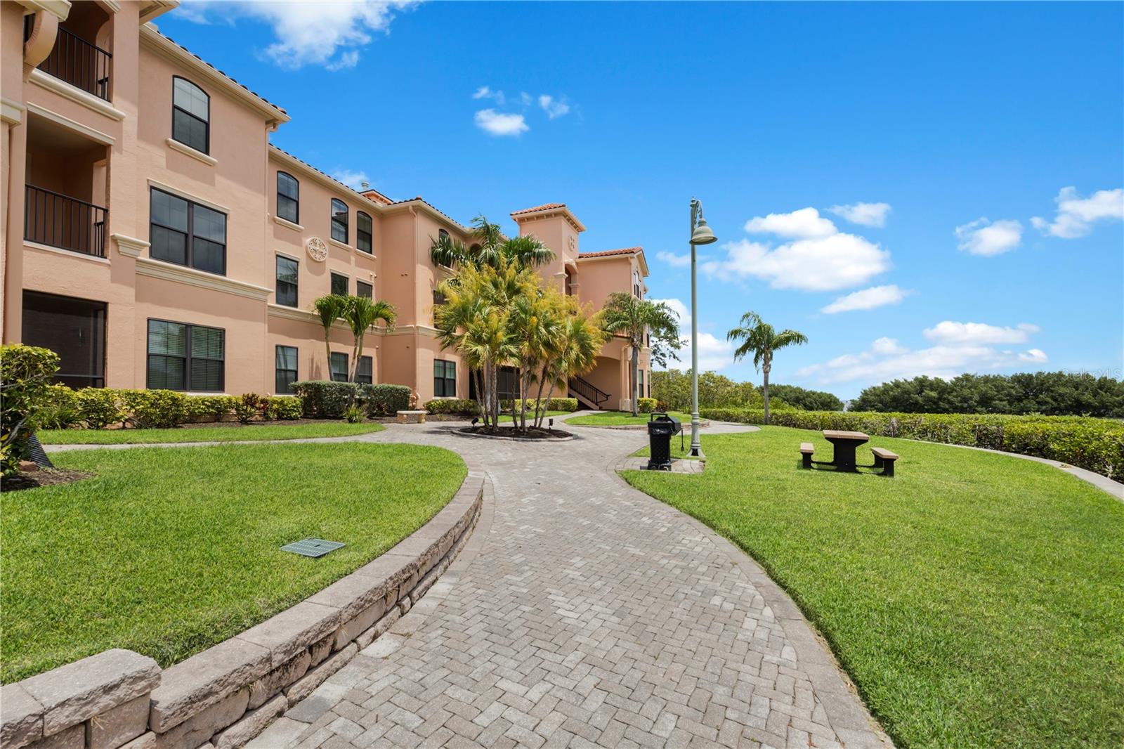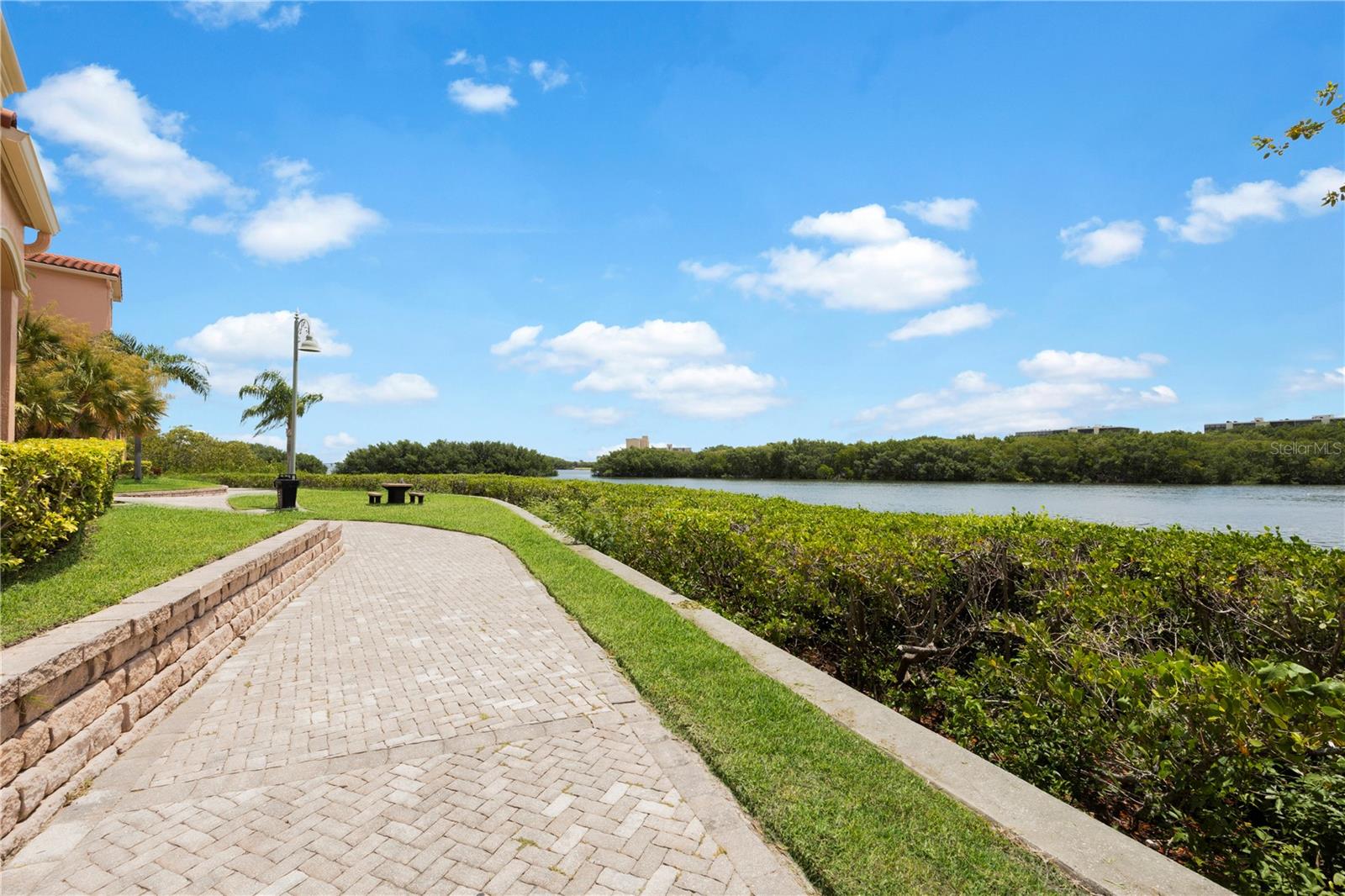 Paradise... that is The Grand Venezia. This hidden gem nestled right on the gorgeous Florida waters is everything imaginable. Can you picture waking up to a resort style life every single day. If this is your dream, look no further! The Grand Venezia is a luxury waterfront, gated community, located on the gorgeous Tampa Bay. This 3rd floor home is a spacious 1 bedroom/1 bath /den-office condo with a waterview from your private patio overlooking Tampa Bay. If an open floor plan is what you desire, then this is your new home. The den/office with French Doors can be used as a second bedroom. Once you enter this beautiful home, you will immediately notice the impeccable flooring in the bedroom and closet along with neutral tile throughout the open dining, kitchen, and extended living room. The open kitchen features pristine granite countertops throughout including a breakfast bar/ entertainment bar, which opens up to the dining room. If you like entertaining, this open floor plan is a dream come true. Additional features include 9' ceilings coupled with crown molding in the living, dining, kitchen, and master bedroom. This home also features a full size washer/ dryer in the enormous laundry room. How about amenities? There is so much to do on the property! The Grand Venezia has resort style amenities which include geo thermal heated pool/spa, sauna, lighted pickle ball and tennis courts, playground & free car wash area. The updated fitness center is open 24/7 featuring cardio and strength training equipment. Enjoy walking or jogging on the 1.5 mile lighted water front promenade. The guard pavilion is attended 24 hours a day for the property. The Grand Venezia is a separate property from The Grand Bellagio with a separate pool, fitness center, amenities, and HOA. Don't wait! Own your piece of paradise which is just steps away from Tampa Bay!