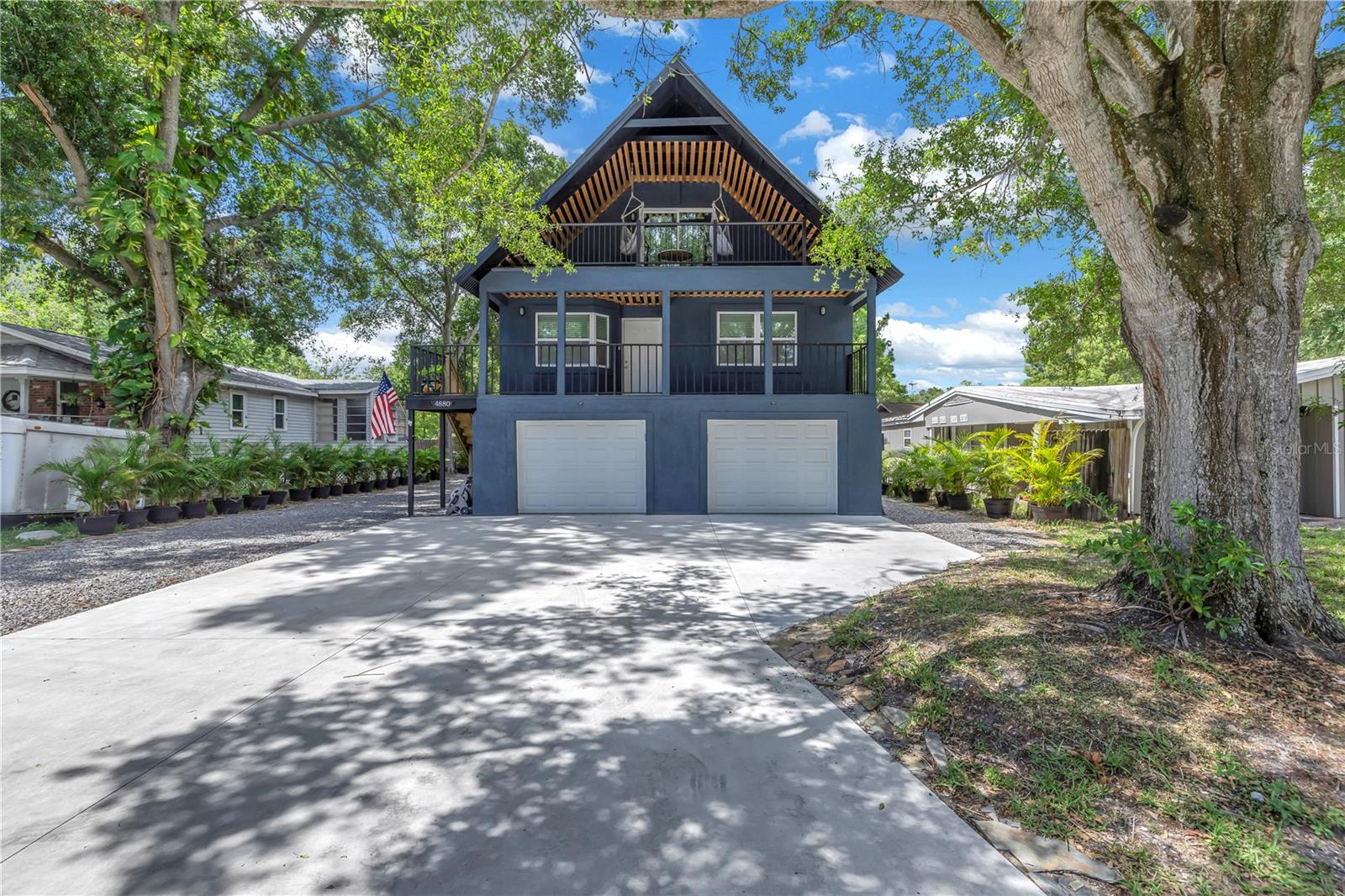 This stunning, fully renovated three-story home in Pinellas Groves is perfect for a multigenerational family. The spacious backyard offers ample room to add a pool, create a play area for kiddos and pets, or park your RV or boat. With three balconies, everyone can enjoy their privacy. This home has been meticulously updated with new flooring, roof, interior and exterior paint, appliances, washers and dryers, electrical, plumbing, HVAC units for each floor, garage doors, hurricane impact windows and doors, and solid core bedroom doors. Designed for flexibility, each floor functions as a self-contained living space. The first floor features a separate rear entrance, patio, two bedrooms, one bath, a full kitchen with stainless steel appliances and quartz countertops, a living room, a large laundry room with storage, and access to the oversized two-car garage. The second floor boasts a spacious front porch with teak flooring, two bedrooms, two baths, a kitchen with eat-in space, quartz countertops, stainless steel appliances, new cabinets, a formal dining area, living room, and laundry room. The master bedroom includes a large walk-in closet with built-in shelving and an en-suite bath. The back porch offers views of the fenced yard and a spiral staircase leading to the third-floor retreat, which features vaulted ceilings, a front porch, full bath, kitchen area, and ample space to relax. Unwind on the private porch swings and enjoy a cool tropical breeze. Additional features include a new roof (2023), HVAC units (2022), impact windows and doors (2022), and a transferable termite warranty (2023). The extra-wide lot and driveway make it easy to store your RV, boat, or other toys. Located close to award-winning beaches, St. Pete and Tampa International Airports, dining, entertainment, and shopping, this property truly has it all!
