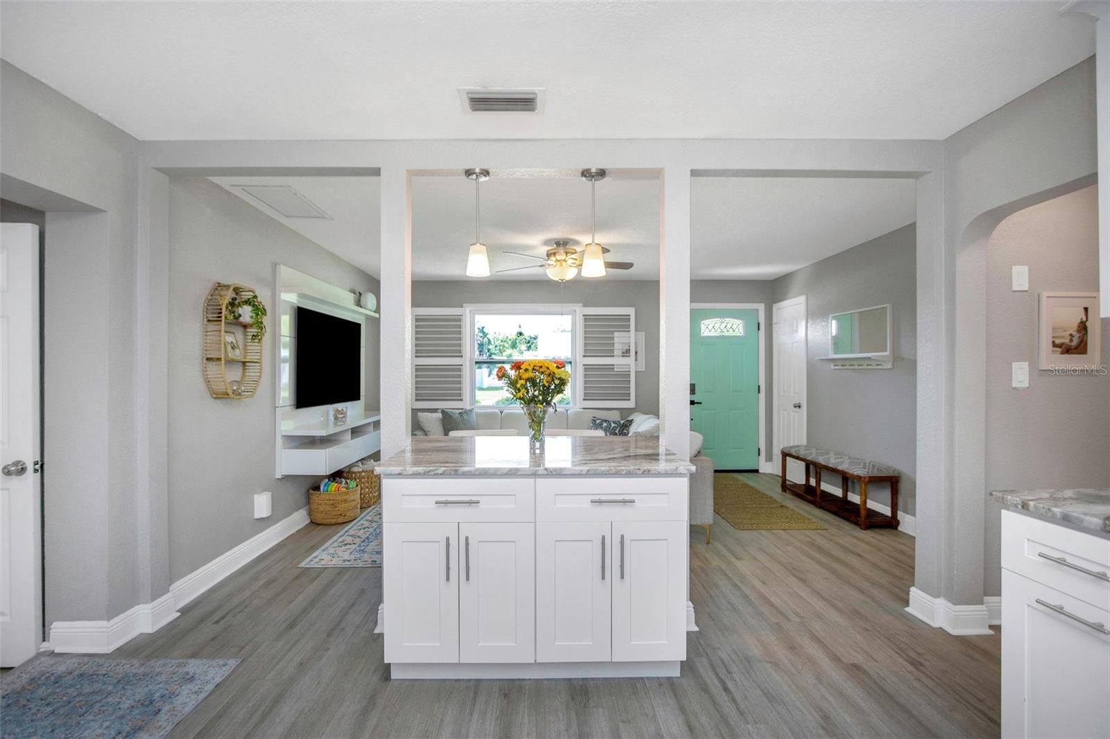 New Price!! Location!!! Just one block away from the Pinellas trail for access to Downtown Dunedin, three blocks to Edgewater Drive for amazing sunsets on the intercoastal, and centrally located to the award-winning pristine Gulf beaches of Honeymoon Island and Clearwater Beach, you will find this picture-perfect newly renovated Cottage. Tastefully renovated in 2021, your 3-bedroom, 2 full bath adorable home looks brand new. You can have peace of mind knowing that the major upgrades have been done including New roof 2021, New HVAC 2021, New windows 2021, New hot water heater 2021, New kitchen, baths, and more. Be captured by this home’s charm as you step into the light and airy open floor plan perfect for entertaining. Your eyes will be drawn to the coastal-style kitchen with sparkling upgraded granite counters, white Shaker cabinets with soft-closed drawers and stainless-steel appliances. Enjoy having your coffee and breakfast on the large kitchen island. The large hurricane impact windows allow sunbeams of light that make this home feel fresh and new. Plantation shutters and upgraded blinds have been added throughout your new home. Your split bedroom floor plan is perfect for having guests for the weekend. Two bedrooms and a full bath are on the west side of the home. On the opposite side, enjoy privacy in your spacious primary bedroom with your own ensuite bath with barn doors and large double closet. No need to worry about storage, there’s plenty of space available in the brand new 12 x 10 storage shed that has a double door for easy access, windows, and a pitched roof to accommodate a loft for your holiday decorations. Enjoy cookouts year-round in your spacious and private fully-fence backyard or spend time walking, biking, or golf-carting to historic downtown Dunedin to enjoy waterfront dining near the Marina, art festivals, live music, breweries, and shopping. Or enjoy a baseball game at Toronto Blue Jays stadium. And don’t forget about those evenings spent watching the sunset on the water. No HOA, Flood Zone X -no flood insurance required. Come and see where your new chapter in life will start!