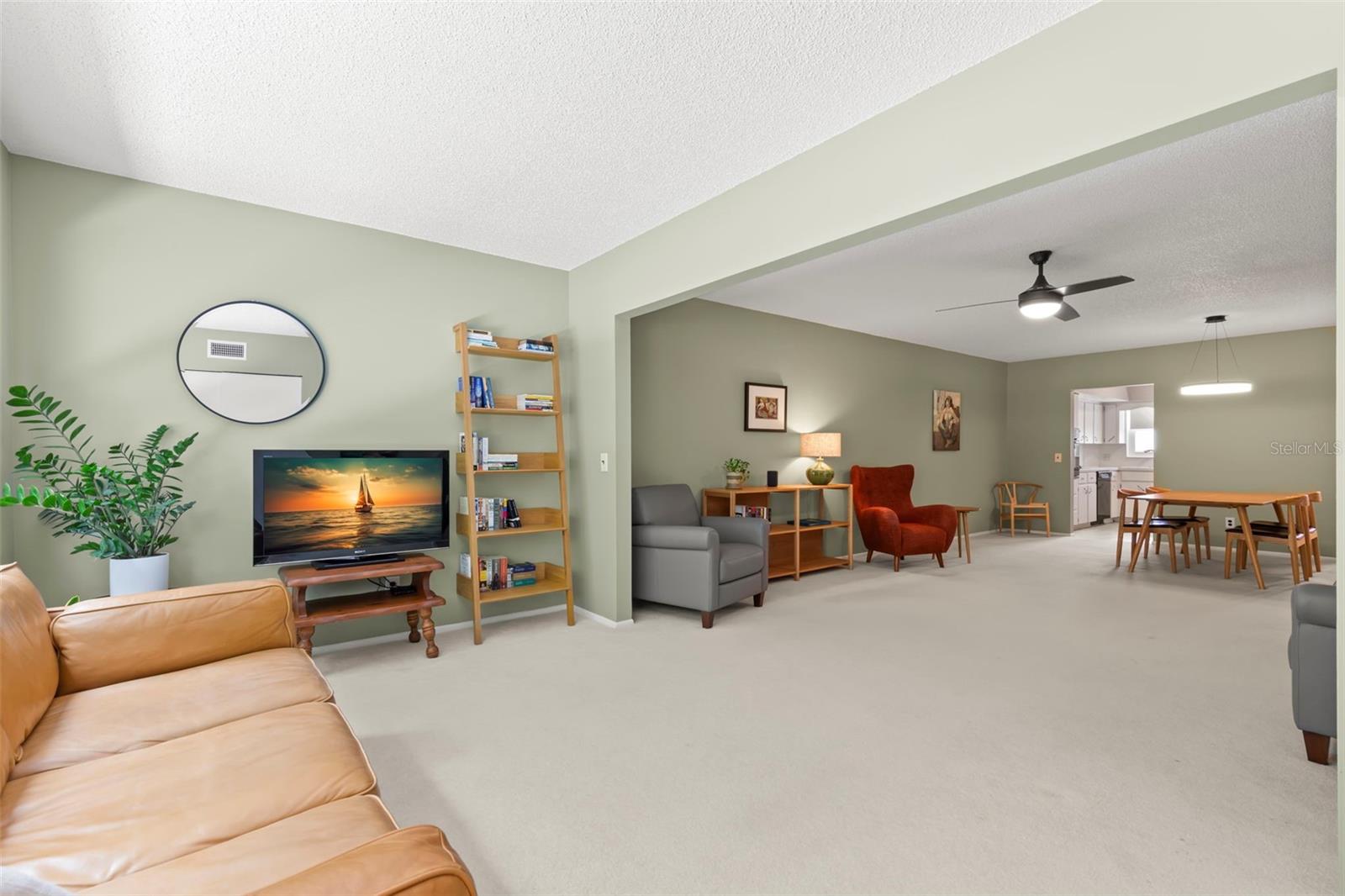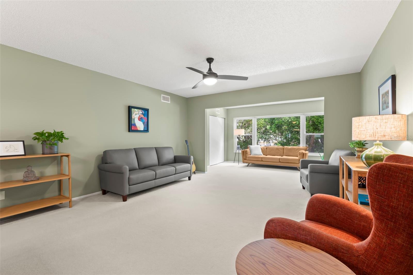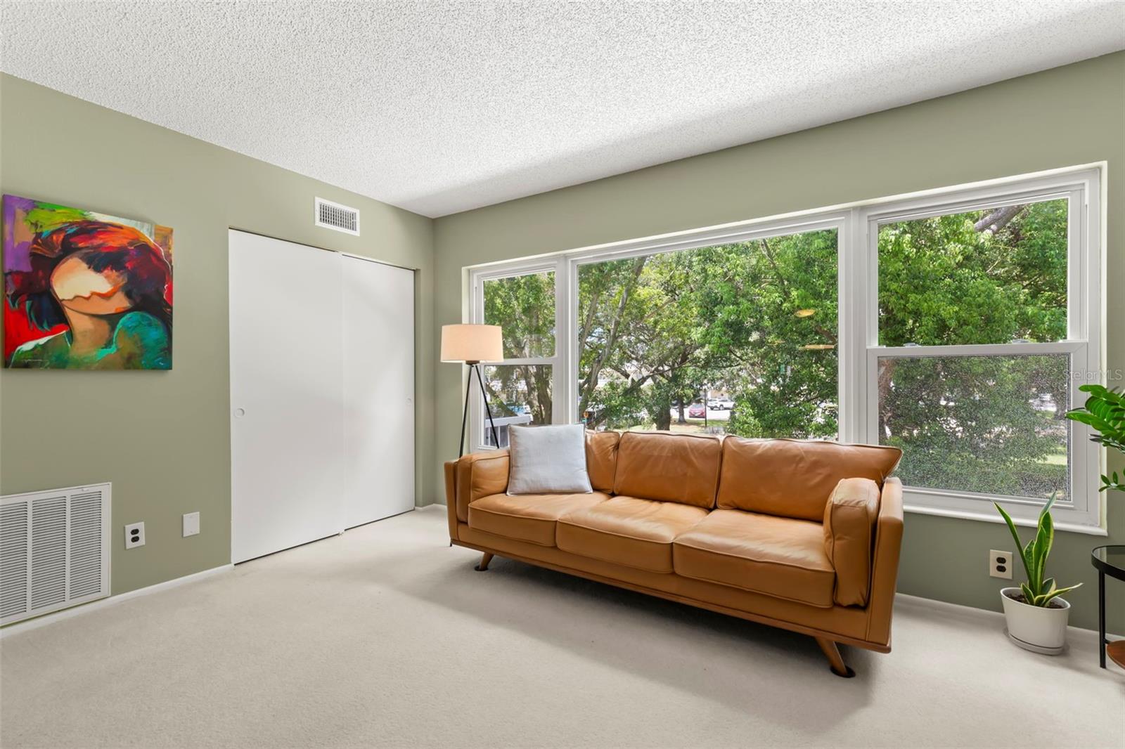 Location! Location! Location! Top of the World in Clearwater is an active 55+ community that is close to stores, medical offices, beaches, fine dining and entertainment. This lovely condo is a spacious (1400 square foot) located on the 2nd floor. It has two bedrooms/ 2 bathrooms with an open floor plan, that is a combination dining, living and Florida room area which features an updated large window. The beautiful triple pane picture window creates a bright, airy Florida atmosphere that overlooks trees and other greenery. The primary bedroom includes an ensuite bathroom and two large closets. The second bedroom is roomy and also has plenty of closet space. You can enjoy a morning swim in the community pool, or a round of golf in this active community, as well as visit the community gym, sweat to a fitness class or join one of their many clubs. There are also tennis courts, dancing, and so much more to stay active and connected. Even your fur babies have their own dog park. If you're looking for a beautiful move-in ready home, in a community that offers countless opportunities to enjoy social clubs and exercise, then this condo is the perfect one for you. Don't miss out on enjoying Florida living at its finest. All room sizes, floor plans and square footage are approximate and should be verified. This property is being transferred by a leasehold estate deed. Association approval is required. There is assigned parking for the residents and multiple available spots for visitors. The furniture is negotiable.
