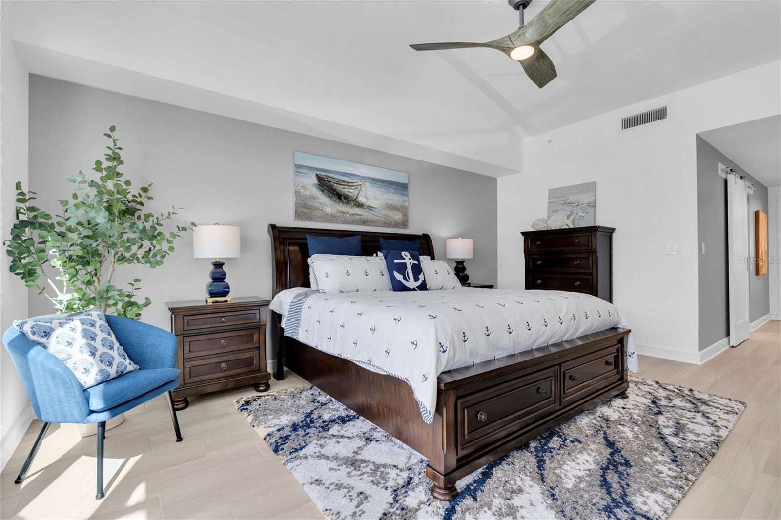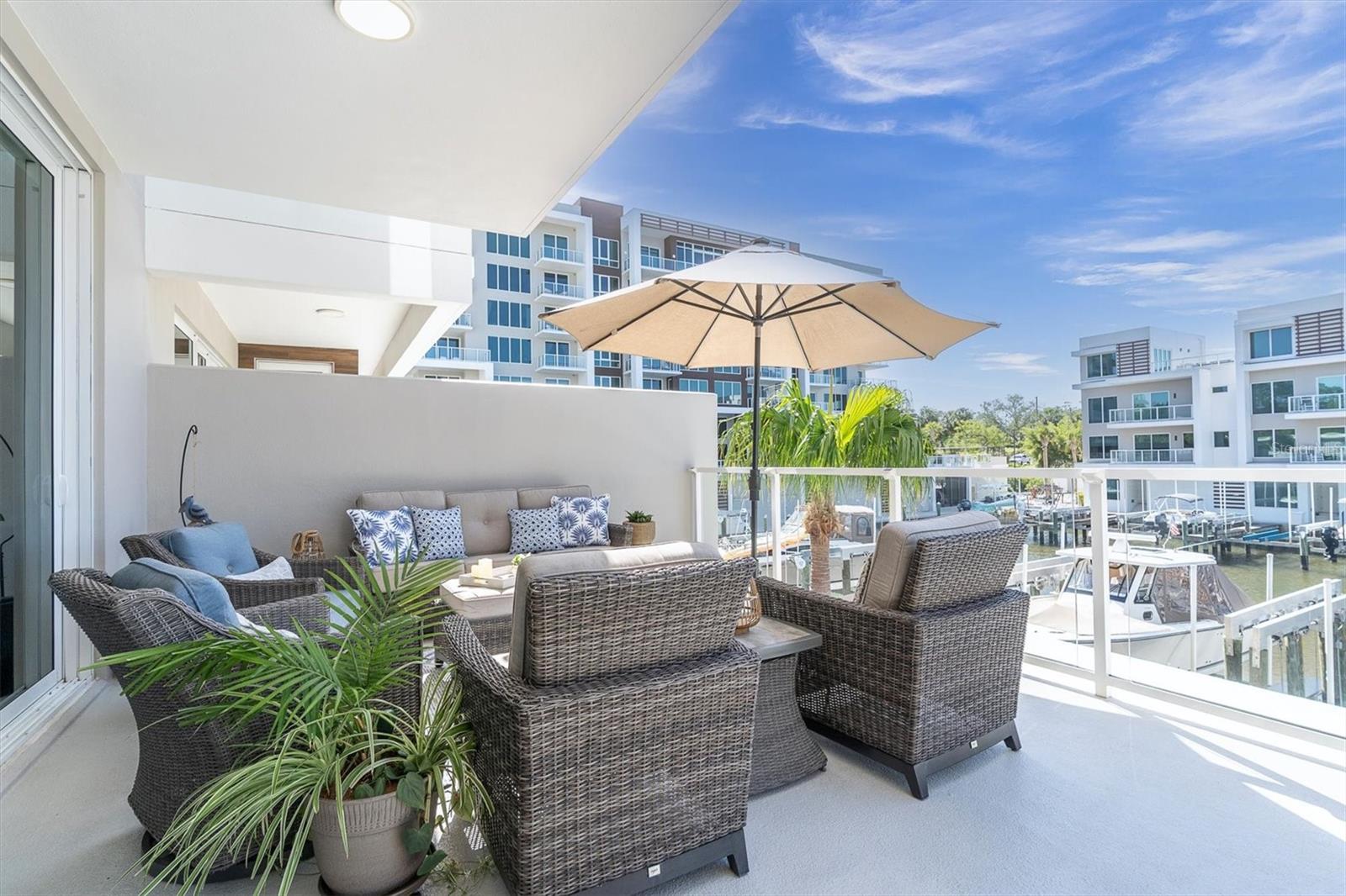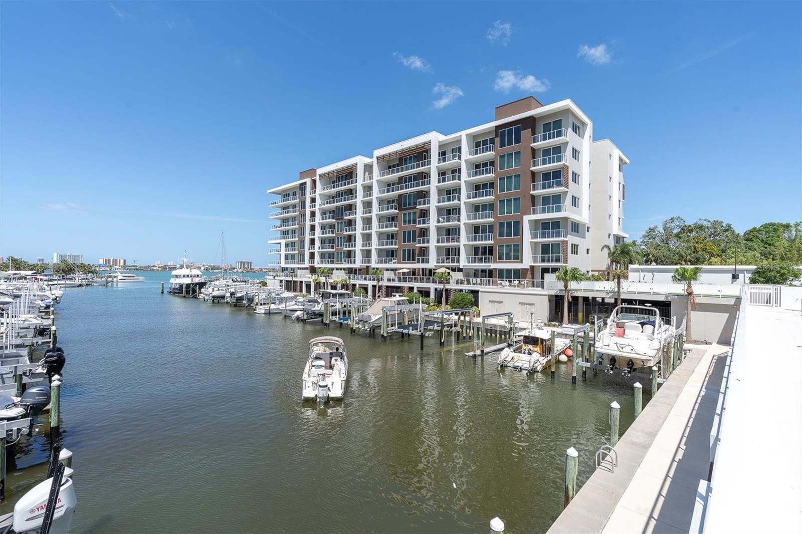 Marina Bay 880, a prestigious waterfront condominium. This 2021-built, upgraded 2003-square-foot residence offers two bedrooms, two bathrooms, and a flexible den space that could be used as a third bedroom, complete with a marina and sweeping views of Clearwater Bay. One of only a few units to include an oversized balcony totaling 599 square feet, giving an impressive 2602 square feet total space. Exceptional value, and yes, there are custom closets everywhere. Upgraded wide plank neutral wood-look tile flooring installed throughout the entire condo—no carpet here. Luxury kitchen features extended solid wood soft-close white shaker cabinetry, a walk-in pantry finished in custom shelving near the laundry hall, and a GE Café Series stainless appliance suite: Café refrigerator, upgraded Café range and range hood, dishwasher, and built-in microwave. Quartz countertops, a finished island, brushed gold hardware, white tile backsplash, undercabinet lighting, decorative shelving, designer lighting accents accented by wide decorative crown molding. Open floorplan with dining and great room overlooking the marina. Every window is fitted with Somfy remote control power shades. Spacious primary bedroom with balcony access and framed by large windows that showcase the view. Custom closets. Spa-like primary bathroom features a walk-in shower with a large niche and built-in bench, dual vanities with quartz counters, drawer stacks, designer sconces, and a private water closet. The den currently used as both an office and guest room. The custom-designed doors provide privacy, and utility closet allows for additional storage. Guest bedroom on the opposite side of the home with sliding doors that lead to the balcony, offering marina views. Full bathroom with a tub and shower combination. Laundry area includes opaque French doors that open wide to reveal a washer and dryer, cabinetry and counter space for organization. 5x5x10 storage unit and two assigned parking spaces. Marina Bay 880 offers luxury amenities: 24/7 concierge service, a 25-meter saltwater lap pool, sauna and steam room, state-of-the-art fitness center, billiards room, and putting green. Adjacent marina with 69 slips, 47 of which have lifts, and residents receive priority leasing options. Bicycle and kayak storage, EV charging stations, and a panel ready for personal charger installation. Professionally managed with fully funded reserves. Located on the Clearwater Bay waterfront, just steps from the Intercoastal Waterway and Clearwater Basin Marina, Coachman Park, BayCare Sound, the Pinellas Trail, Capitol Theatre, and the Clearwater Main Library. Market Marie every second Saturday, or dine nearby at waterfront favorites. Next to Seminole Boat Ramp, Francis Wilson Playhouse. Clearwater Beach is just a short drive away, and downtown Dunedin is less than two miles from your door. With easy access to boating, biking, live entertainment, and everyday essentials, this location offers the best of Florida living right outside your door. This vibrant area also gives you access to Freedom Boat Club, local fishing, dive charters. If you're heading out for a sunset cruise or a weekend ride down the Pinellas Trail. Grocery stores, cafes, and wellness centers are all close by, and the neighborhood’s walkability makes everyday living feel relaxed and connected. Combining natural beauty with urban convenience, Marina Bay 880 is ideally situated for those who want it all. Virtual Tour bit.ly/920Osceola