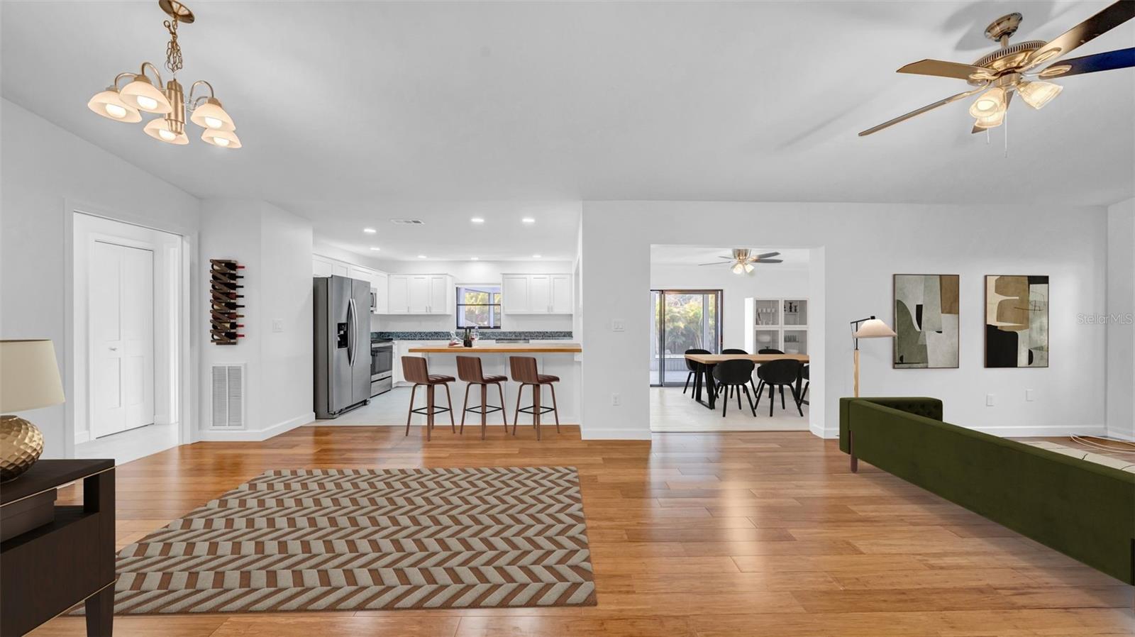 Under contract-accepting backup offers. One or more photo(s) has been virtually staged. The perfect home you’ve been waiting for is here! Located in unincorporated Clearwater with no HOA and no CDD, this beautifully remodeled 3-bedroom, 2-bathroom home sits on over a quarter-acre lot and showcases impeccable craftsmanship inside and out. Best of all—no flood damage! Tucked within a well-maintained, peaceful neighborhood, this home offers unbeatable convenience—just 20 minutes from Clearwater Beach, Honeymoon Island State Park, and the Dunedin Causeway Beach; 10 minutes to charming Downtown Dunedin; 15 minutes to the famous Safety Harbor Resort and Spa; 20 minutes to St. Pete–Clearwater Airport; and only 30 minutes to Tampa International Airport. You’ll be close to beaches, parks, shopping, dining, and everything the Clearwater and Tampa Bay areas have to offer! Step inside to fresh Sherwin-Williams premium paint and enjoy vaulted ceilings with no popcorn ceilings anywhere. The custom remodeled kitchen features a butcher block island, granite countertops, custom pull-out soft-close drawers, and recently purchased stainless steel appliances. The bathrooms are thoughtfully updated, boasting a custom vanity from Ferguson’s, porcelain tile flooring, and a walk-in shower with sleek slate tile. Throughout the home, you'll find high-end finishes like bamboo flooring, porcelain tile, and upgraded millwork doors sourced from a local mill. Step outside to a huge fenced backyard lined with mature privacy trees—perfect for relaxing, entertaining, or building your dream pool. A shaded, screened lanai offers a comfortable outdoor retreat, while a double gate provides easy access for trailer or boat storage. Additional highlights include a sprinkler system, a two-car garage, and peace of mind with major updates like a new AC (2020), new roof (2022), and appliances only three years old. Homes with this level of craftsmanship, space, and location rarely come available—schedule your private showing today and experience Clearwater living at its finest!