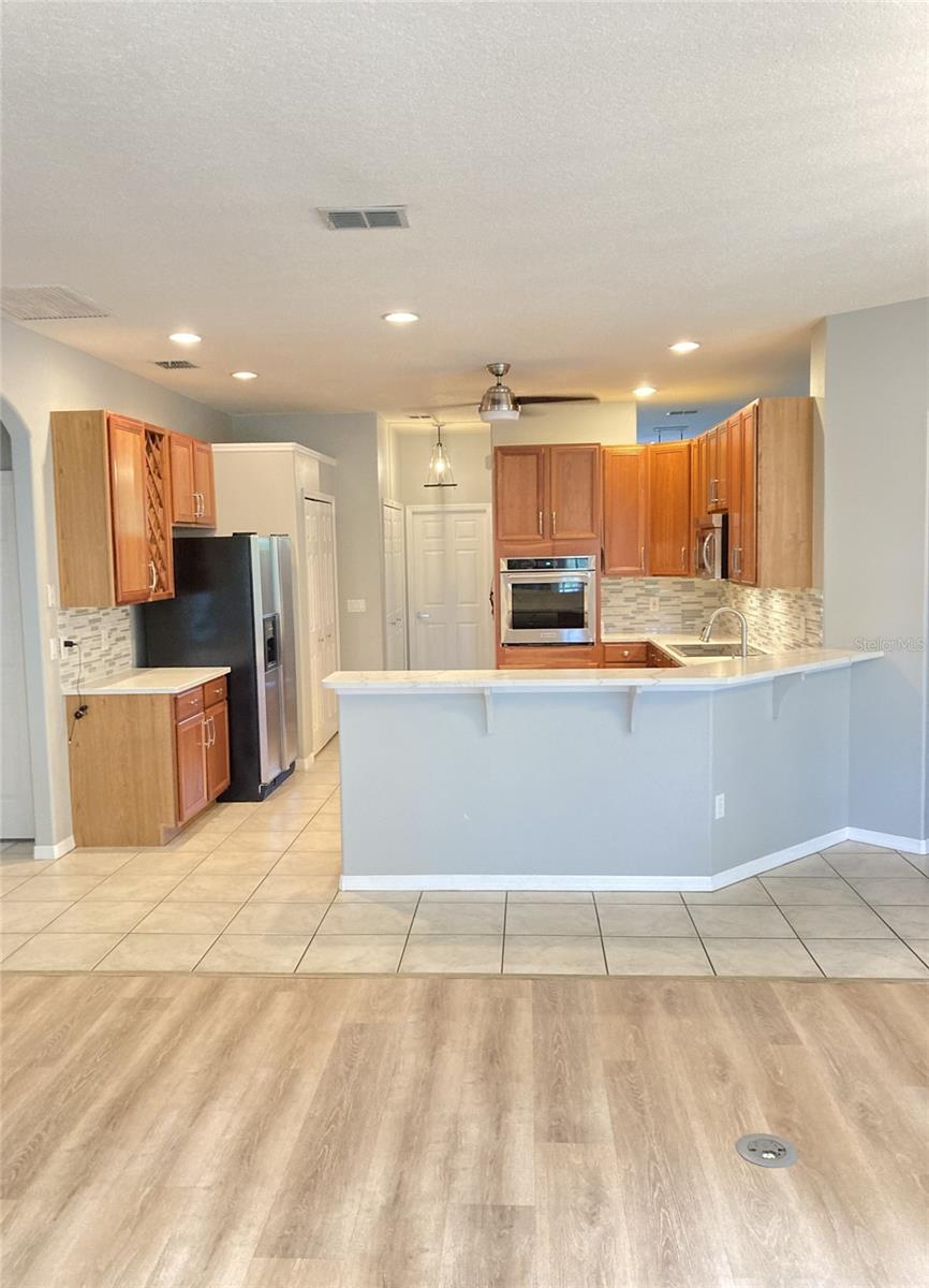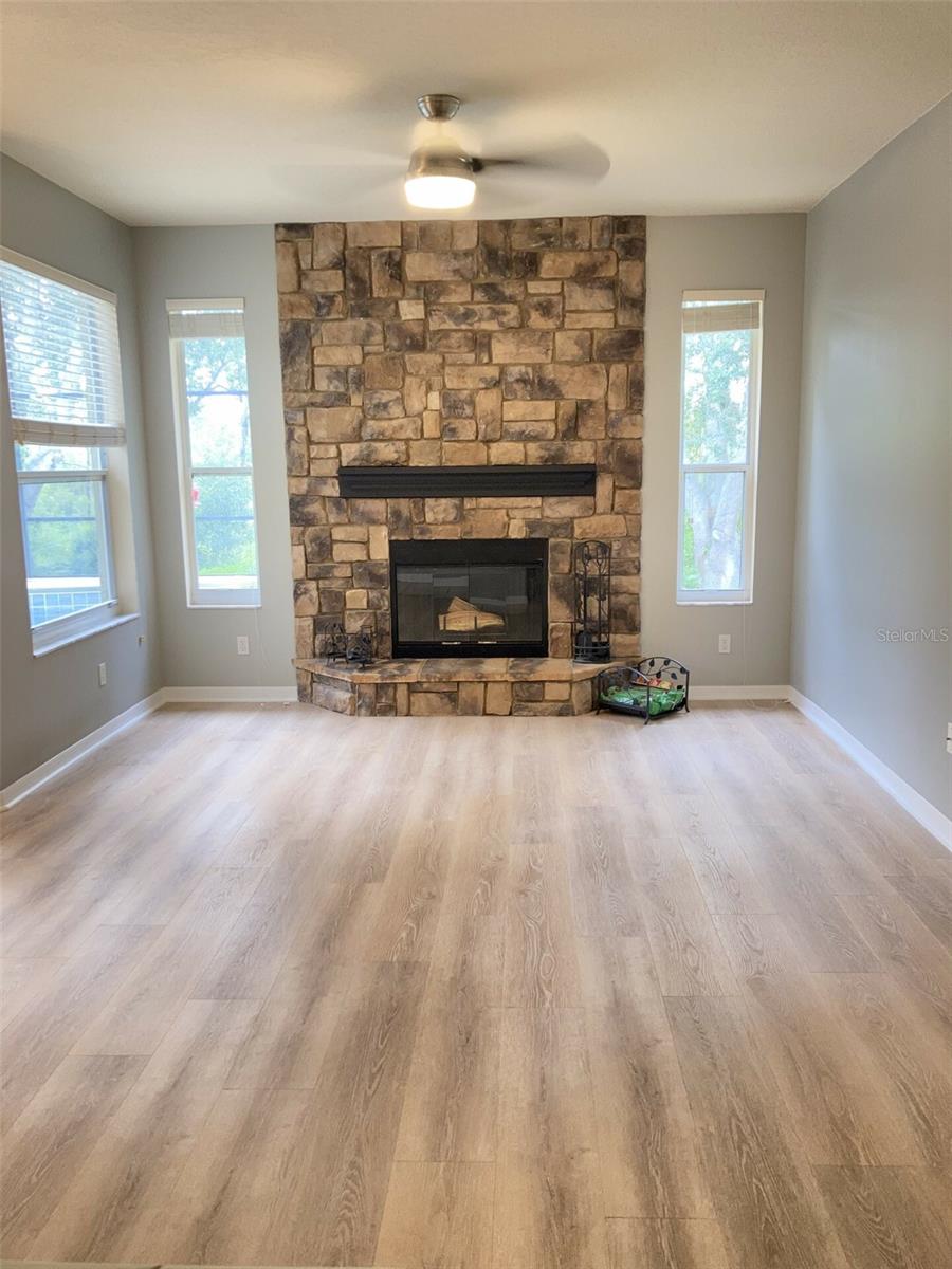 Welcome to this lovingly maintained 2096 square foot home located in the beautiful city of Clermont. This home is situated in a very quiet and friendly subdivision named Arrowhead Estates.It is close to major roads and highways, restaurants, shops, hospitals, schools, and all that a household may need. This home features three bedrooms and two baths which include a Jacuzzi-jet tub, one-piece toilets, modern fixtures, top of the line faucets, double vanities with new countertops, and walk-in closets. All of the light fixtures and ceiling fans in the home are new and matching. This house is equipped with smoke detectors throughout and is wired for a security system.All bedrooms are freshly painted with new, plush carpeting.The master bedroom is very large, 17x12 feet, that looks out to a sparkling swimming pool through French doors. The second bedroom is 16 1/2 x 12 feet with a large wall-to-wall closet that includes built-in shelving and two large windows that look out to the yard. The third bedroom is 17 1/2 x 12 feet with a large walk-in closet. The spacious kitchen offers KitchenAid appliances, large Cherry cabinets, modern quartz counters, double sink, large pantry, and lots of storage. The FR and dining area, 19 1/2 x 18 1/2 feet, has new plank flooring and a wood burning fireplace with real stone. Also, in the household area are windows and sliding doors lead you to the Lanai and pool.The living room is 13 1/2 x 24 feet with tile flooring and French doors that lookout to the pool.The formal dining room is 11 x 13 feet with new plank flooring and chandelier. Included are an LG washer and dryer.The property boasts a huge two-car garage located on the side of the house and has been freshly painted. Located in the garage is a ladder to the attic which is ready for any additional storage needs.The beautiful, sparkling pool is enclosed with a new screen, a new pool heater, multi decks, and waterfall. The pool light is equipped with multi color LED lighting for nighttime entertaining and swimming via remote control. The deck is also recently painted. The very private and shady backyard has two mature oak trees and is completely fenced in with vinyl fencing. There are two gates on each side of the front of the home with locks for security. The backyard also offers stairs leading down-slope to a sitting area and has hedges and mature plantings all around.This property is beautifully landscaped with stunning, metal, double front doors.This home also features no rear neighbors! By becoming a resident of this community you will also receive access to a community pool and playground. Across the street from the home is a large pond with fishing permitted for residents. Come see this beautiful home that is ready to welcome you and entertain your friends and household. Enjoy the sunsets from your Lanai and enjoy what Florida living is all about.Upgraded home features:Roof replaced 2021AC Unit replaced 2021Oven replaced 2024Pool heater replaced 2024Lanai and pool screening replaced 2023