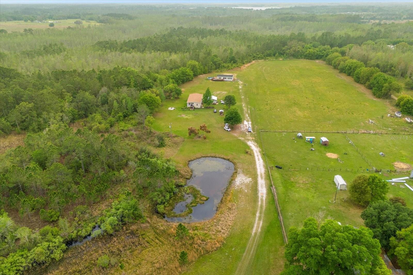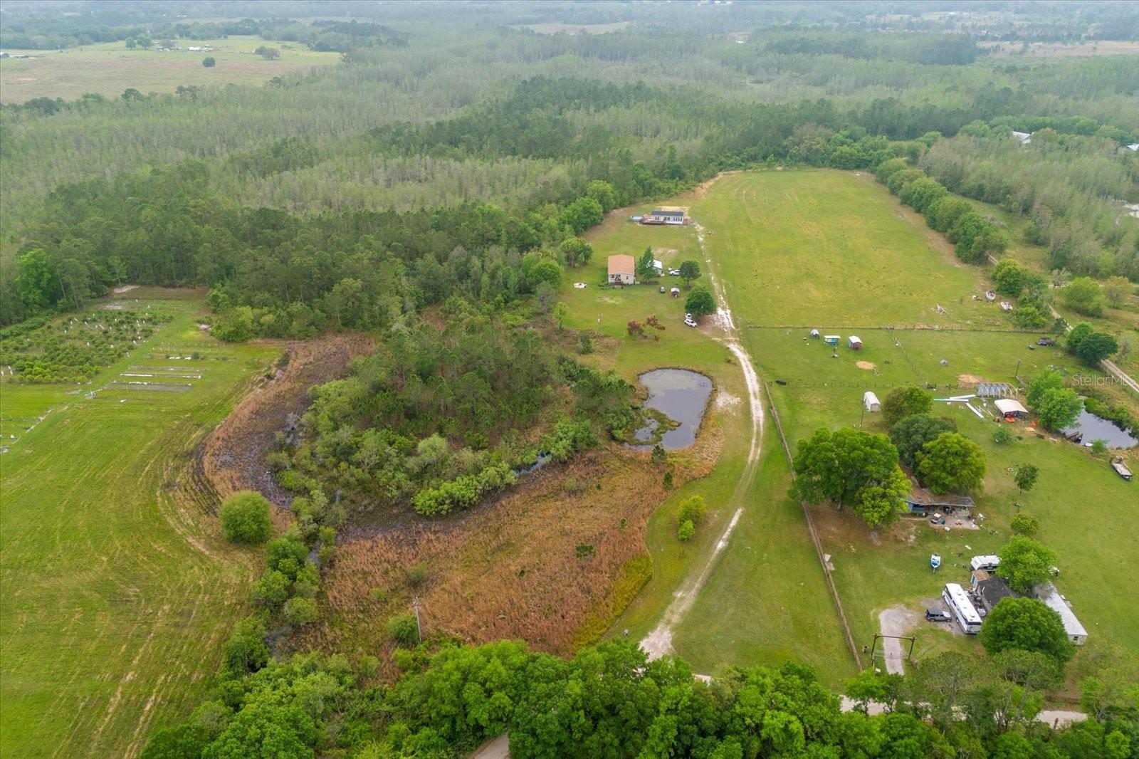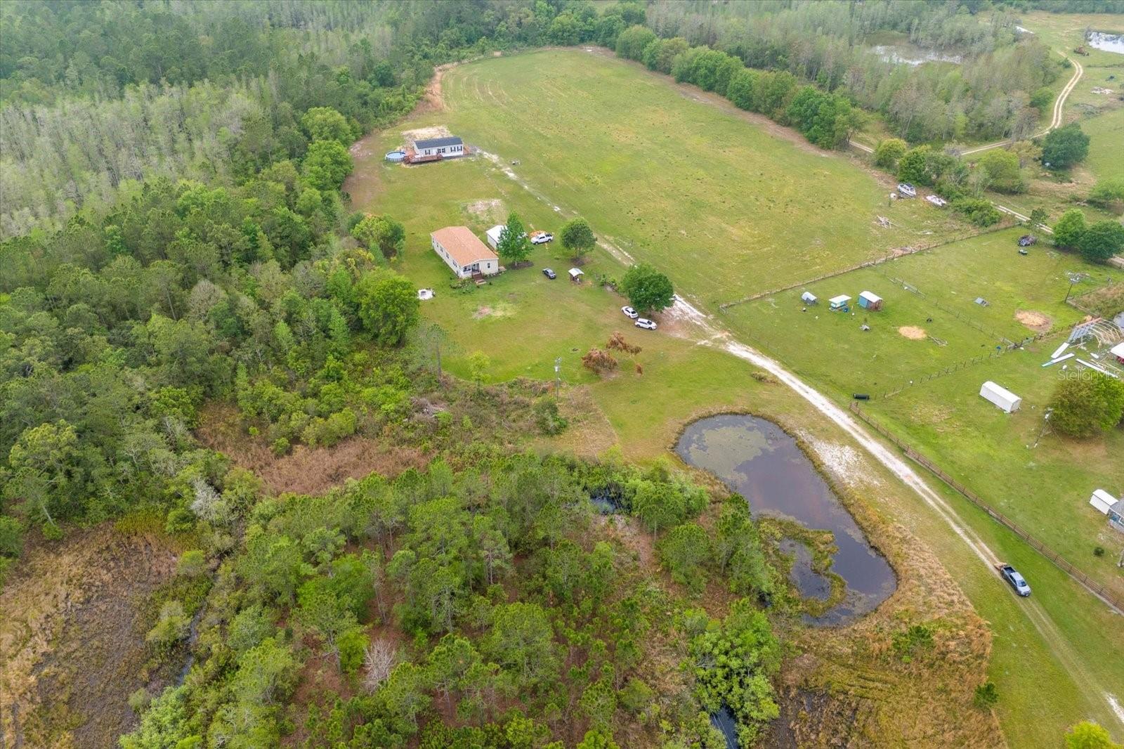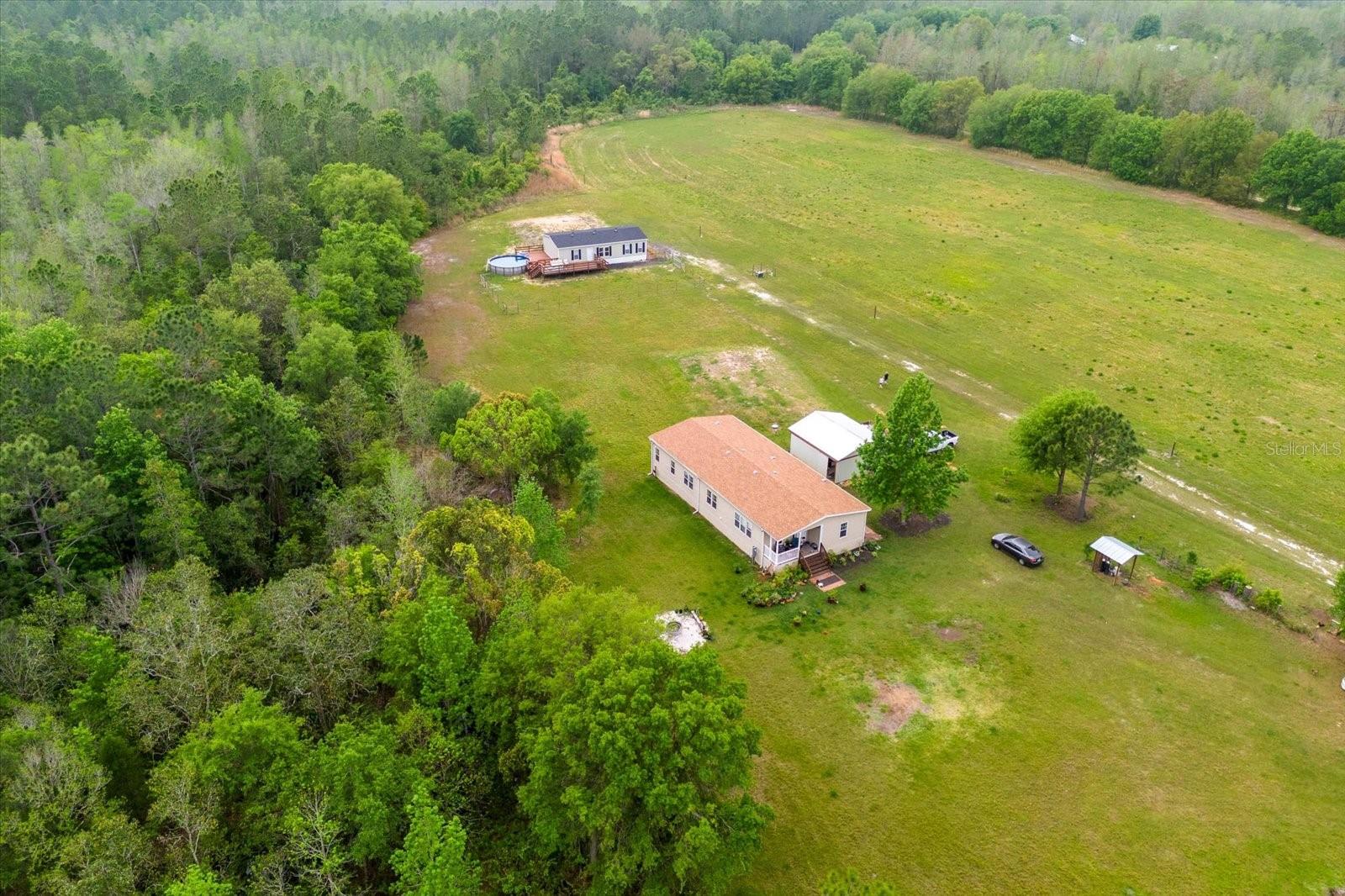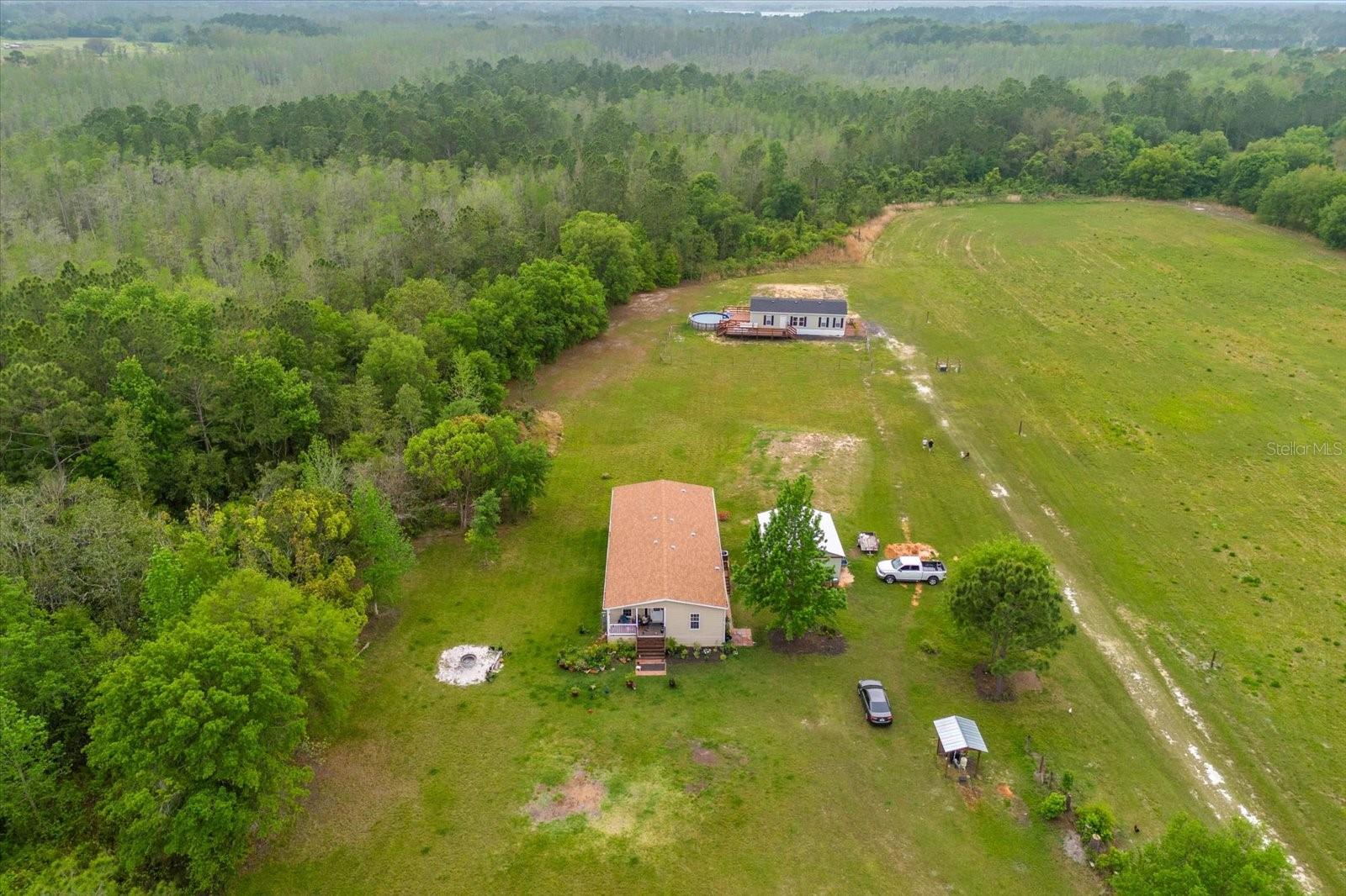 Investors!! Air BnB owners!! Multi family!! So many possibilities! Welcome to your dream oasis nestled in the heart of Florida! This listing presents a rare opportunity to own 10 acres of pure paradise, where luxury meets convenience just a stone's throw away from town. Step into the main residence, a stunning 2000 sq ft home built in 2021, boasting 4 spacious bedrooms and 2 luxurious baths. With its modern design and thoughtful layout, this home offers the perfect blend of comfort and style. Adjacent to the main house, discover a free-standing garage or workshop, providing ample space for all your storage needs. Whether you have a collection of tools, a prized boat, or an RV waiting to be parked, this versatile space has you covered. But that's not all – imagine having the flexibility of an in-law home or an accessory dwelling unit (ADU) built in 2023 at your disposal. This additional residence features 3 bedrooms and 2 baths at 1200 sqft, with an above ground pool with deck, perfect for hosting guests or generating rental income. As you explore the expansive grounds, you'll be captivated by the serene pond and the tranquil sounds of a meandering creek. Picture yourself unwinding surrounded by the lush greenery of your own private sanctuary. And for nature enthusiasts, a portion of the lot is wooded, providing a picturesque backdrop and endless opportunities for exploration. Whether you're a birdwatcher or simply crave a peaceful retreat, this property has it all. With its open layout and abundant space, this Florida haven offers endless possibilities for relaxation, recreation, creating cherished memories or a successful short term rental business. Only 35 minutes from Disney and other Orlando theme parks, this is the ideal spot for short term rentals! This would also make a great wedding venue with just a little modification! Don't miss your chance to make this idyllic retreat your own – schedule a viewing today and experience the epitome of Florida living!