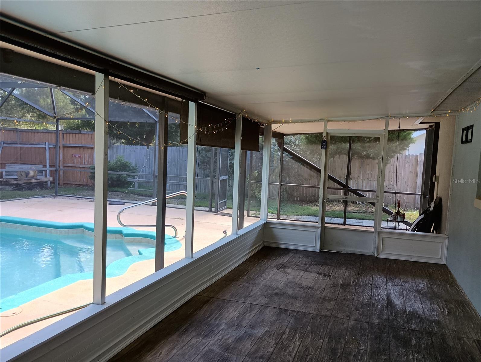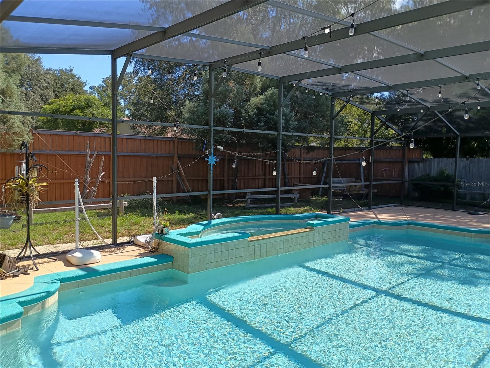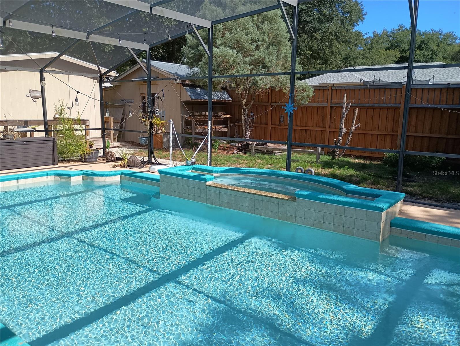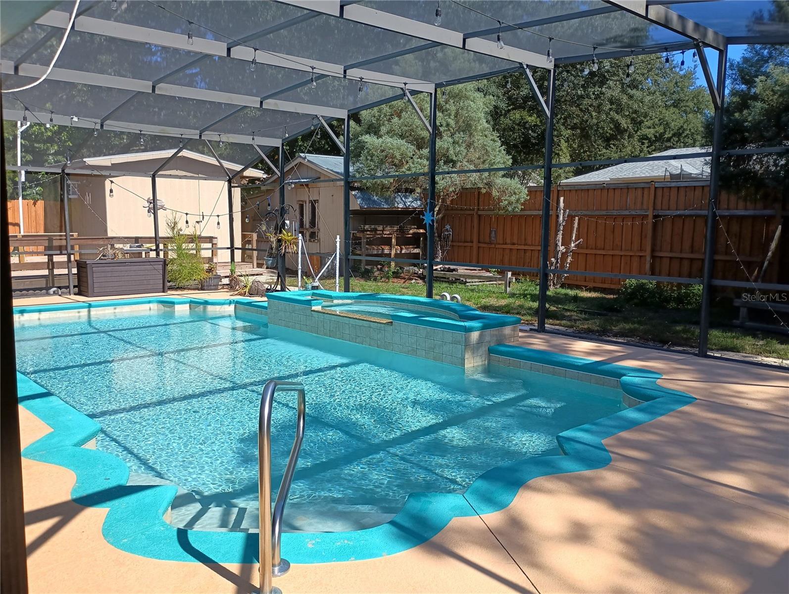 NEW PRICE REDUCTION on this 3-bedroom, 2-bath, saltwater pool home on a quarter acre in Reagans Run in Clermont. When you step inside the glass front door, you feel the open floor plan, notice there’s no carpet and you’re immediately drawn to the French Doors. They open to the Florida Room which unlocks your outdoor oasis. Step into a huge tiled and screened-in lanai complete with twinkling lights! The birdcage also has lights to help illuminate the pool area, complete with a color changing pool light operating on a remote control. There are also solar panels to heat the pool, an irrigation system, filtered gutters and pavers surrounding the perimeter of the house. Outside, there’s an outdoor shower and a shed and workshop that are both hooked up to power. The entire backyard is completely fenced with 2 gates for even more privacy. Step back inside and the kitchen has granite countertops, a deep double sink and the bottom cabinet drawers roll out for even more storage. The eat-in area of the kitchen overlooks the beautiful outdoor area and is open to the family room. The split floorplan offers a large master suite with vaulted ceilings, plant shelves and a walk-in closet. The other 2 bedrooms share a bathroom with a tub/shower combo. The garage has an epoxy floor, a new water heater in November 2023, a laundry tub and cabinets for more storage in the garage. The house has already been pre-wired for a generator as well. The Clermont Chain of Lakes offers boating and fishing, and the boat ramp is right around the corner. This house has so much to offer and is close to shopping, restaurants, theme parks and medical facilities. Make your appointment today as this home will not last!