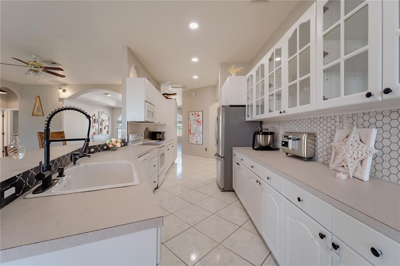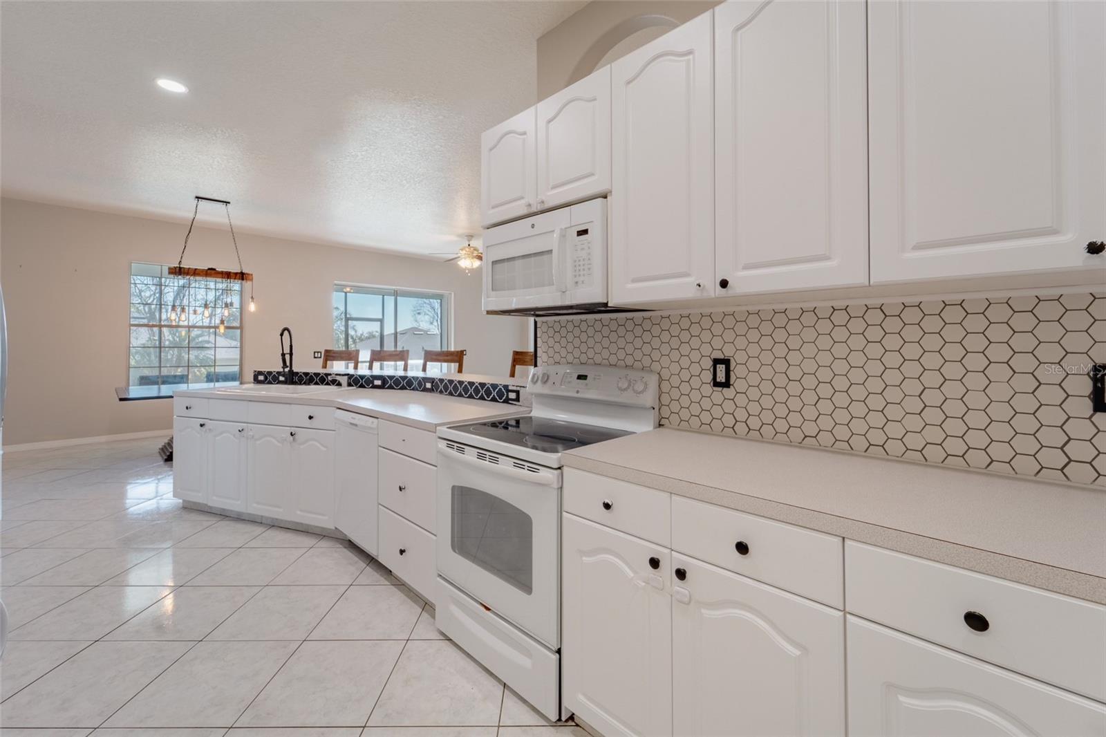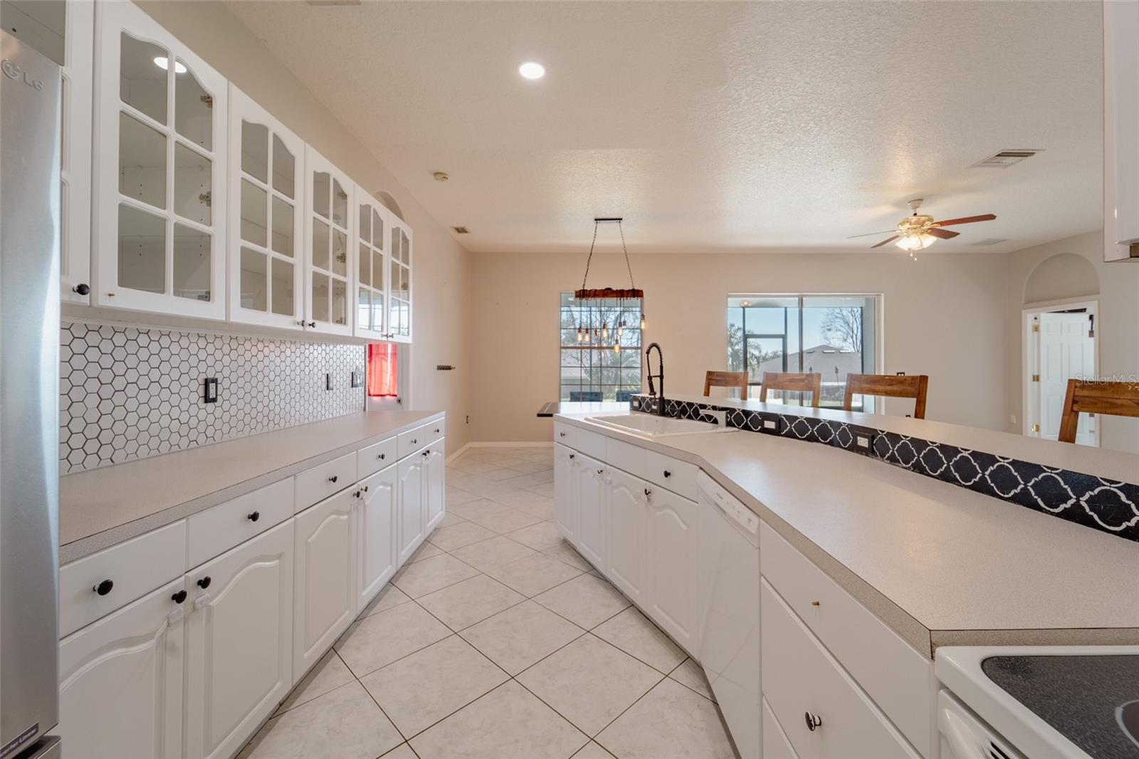 One or more photo(s) has been virtually staged. Welcome to all the space you need by the schools you love and the shopping, banks and restaurants that you'll have right at the end of your street! This 4 Bedroom 3 bath home is just what you need to grow your family and make this house your home, right here in Clermont Florida. Known for the chain of lakes, water sports, Choice of the Champions athletic events, growth and business potential, you can enjoy being a part of all that is new and happening. When it's time to come in from all the outdoor activities or a long day at work, you can sit, relax and enjoy the large open floor plan, with bedrooms at every corner, a kitchen with newer appliances and a breakfast bar that fits 4 stools. Let's not forget that 2 of the 4 bedrooms are large Ensuites that you can decorate to suit your most relaxing self. The double living and family room allows so many things to happen and everyone can have their own space doing it Bring all the artwork, with the abundance of walls you can hang your favorite pictures or family portraits. There is a room and space for everyone and a kitchen with PLENTY of CABINET SPACE to store all your favorite culinary secrets. For extra convenience, the washer/dryer is right behind you for those busy laundry days where you need way more hands than you have. Head outside to Barbeque and enjoy the screened in patio, which you can get to from both Ensuites, when you want to get some fresh air but not ready to immerse yourself in the Florida sunshine. The home has a newer roof (within the last 7 years), a new AC unit and handler 2023, and the septic tank was just cleaned out January of this year. The neighborhood streets are lined with beautiful oaks and convenient to everyday living. School bus stops are in the neighborhood and if you need a quick trip to the drugstore, it's at the end of the block. The home is located minutes from Highway 27 and whether you head north or south, you'll find a favorite Central Florida Destination. The white tile floors throughout and lots of windows allows for all the lighting you could hope for to brighten up any day. The main ensuite is off the kitchen on the East side of the home, with two very large walk in closets, a garden tub and walk in shower, and double vanity. The 2nd ensuite has a full bath for guests or set up as a home office or even a family entertainment area. The 3rd and fourth bedrooms share a full bath at the east corner of the home, in a private hallway, off the family room. This home has not one but two huge rooms to dive deep into your creative with and make it your happy place to enjoy and share. Fell like taking a walk, head to the bottom of the neighborhood, where you'll find one of the many beautiful views of Lake Louisa, one of our many beautiful lakes here in lake county. If you are looking for a home to call your own, We Have It and We Can Help You Make It Your Home. Call today for showing instructions.