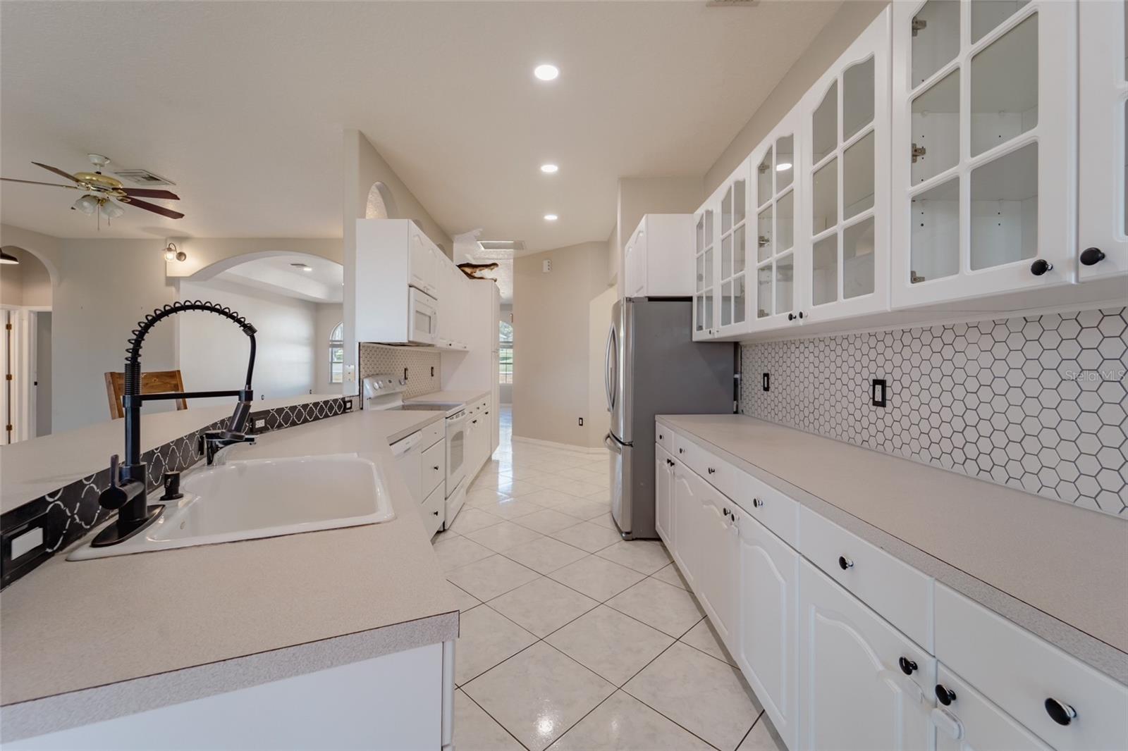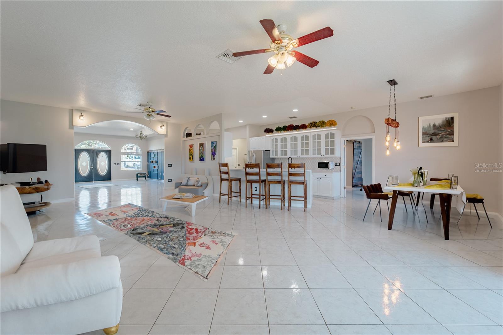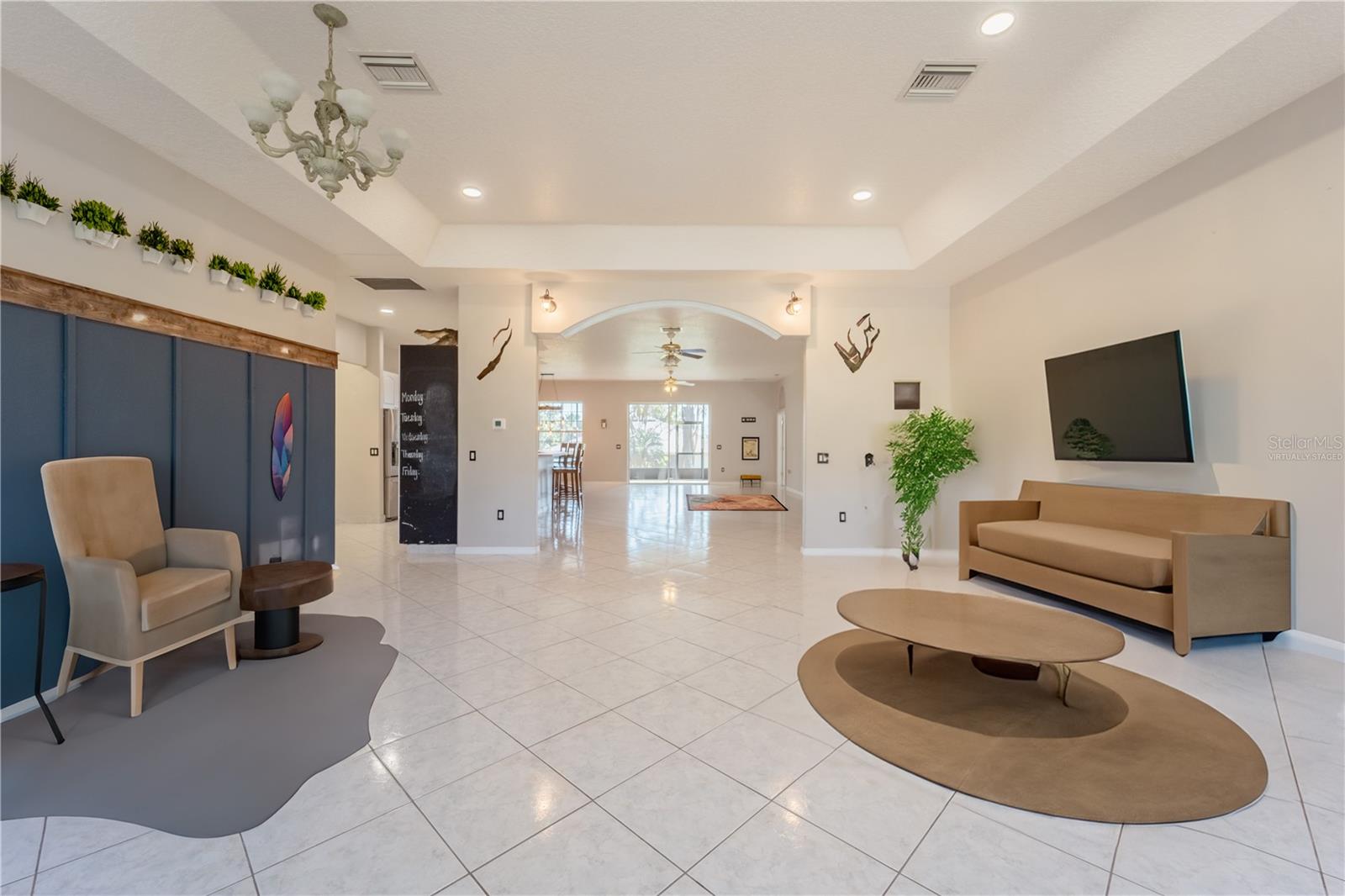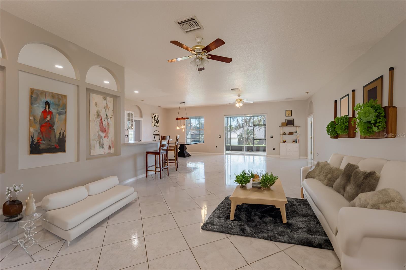 One or more photo(s) has been virtually staged. Welcome to all the space you need by the schools you love and the shopping, banks and restaurants that you'll have right at the end of your street! This 4 Bedroom 3 bath home is just what you need to grow your family and make this house your home, right here in Clermont Florida. Known for the chain of lakes, water sports, Choice of the Champions athletic events, growth and business potential, you can enjoy being a part of all that is new and happening. When it's time to come in from all the outdoor activities or a long day at work, you can sit, relax and enjoy the large open floor plan, with bedrooms at every corner, a kitchen with newer appliances and a breakfast bar that fits 4 stools. Let's not forget that 2 of the 4 bedrooms are large Ensuites that you can decorate to suit your most relaxing self. The double living and family room allows so many things to happen and everyone can have their own space doing it Bring all the artwork, with the abundance of walls you can hang your favorite pictures or family portraits. There is a room and space for everyone and a kitchen with PLENTY of CABINET SPACE to store all your favorite culinary secrets. For extra convenience, the washer/dryer is right behind you for those busy laundry days where you need way more hands than you have. Head outside to Barbeque and enjoy the screened in patio, which you can get to from both Ensuites, when you want to get some fresh air but not ready to immerse yourself in the Florida sunshine. The home has a newer roof (within the last 7 years), a new AC unit and handler 2023, and the septic tank was just cleaned out January of this year. The neighborhood streets are lined with beautiful oaks and convenient to everyday living. School bus stops are in the neighborhood and if you need a quick trip to the drugstore, it's at the end of the block. The home is located minutes from Highway 27 and whether you head north or south, you'll find a favorite Central Florida Destination. The white tile floors throughout and lots of windows allows for all the lighting you could hope for to brighten up any day. The main ensuite is off the kitchen on the East side of the home, with two very large walk in closets, a garden tub and walk in shower, and double vanity. The 2nd ensuite has a full bath for guests or set up as a home office or even a family entertainment area. The 3rd and fourth bedrooms share a full bath at the east corner of the home, in a private hallway, off the family room. This home has not one but two huge rooms to dive deep into your creative with and make it your happy place to enjoy and share. Fell like taking a walk, head to the bottom of the neighborhood, where you'll find one of the many beautiful views of Lake Louisa, one of our many beautiful lakes here in lake county. If you are looking for a home to call your own, We Have It and We Can Help You Make It Your Home. Call today for showing instructions.