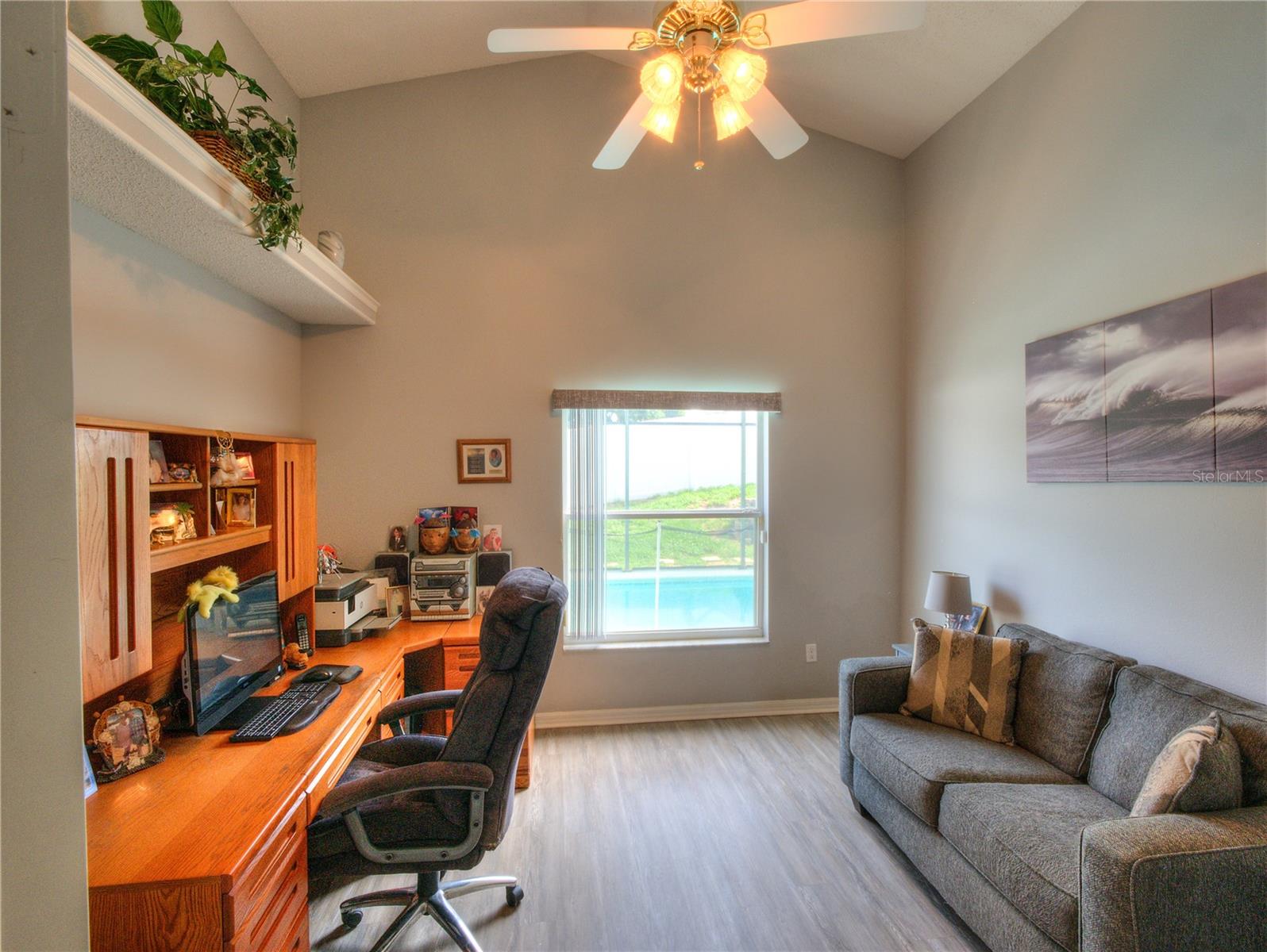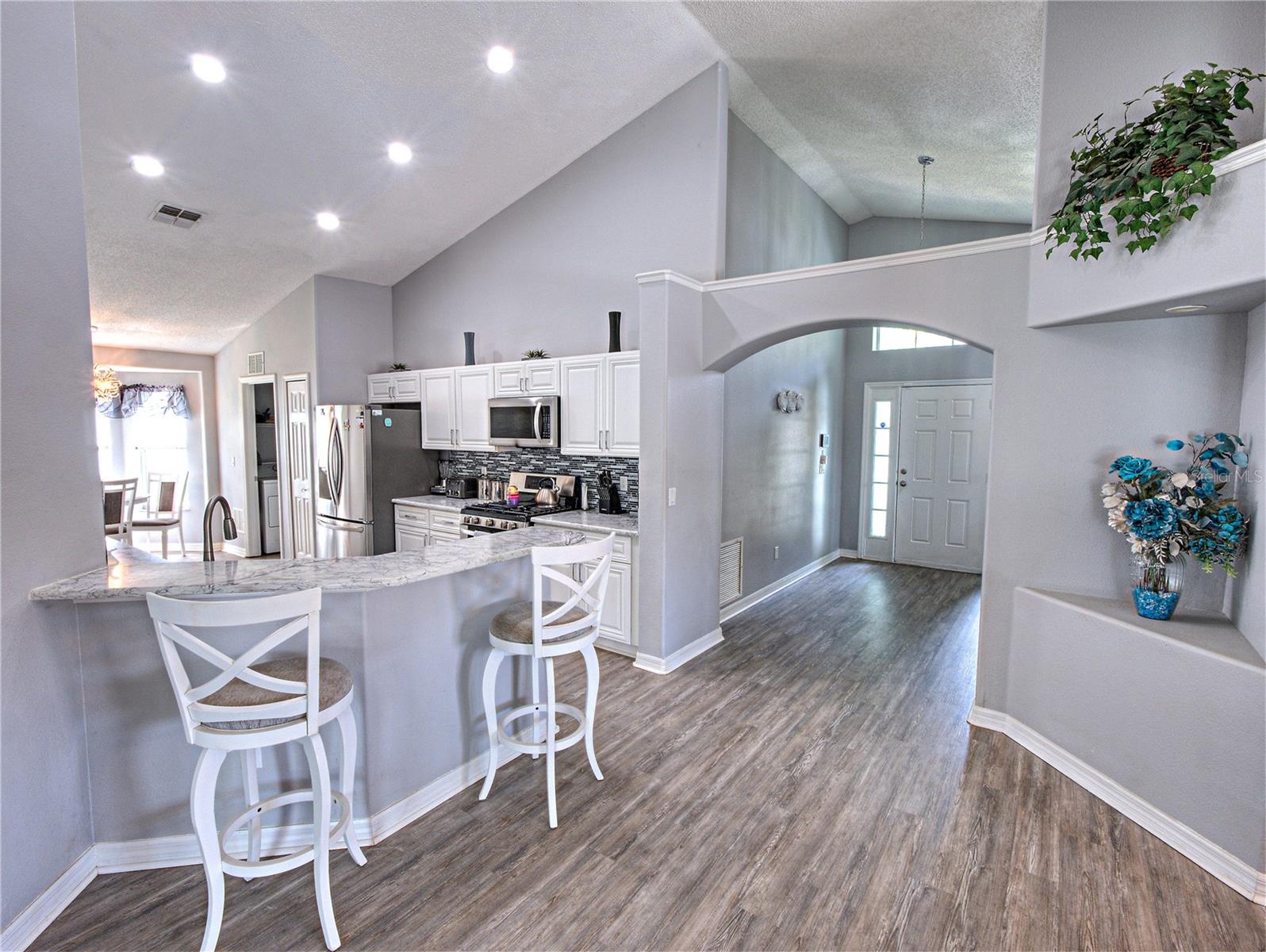 UPGRADES GALORE, AMAZING POOL HOME! This meticulously maintained property is a true gem. In 2019, the home underwent a comprehensive transformation, including new gutters, AC/furnace, kitchen cabinets, quartz countertops with backsplash, sink, faucet, stove, microwave and refrigerator, all appliances are natural gas. Luxury vinyl plank flooring throughout. The bathrooms were completely revamped with new showers, sinks, high toilets, and lighting. The entire interior of the house was also freshly painted. In 2020, a new roof was installed, and the exterior of the house received a fresh coat of paint. The following year, in 2021, the lanai screens were replaced, and the pool was resurfaced. The property continued to receive upgrades in 2022 with a new garage door, opener, and a new washing machine. This beautiful and well-maintained home features 3 bedrooms and 2 full baths, with the option to easily convert the den/study/office into a fourth bedroom. Situated in a highly convenient area of Clermont, on the Hospital Grid, the home is close to schools, a grocery stores, DO NOT MISS THIS INCREDIBLE POOL HOME!! (The pool deck was painted blue after the photo's were taken) Located in the most convenient area of Clermont, on the Hospital Grid, close to Schools, Grocery Stores, Hospitals, and other medical facilities, Restaurants and shopping are nearby. The Vinyl Fence in the backyard offers personal privacy for you.. I promise this home will not disappoint you. Close to Highway 50, US 27, and the Turnpike. MOVE-IN READY