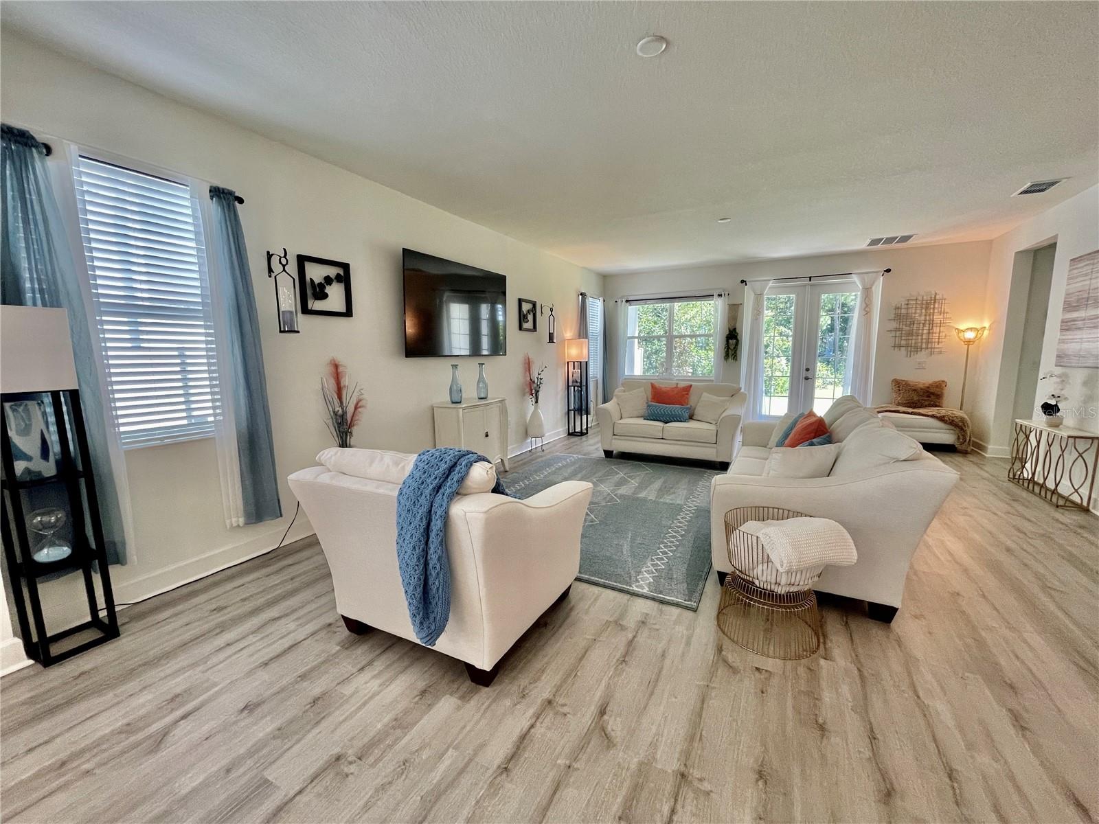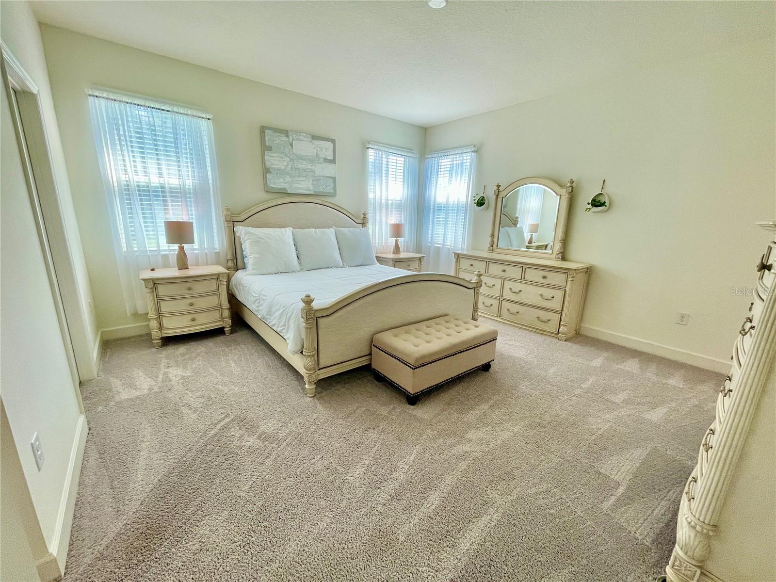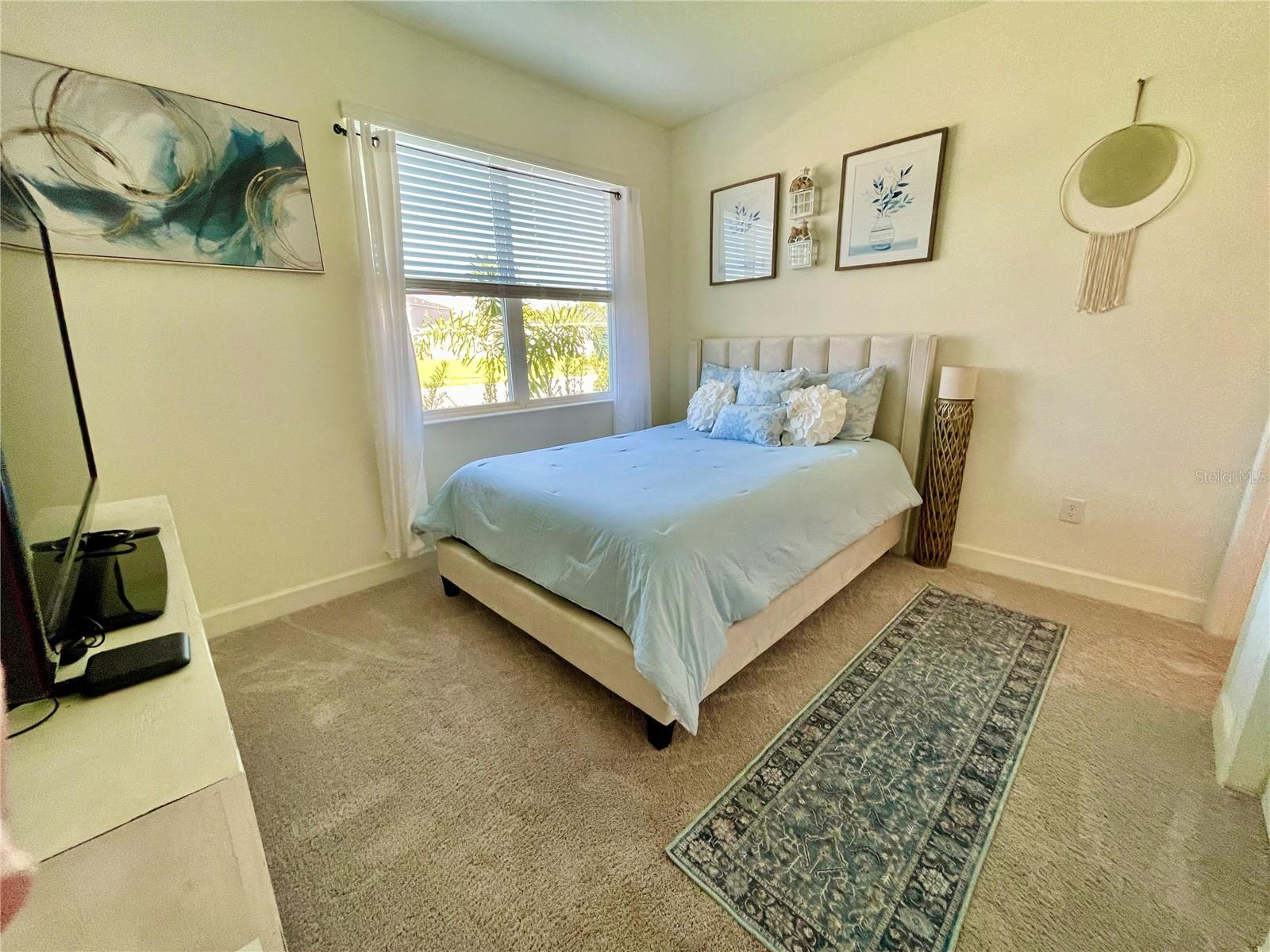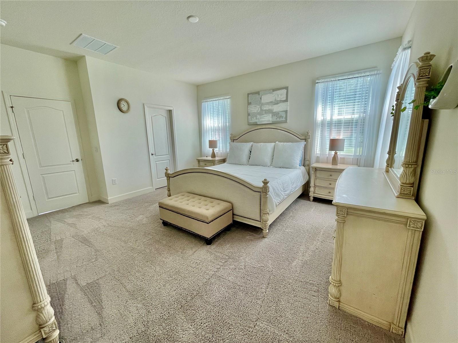 Welcome to this beautiful ranch-style home located in "The Sanctuary" community. This newly built property offers the luxury of modern construction without the inconvenience of a long wait. Constructed just two years ago, this immaculate 2022 property features 4 spacious bedrooms and 3 modern bathrooms, making it an ideal space for comfortable living. This gorgeous property features a spacious open floor plan with 9-foot ceilings, enhanced with stylish vinyl flooring. The modern and spacious kitchen provides ample cabinet storage, while the sleek granite countertops and stainless-steel appliances add a touch of sophistication to the space. The large island enhances the kitchen's functionality and provides an ideal space for meal preparation and casual dining. The exquisite primary suite is a tranquil oasis, boasting an opulent ensuite bathroom with dual sinks, a spacious walk-in shower, a luxurious garden tub, and a generously sized walk-in closet. The additional bedrooms are large and provide a cozy retreat for the entire family. The guest bedroom also has an attached bathroom for added convenience. Step outside through the elegant French doors onto the lanai and bask in the peaceful ambiance of the serene pond and lush green belt views, all while reveling in the privacy of having no rear neighbors. Conveniently located in the southern part of Clermont, this property offers easy access to various shopping and dining options, medical clinics, and hospitals. Additionally, it is only a few minutes away from the renowned Walt Disney World and Universal Studios, as well as the Turnpike and I-4. Eastern and Western Florida beaches are within a 1 ½ hours drive. The Sanctuary Community is putting the finishing touches on its fantastic array of amenities, including a state-of-the-art workout facility, a refreshing pool, a delightful tot lot, and a spacious dog park. It's everything you could ever want for a vibrant and active lifestyle! Don't miss out on the chance to make this extraordinary property your new home and experience the essence of relaxed and peaceful living!
