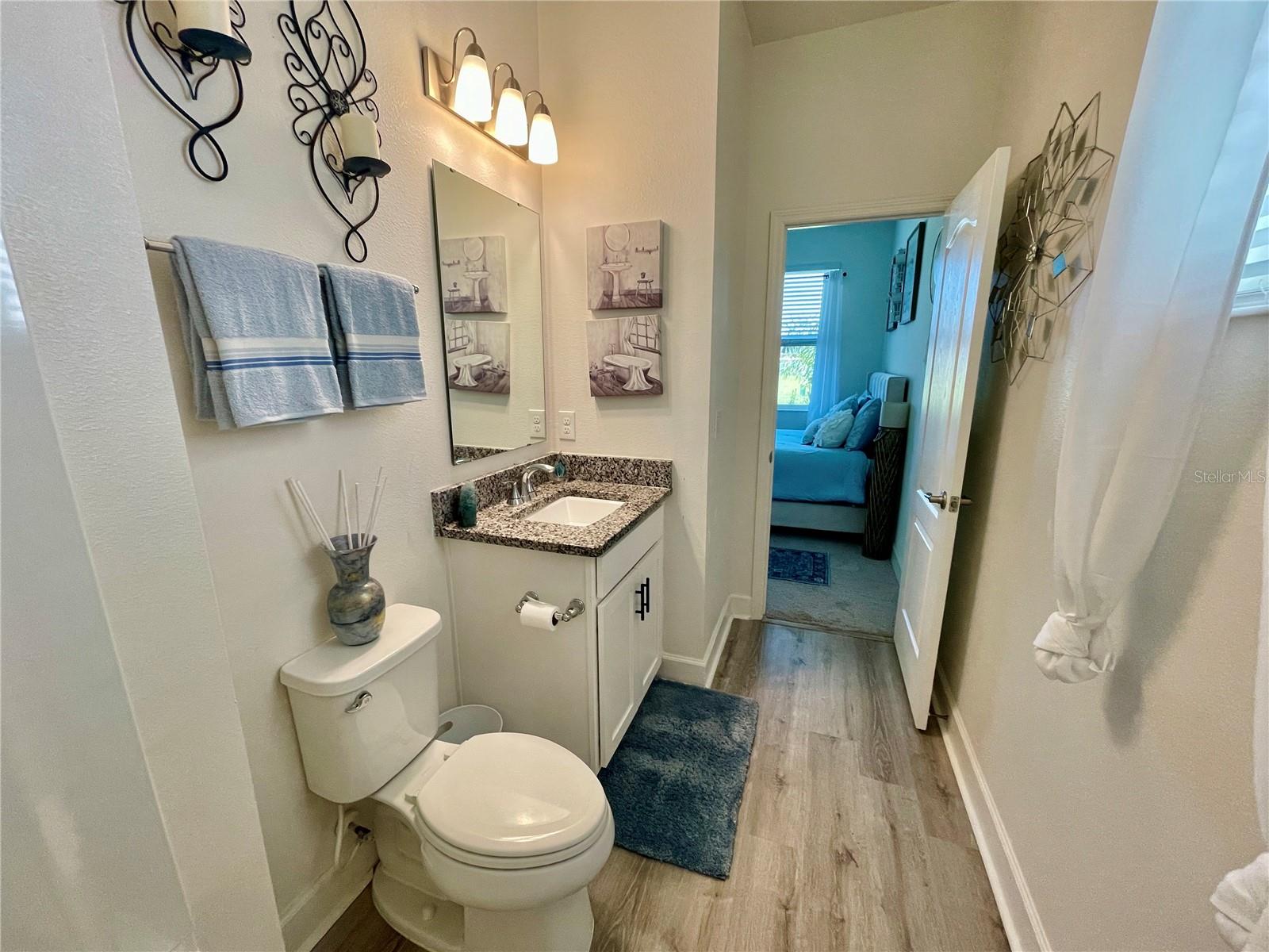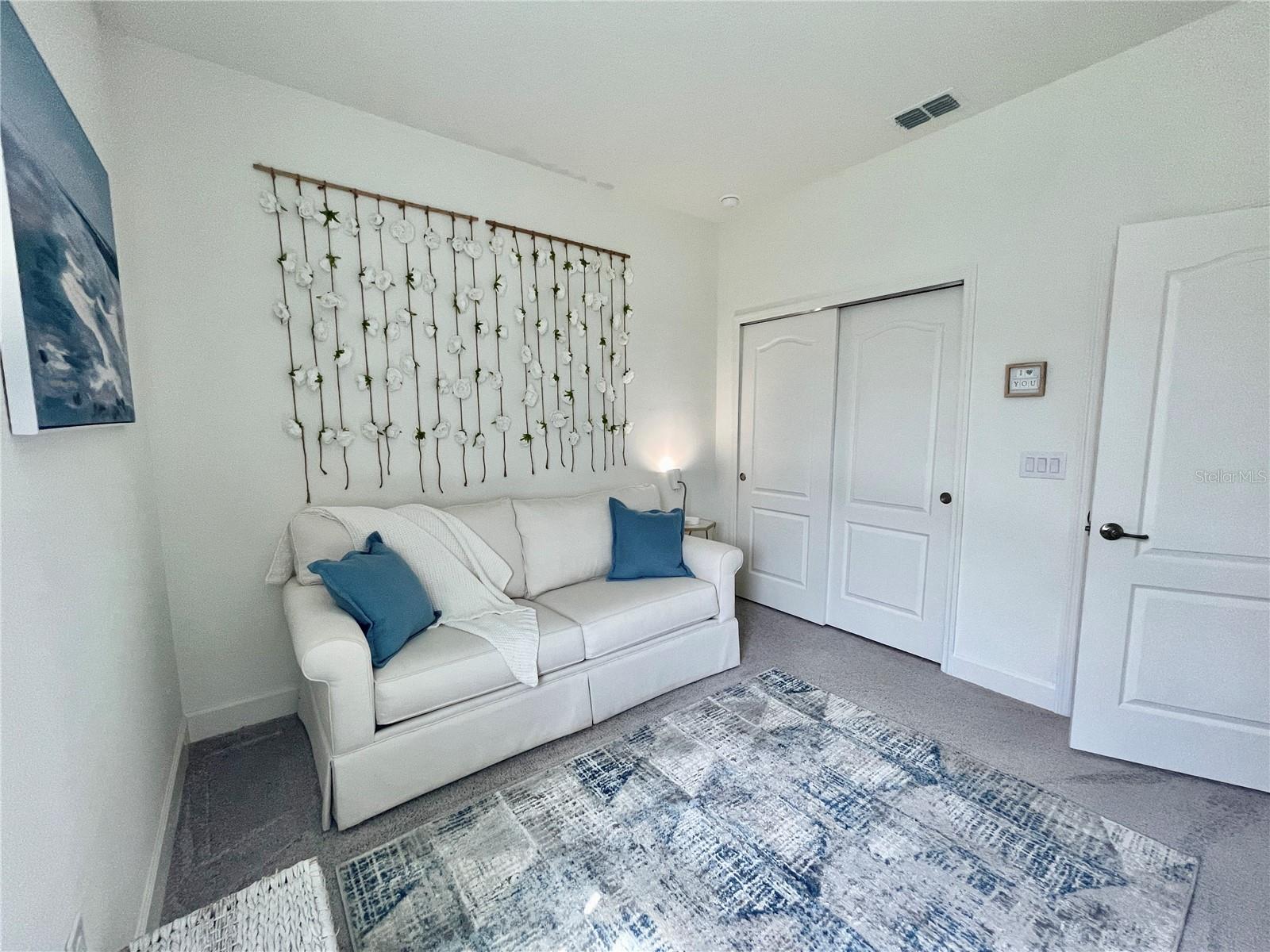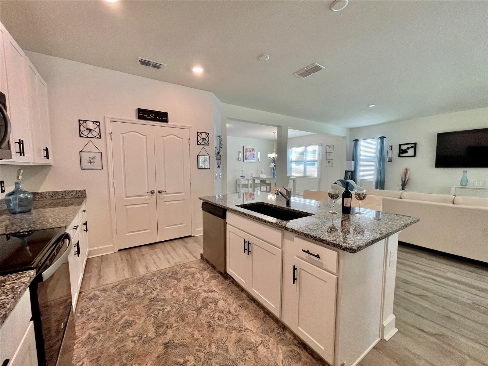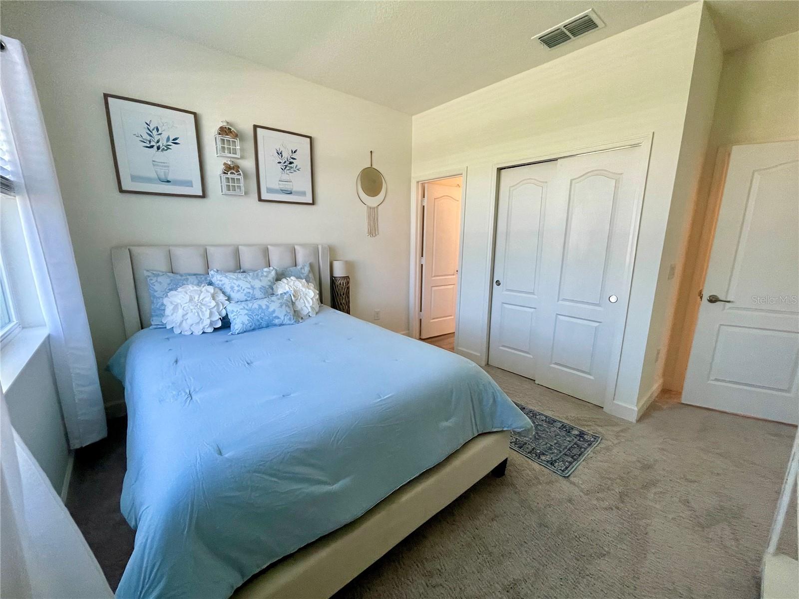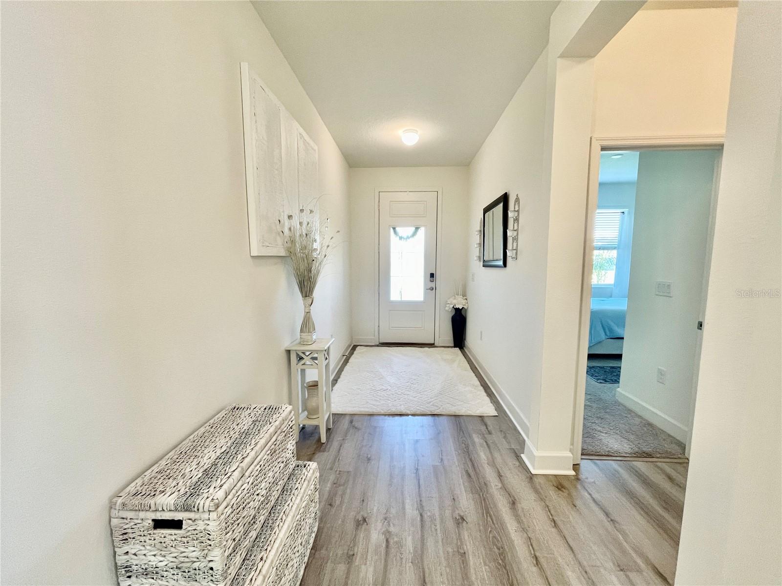 Welcome to this beautiful ranch-style home located in "The Sanctuary" community. This newly built property offers the luxury of modern construction without the inconvenience of a long wait. Constructed just two years ago, this immaculate 2022 property features 4 spacious bedrooms and 3 modern bathrooms, making it an ideal space for comfortable living. This gorgeous property features a spacious open floor plan with 9-foot ceilings, enhanced with stylish vinyl flooring. The modern and spacious kitchen provides ample cabinet storage, while the sleek granite countertops and stainless-steel appliances add a touch of sophistication to the space. The large island enhances the kitchen's functionality and provides an ideal space for meal preparation and casual dining. The exquisite primary suite is a tranquil oasis, boasting an opulent ensuite bathroom with dual sinks, a spacious walk-in shower, a luxurious garden tub, and a generously sized walk-in closet. The additional bedrooms are large and provide a cozy retreat for the entire family. The guest bedroom also has an attached bathroom for added convenience. Step outside through the elegant French doors onto the lanai and bask in the peaceful ambiance of the serene pond and lush green belt views, all while reveling in the privacy of having no rear neighbors. Conveniently located in the southern part of Clermont, this property offers easy access to various shopping and dining options, medical clinics, and hospitals. Additionally, it is only a few minutes away from the renowned Walt Disney World and Universal Studios, as well as the Turnpike and I-4. Eastern and Western Florida beaches are within a 1 ½ hours drive. The Sanctuary Community is putting the finishing touches on its fantastic array of amenities, including a state-of-the-art workout facility, a refreshing pool, a delightful tot lot, and a spacious dog park. It's everything you could ever want for a vibrant and active lifestyle! Don't miss out on the chance to make this extraordinary property your new home and experience the essence of relaxed and peaceful living!