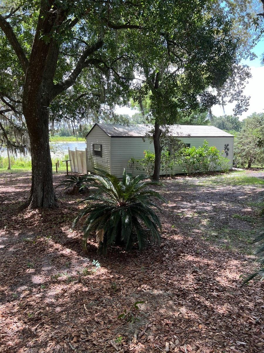 LAKE FRONT MANUFACTURED HOME WITH NO HOA! Located in the beautiful Hills of Clermont with frontage on School House Lake, which is a 60-acre private lake. This 2-bedroom, 2-bathroom home features an open floor plan with vaulted ceilings, split bedrooms, inside laundry with storage closets. The home was updated 10 years ago with laminate flooring in the kitchen, ceramic tile, appliances. The primary bedroom has a large en- suite with separate sinks, tub with shower and built in cabinets. The living room has a rear exterior door leading onto the 8x36 foot deck and 13x41 foot shed, overlooking the lake views and tree canopies. This property is perfect for a year-round home or a weekend getaway. Close proximity to Downtown Clermont, area attractions, restaurants, fitness trails, lakes, parks, hospitals and shopping.