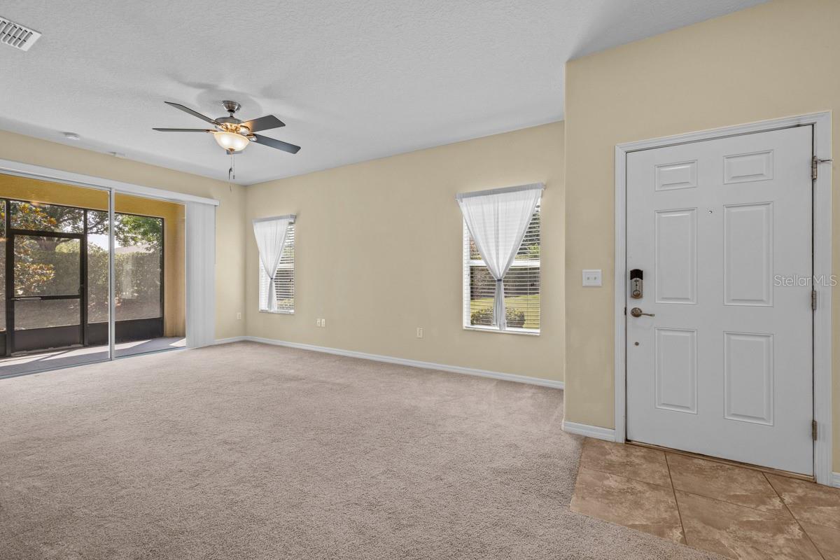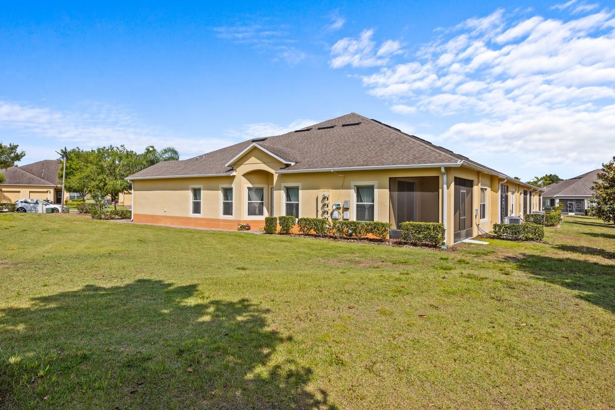 Come live the resort style life you deserve! You willl love the Mediterranean-inspired design of Heritage Hills! Step into this immaculate 2 bedroom, 2 bath villa-home and bring your imagination to convert the flex room into a music room, craft room, game room, hobby room, you name it. Bathed in sunlight, this end-unit is nestled far from access roads and road noise. Enjoy a large private back area where you can relax and enjoy your evening in the enclosed screened lanai or morning coffee with a fall breeze. The kitchen offers granite counters, ample cabinet space and pantry as well as stainless steel appliances. Laundry facilities are provided in house. Baths are tiled; the master bedroom ensuite bathroom has a walk-in shower and a convenient massive walk-in closet. The HVAC unit is just 2 years old and under warranty. This is 55+ active community with a plethora of amenities and services. The community offers a heated pool and spa, tennis court, pickleball, basketball courts, shuffleboard, bocce courts and more! The clubhouse houses a fitness center, a grand ballroom, a craft room, and even a library. Weekly entertainment and activities are offered, and there are many common-interest groups to choose from. Let’s not forget the 5-mile walking trail perfect for your daily walks or runs. The HOA also includes lawn and shrub maintenance, annual mulching, and painting of exterior every 6 years and meticulous maintenance of the common areas. Conveniently located within minutes from major highways, yet private. Supermarkets, restaurants, shopping centers and medical facilities are nearby. Clermont Downtown is a short drive where one can enjoy its shops, breweries, restaurants, farmer’s markets, bicycle paths and waterfront activities. Access to Florida’s beaches is convenient; and it’s a short distance to Disney and Orlando attractions!
