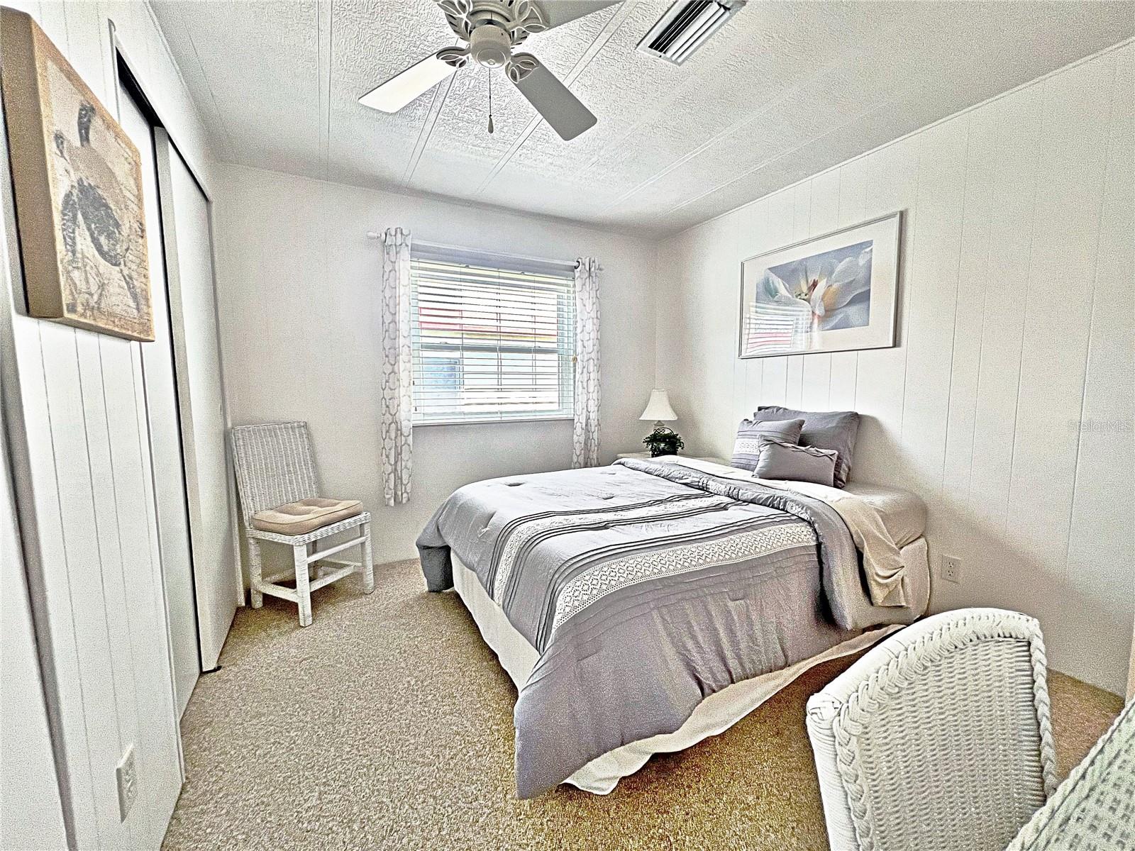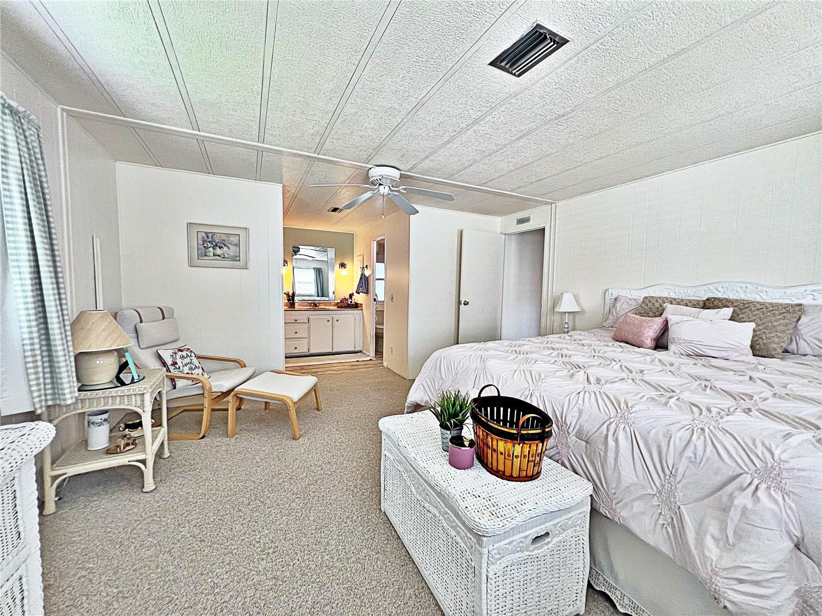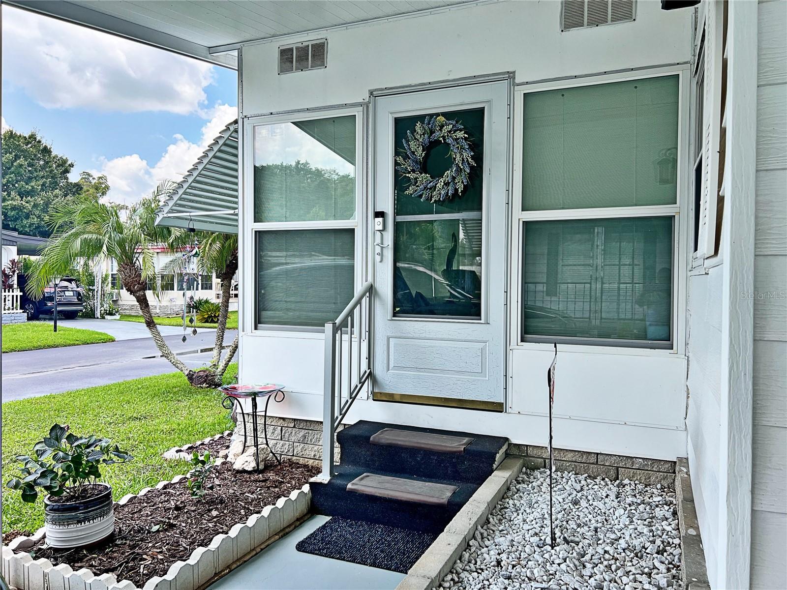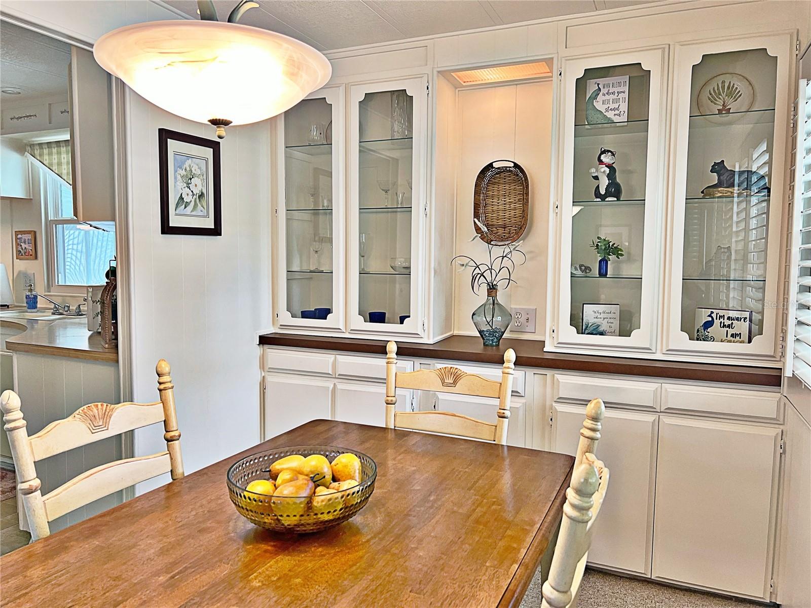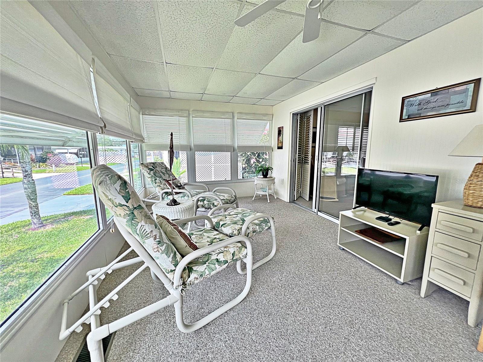 This FURNISHED 2/2 with carport is MOVE-In ready. This home is located in Emerald Lakes. Welcome guests into your home through the front covered and enclosed Lanai or enjoy coffee and conversing with friends on the front Lanai. The sliding glass doors guide you into the main home and into the Living room. The whole house features PlANTATION shutters. The Living room is off the side entry and Dining room and is very open. The Dining room has BUILT IN cabinets to display your wares of choice or use as a Buffet. The Kitchen has BAR top seating. The Primary European. Has a en suite bathroom with walk shower, oversized linen closet and walk in closet. There is a side screened in area to enjoy the outside and entertain guests. Laundry is located outside in its own laundry room with a sink. The AC was replaced in 2023, Water heater in 2024. This Lot has SHARE OWNERSHIP and the HOA includes water, cable, internet, clubhouse, shuffle board, community pool and hot tub, boat ramp, boat dock lease options and so much more.