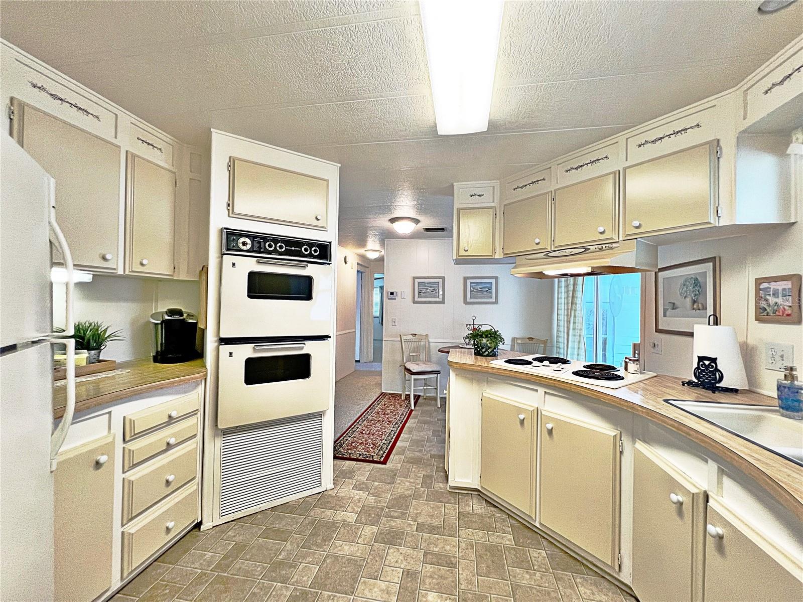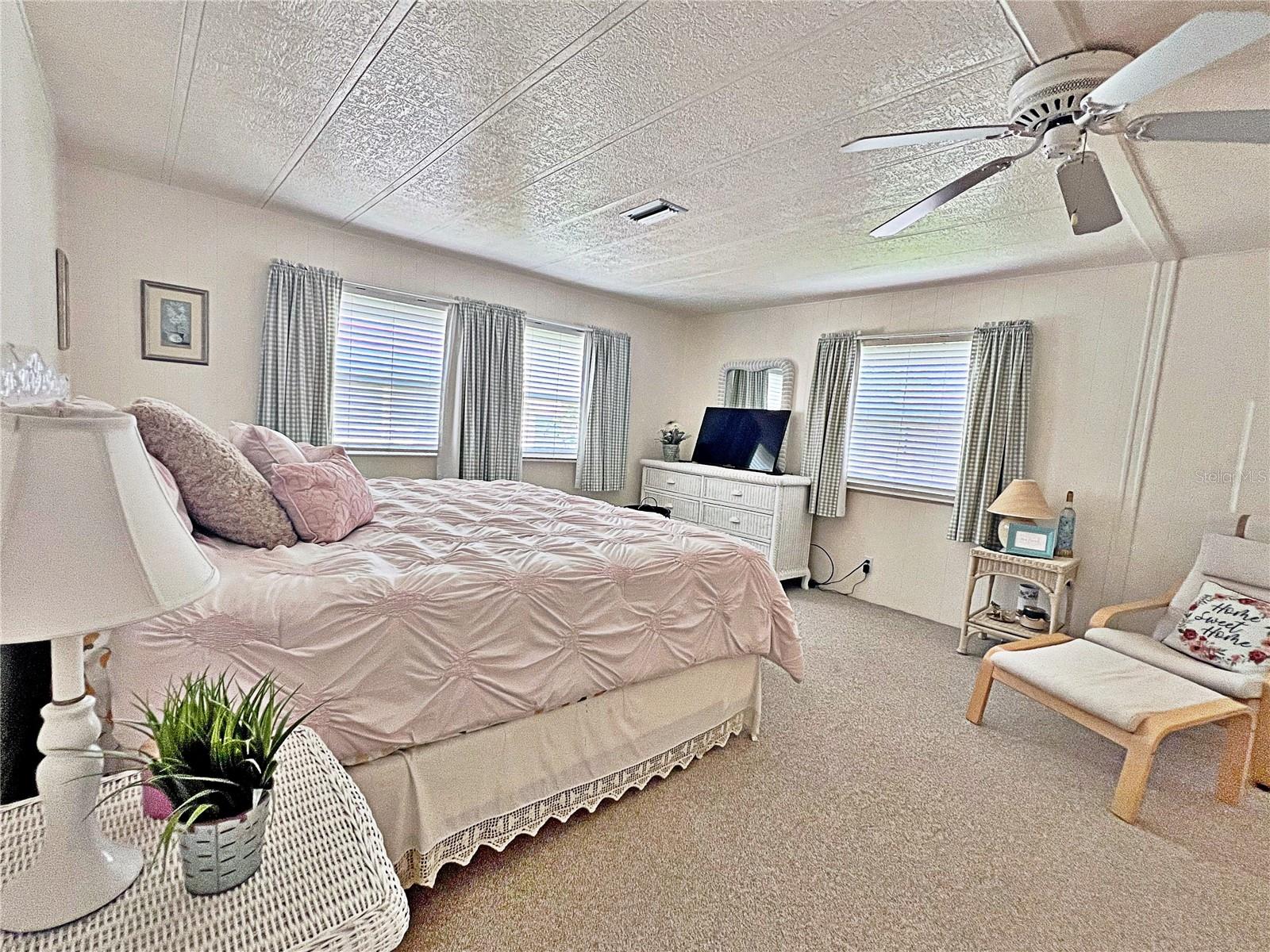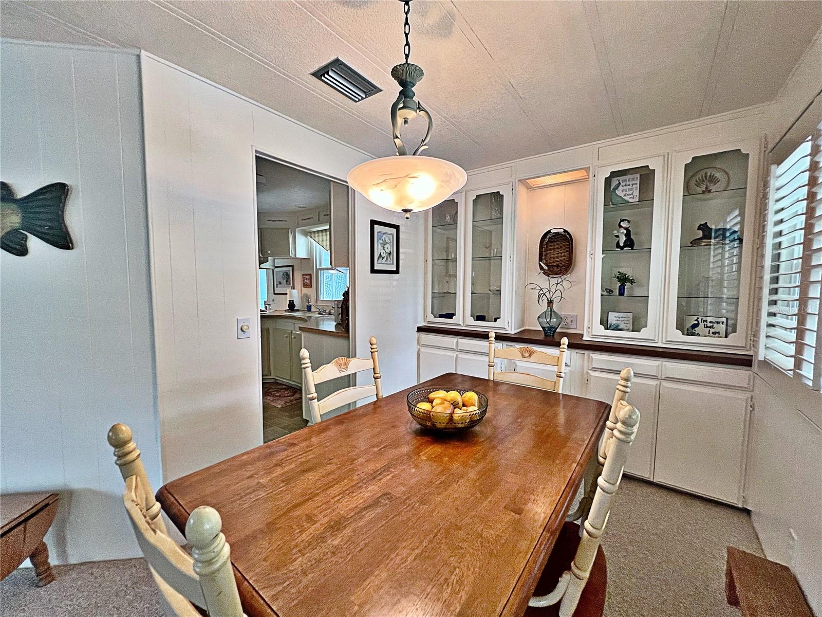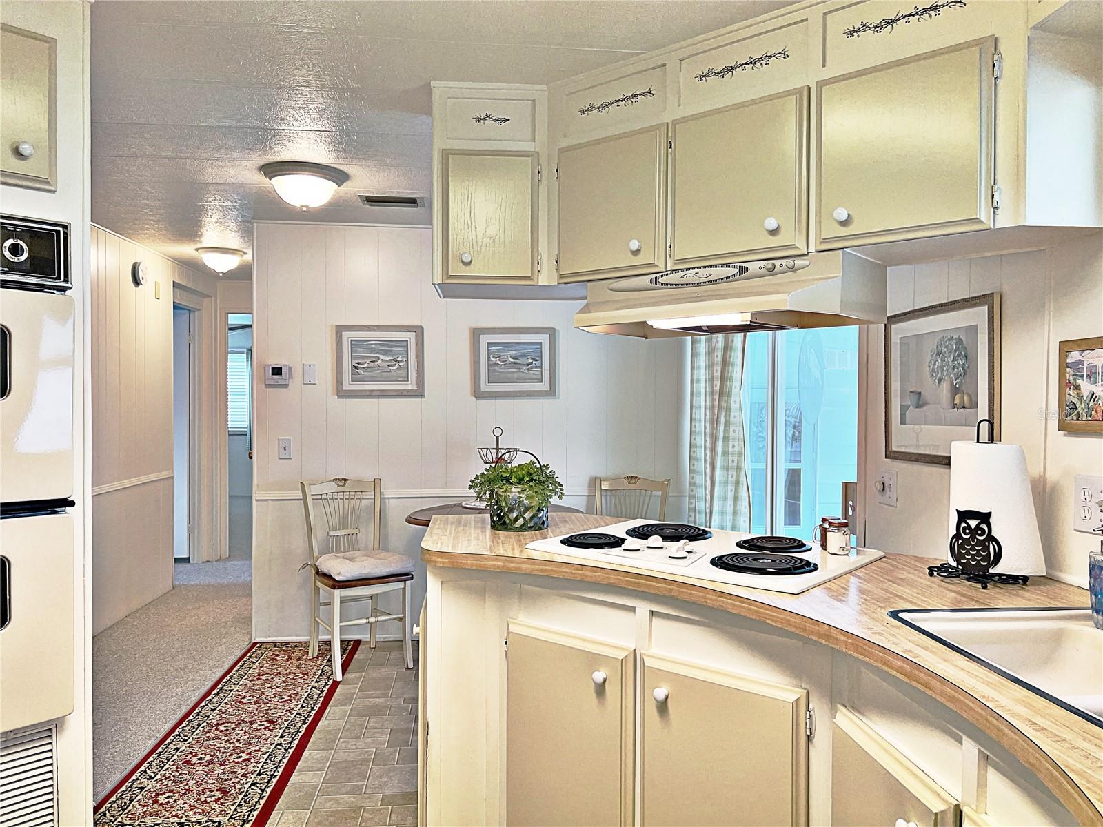 This FURNISHED 2/2 with carport is MOVE-In ready. This home is located in Emerald Lakes. Welcome guests into your home through the front covered and enclosed Lanai or enjoy coffee and conversing with friends on the front Lanai. The sliding glass doors guide you into the main home and into the Living room. The whole house features PlANTATION shutters. The Living room is off the side entry and Dining room and is very open. The Dining room has BUILT IN cabinets to display your wares of choice or use as a Buffet. The Kitchen has BAR top seating. The Primary European. Has a en suite bathroom with walk shower, oversized linen closet and walk in closet. There is a side screened in area to enjoy the outside and entertain guests. Laundry is located outside in its own laundry room with a sink. The AC was replaced in 2023, Water heater in 2024. This Lot has SHARE OWNERSHIP and the HOA includes water, cable, internet, clubhouse, shuffle board, community pool and hot tub, boat ramp, boat dock lease options and so much more.