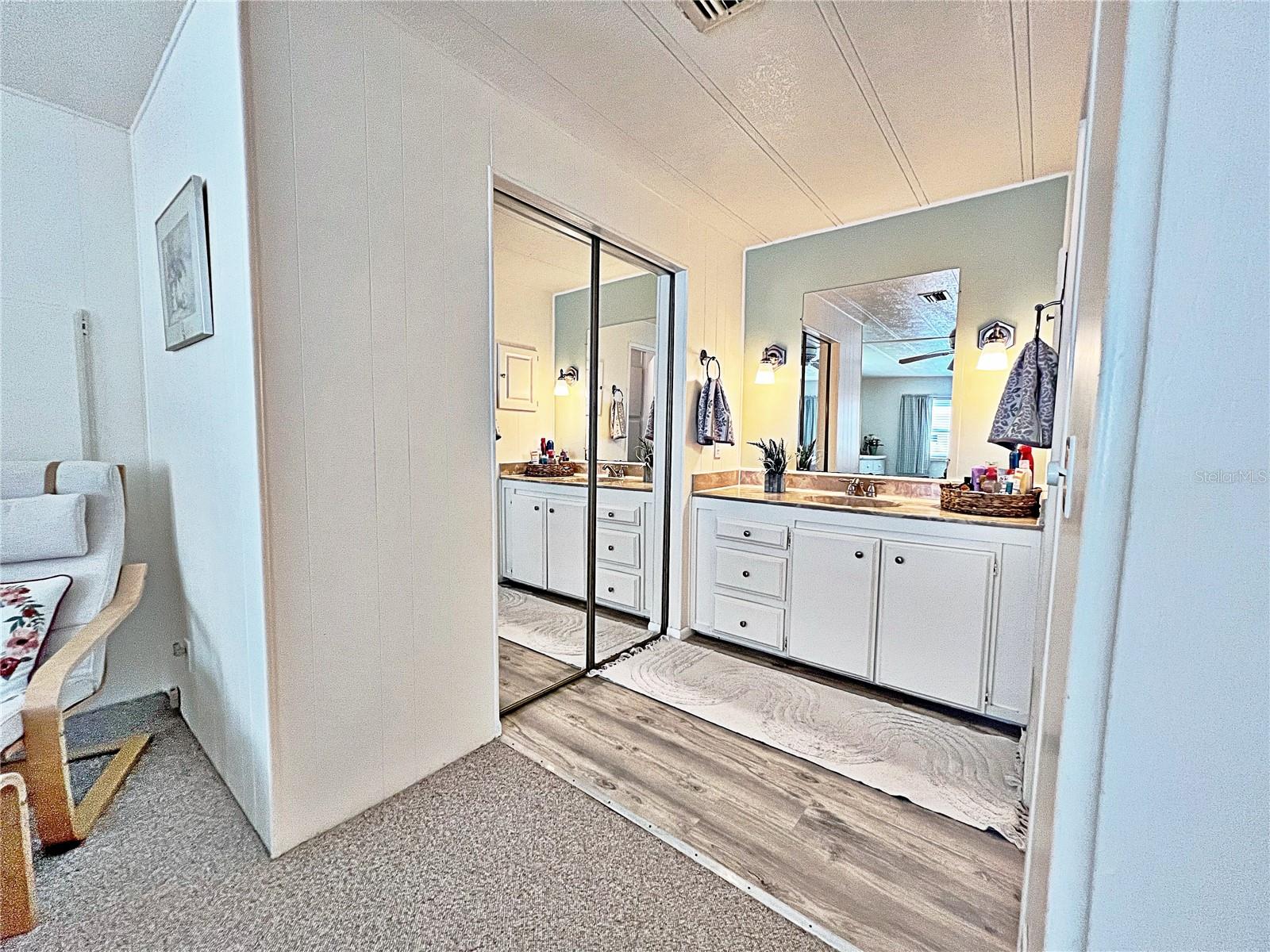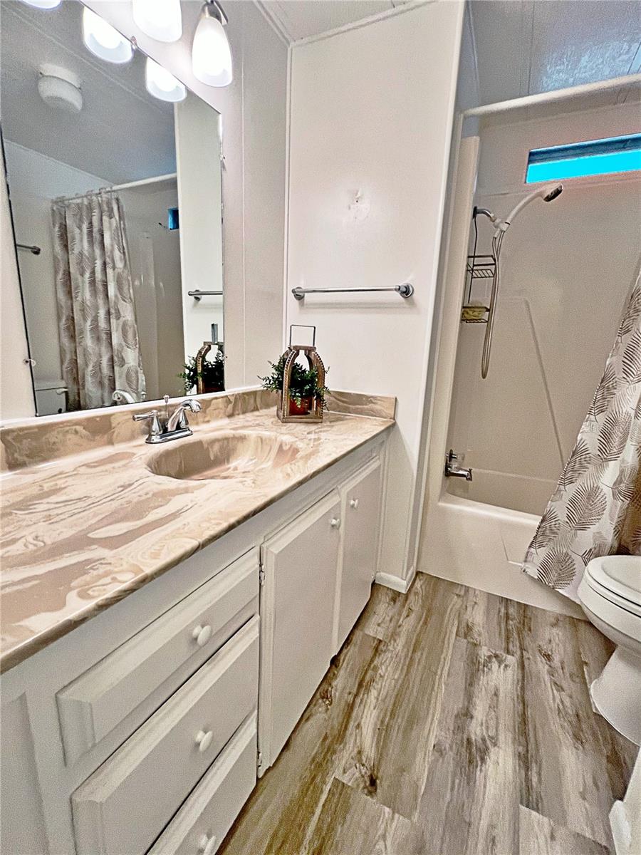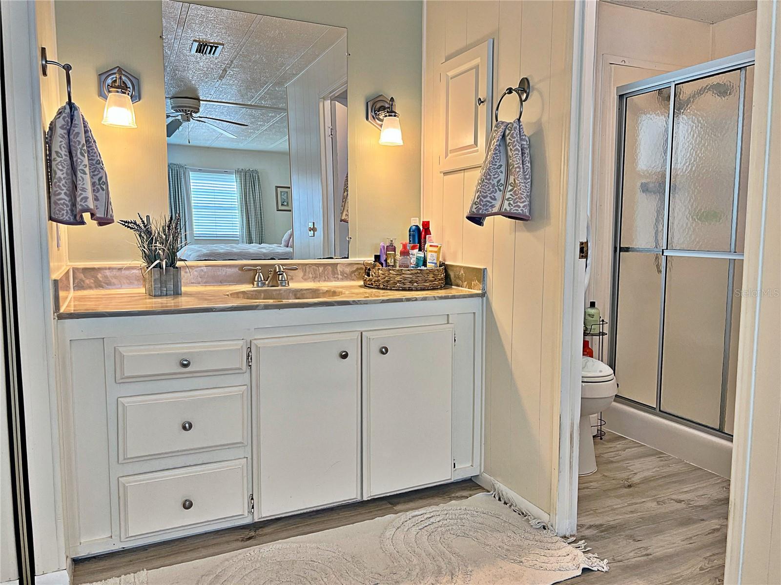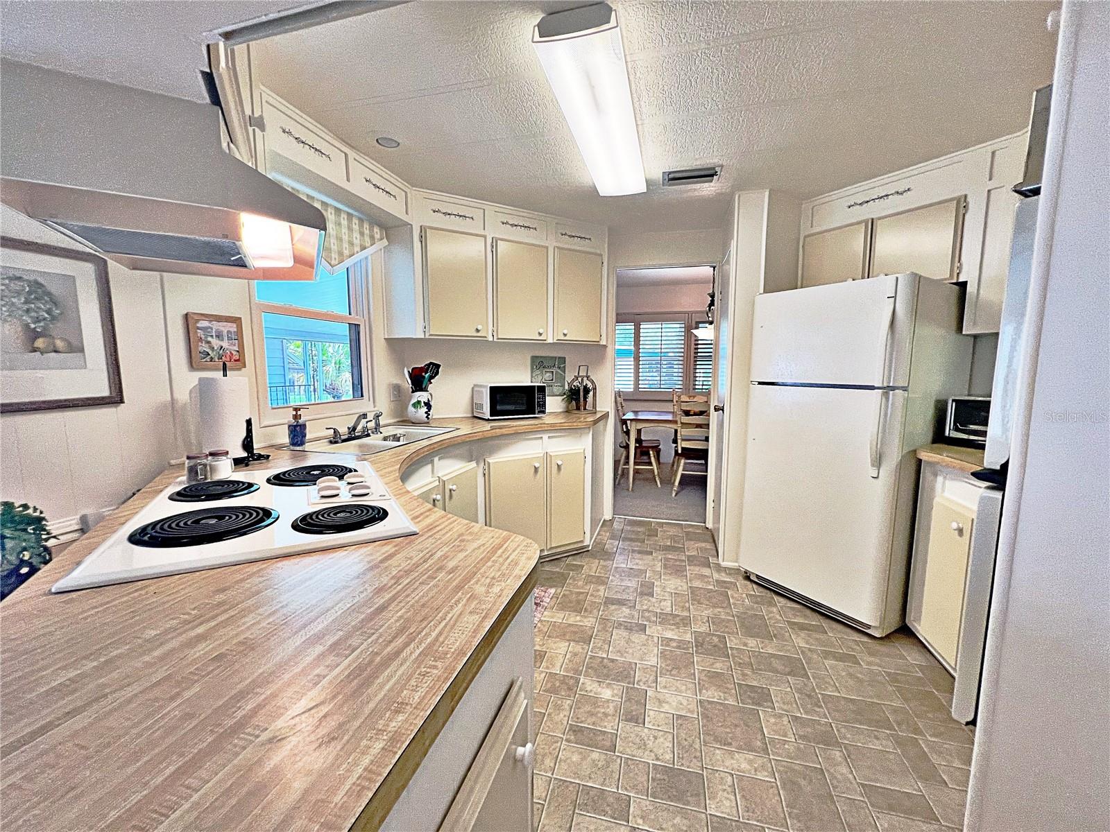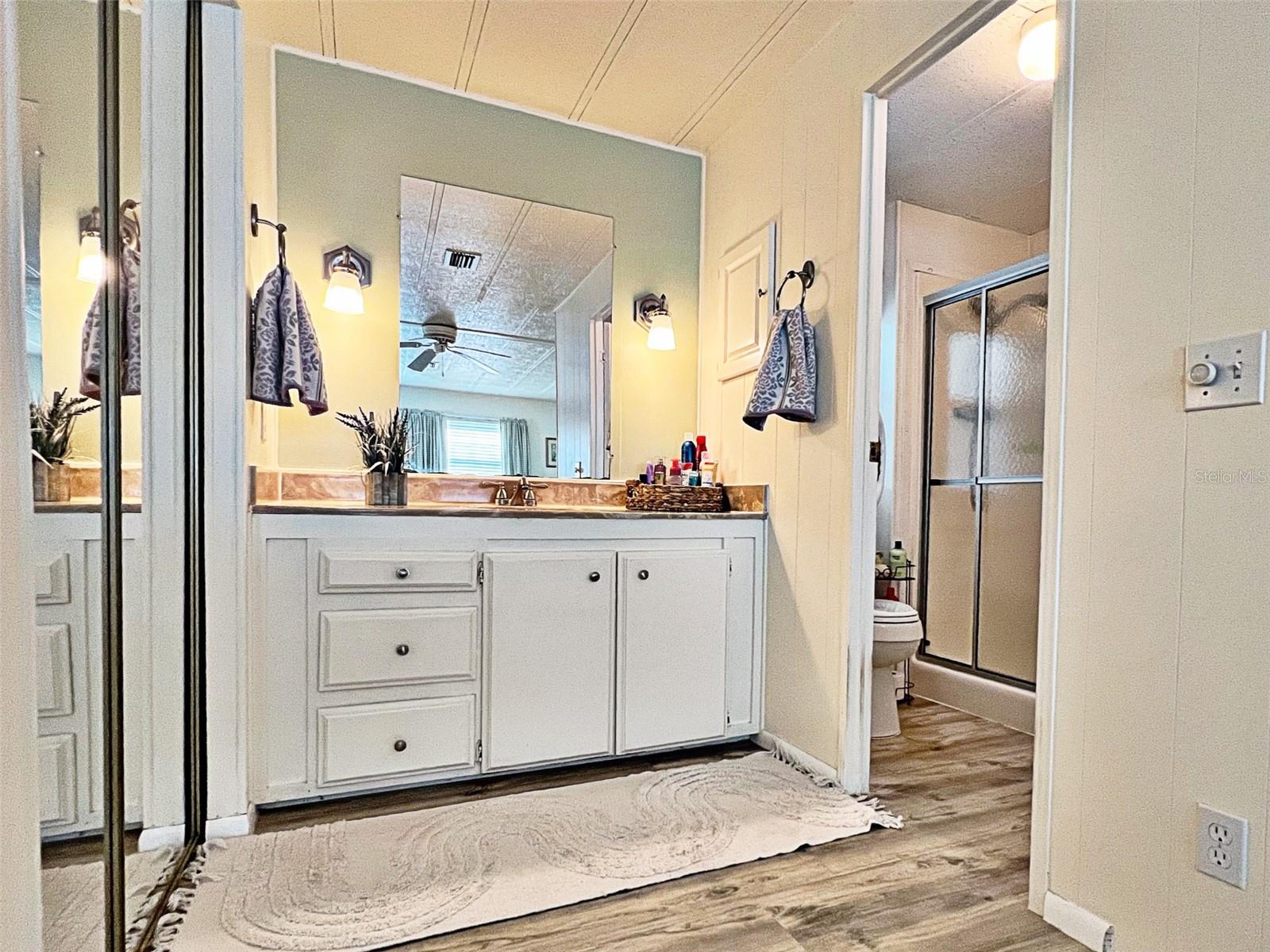 This FURNISHED 2/2 with carport is MOVE-In ready. This home is located in Emerald Lakes. Welcome guests into your home through the front covered and enclosed Lanai or enjoy coffee and conversing with friends on the front Lanai. The sliding glass doors guide you into the main home and into the Living room. The whole house features PlANTATION shutters. The Living room is off the side entry and Dining room and is very open. The Dining room has BUILT IN cabinets to display your wares of choice or use as a Buffet. The Kitchen has BAR top seating. The Primary European. Has a en suite bathroom with walk shower, oversized linen closet and walk in closet. There is a side screened in area to enjoy the outside and entertain guests. Laundry is located outside in its own laundry room with a sink. The AC was replaced in 2023, Water heater in 2024. This Lot has SHARE OWNERSHIP and the HOA includes water, cable, internet, clubhouse, shuffle board, community pool and hot tub, boat ramp, boat dock lease options and so much more.