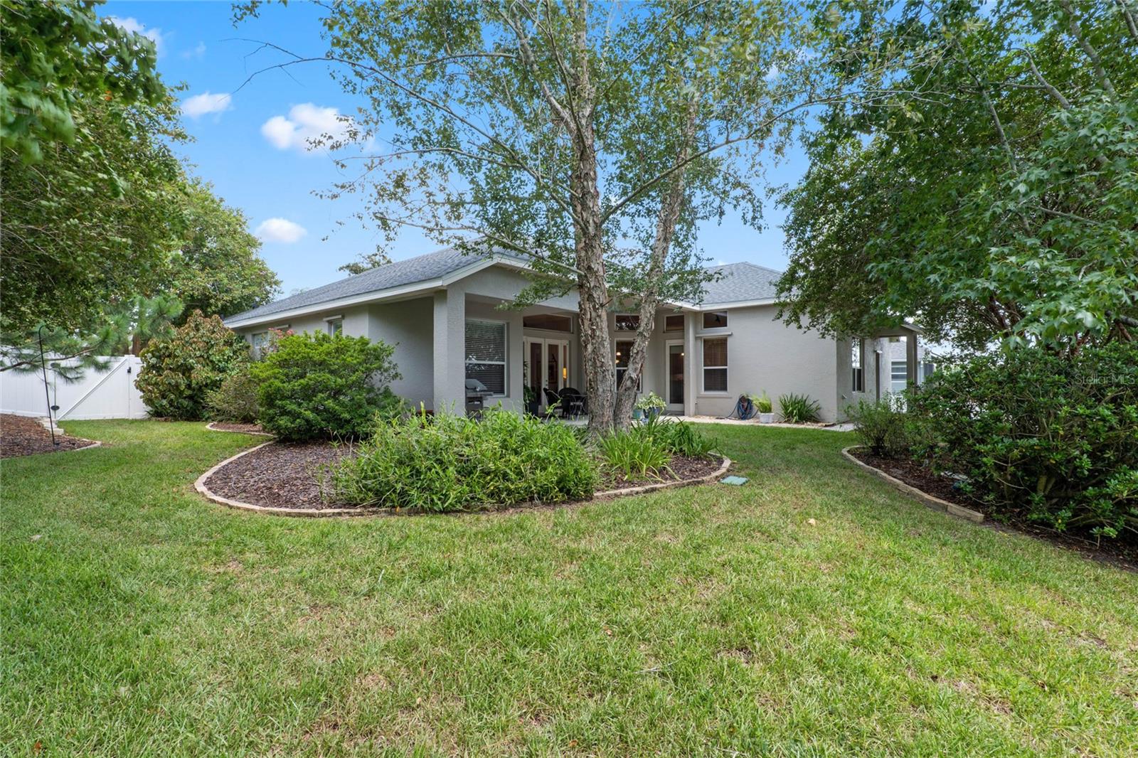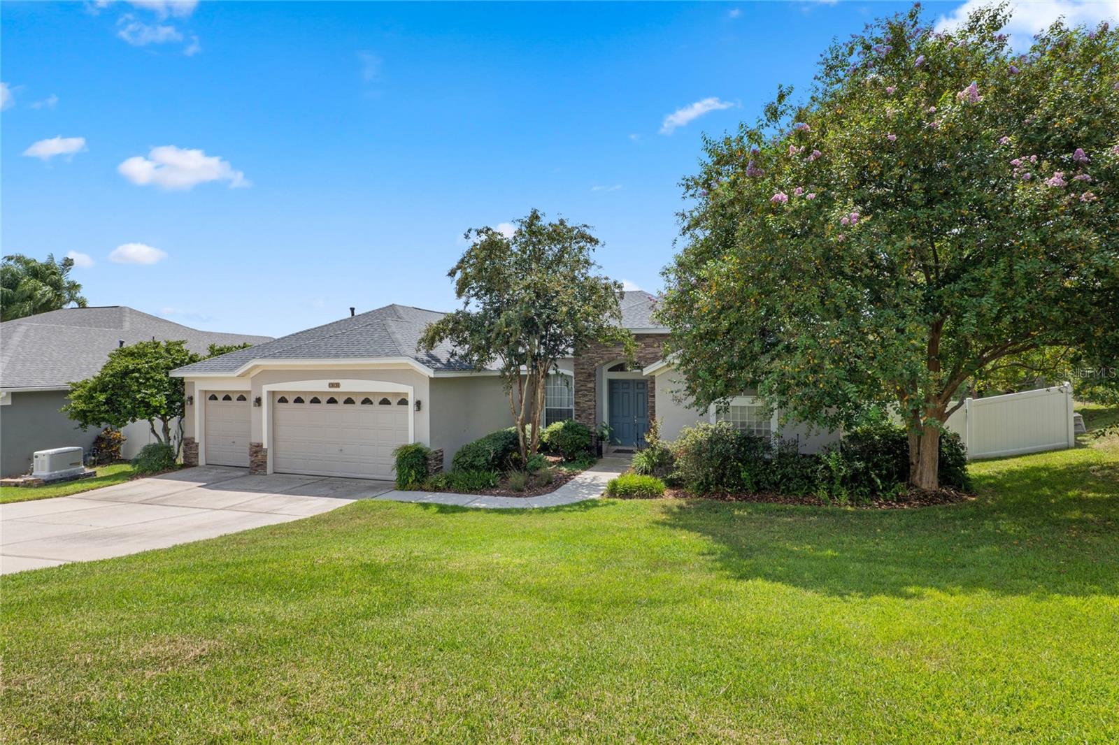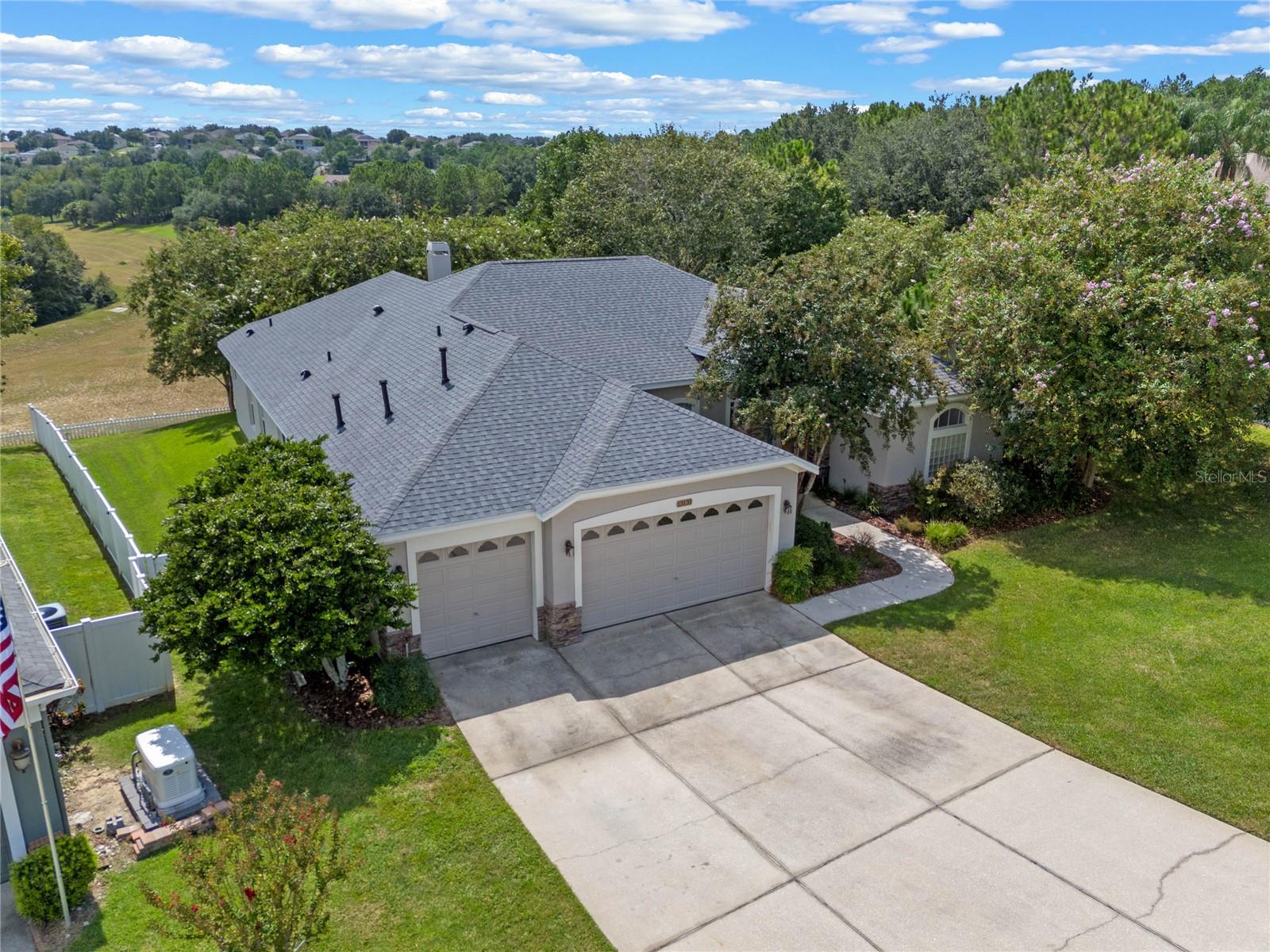 One or more photo(s) has been virtually staged. This single-story 2763 sf home is the Redwood II model, an upgraded model only available in the last phases of the development. Sitting on a premium water view .34 acre lot with no rear neighbors, it brings modern convenient living amidst the natural beauty. The roof was replaced and upgraded in 2020, the exterior was painted in 2022 and the water heater was replaced in 2023. New carpet was installed in 2024 and HVAC was replaced in 2016. There are two separate heating and cooling systems so that you can control the heating and cooling in the primary suite separately from the rest of the house. The heat-reflecting roof underlayment (radiant barrier) was a construction upgrade to increase energy efficiency for heating and cooling. Enjoy fast and secure internet with hard-wired ethernet access to all bedrooms and the family room. Hip roof construction and full window and door storm mitigation/shutters add protection and peace of mind in the event of tropical weather. The clear sections of the aluminum shutter installation are polycarbonate panels, designed and certified to have the same level of protection as the other panels, but allowing light to the inside of the house. It is a great experience to be able to see out versus having all the windows solidly covered. When fully installed, the system protects all windows, doorways, and the patio. The current owner enjoys discounted homeowner’s insurance for these features. A 22KW whole-house natural gas generator powers the whole house, including both HVAC systems in the event of a power failure. A custom-designed corner fireplace with a raised hearth and imported midnight slate adds charm to the living room. The windows in this house were specially sized and placed so that you can enjoy a calming view of Lost Lake from every bedroom and living space. An oversized glass block window brings ample natural light to the primary suite bathroom, which has a spacious walk-in shower, a premium soaking tub, separate vanities, and a private water closet. The kitchen features a dual fuel range that provides the control of having gas stove top burners with the steady even temperature of electricity in the three-rack oversized oven. The kitchen has multiple pull-out drawers and shelves for plenty of storage. Thoughtfully designed, made-to-order cabinetry is finished with crown molding. You can set the mood with abundant customized lighting features throughout the home such as dimmable fixtures in the kitchen nook, kitchen, and dining room, above and under cabinet lighting, well-placed recessed lighting in the kitchen, family room, and primary bedroom, and even holiday outlets in the exterior soffits. The exterior features enhanced rockwork and an extra wide entrance walkway, a six-car driveway, and a 3 car garage that add a distinctive touch to the home exterior. Mature landscaping was designed to create a calming space that blends with the natural beauty around you while also providing cooling afternoon shade for the house. Landscaping lighting highlights the architecture and landscape for a dramatic look at night. So many features were well thought out in this home that there are too many to list. Community amenities include a beautiful Outdoor Pool, Recreation Area, Tennis Court, and a Tot Lot for young ones to enjoy! If living in a home where the details matter is important to you, then welcome home!