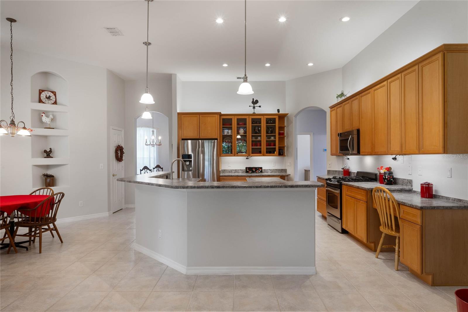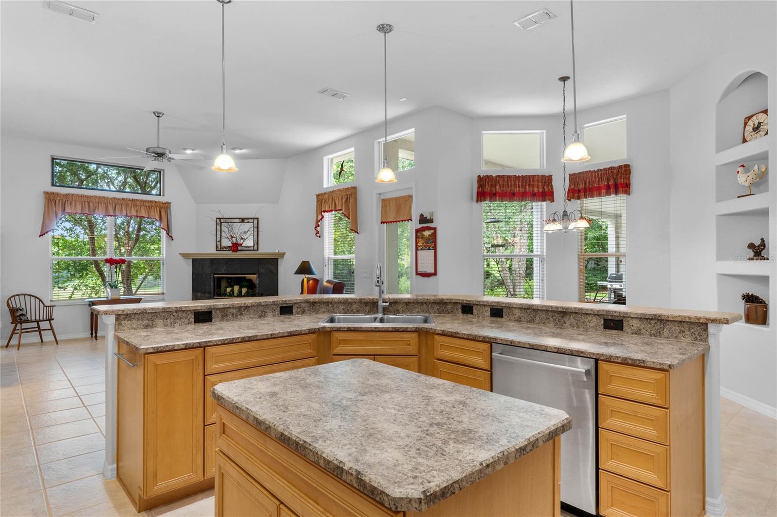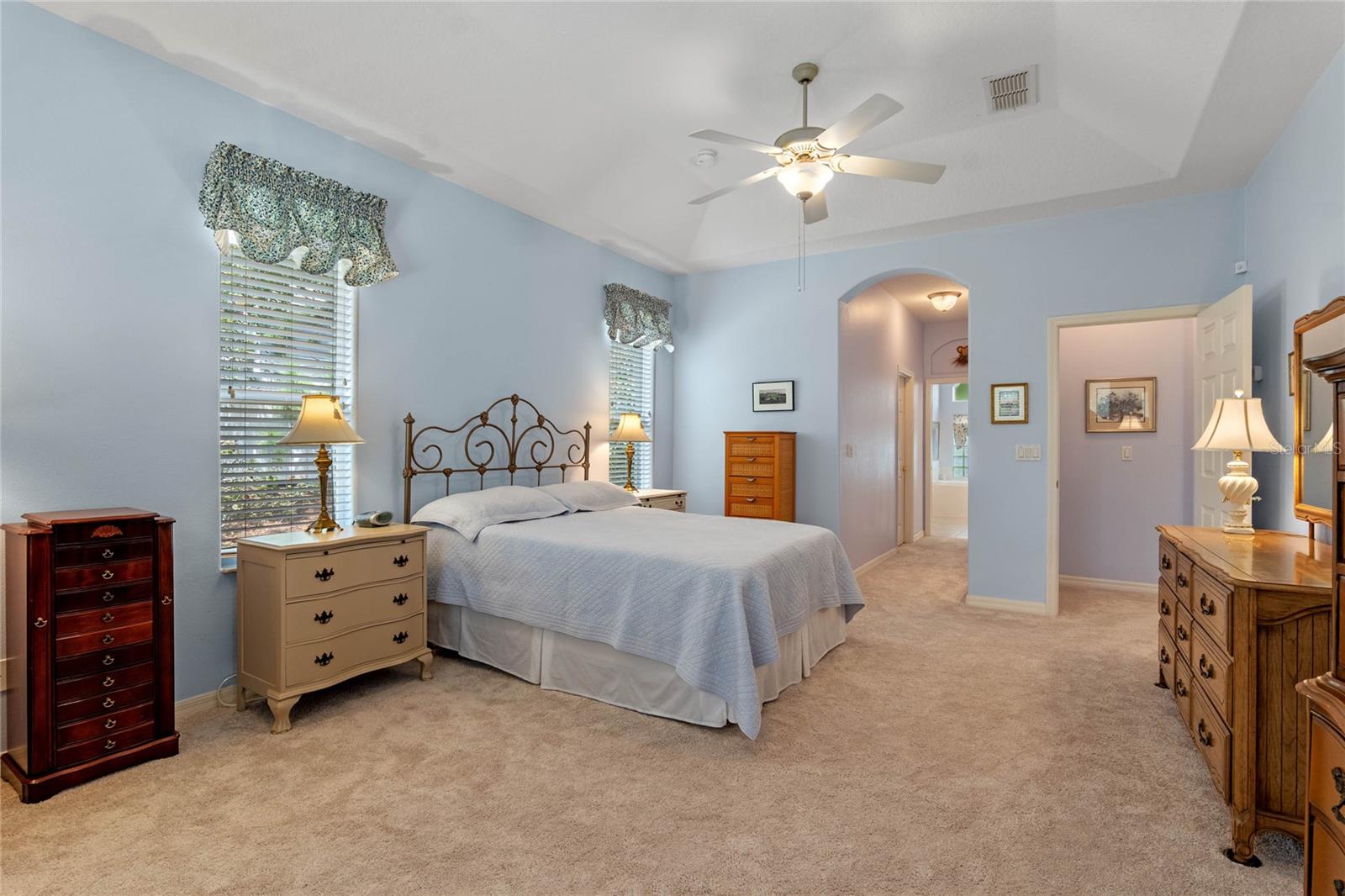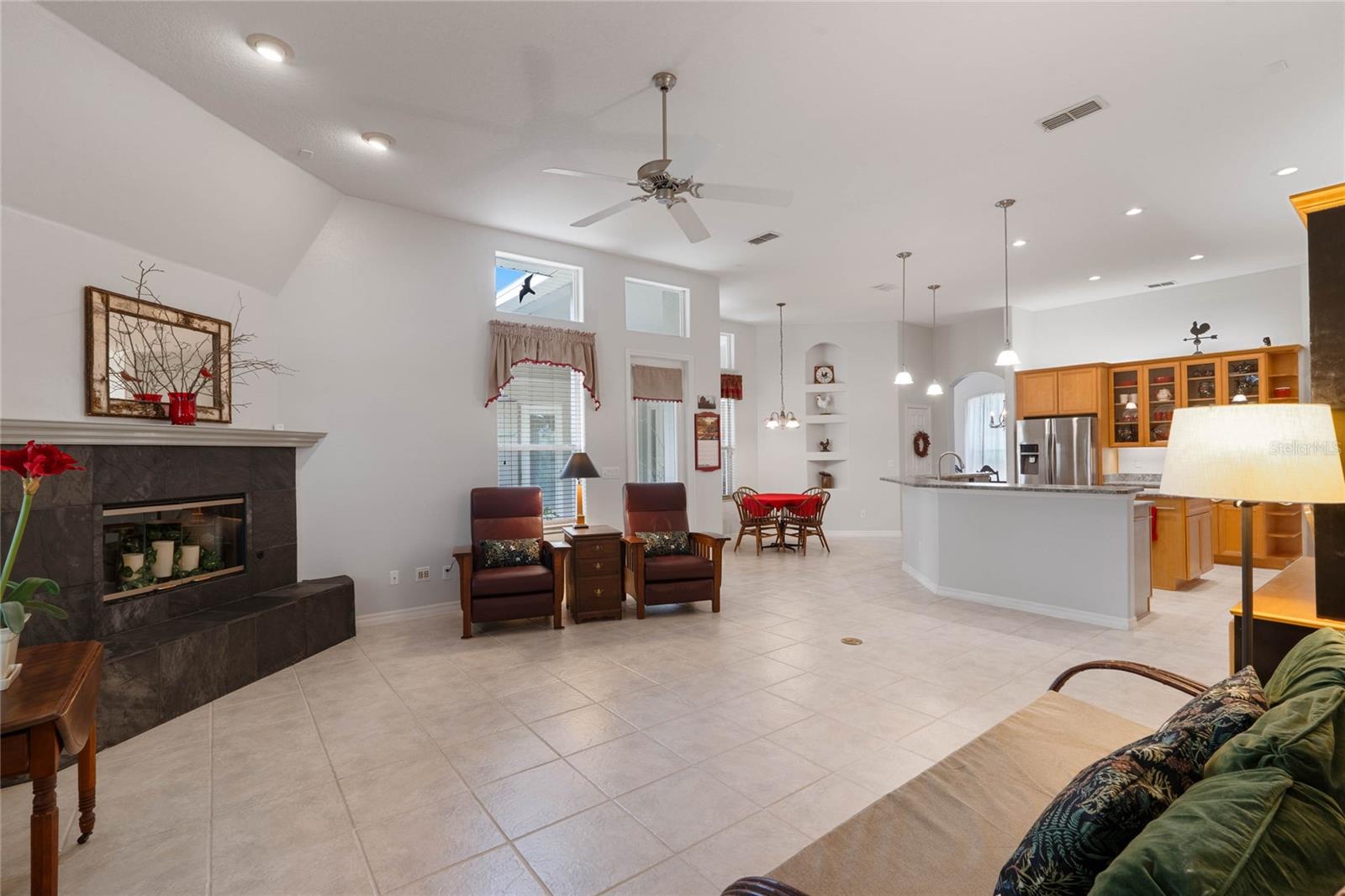 One or more photo(s) has been virtually staged. This single-story 2763 sf home is the Redwood II model, an upgraded model only available in the last phases of the development. Sitting on a premium water view .34 acre lot with no rear neighbors, it brings modern convenient living amidst the natural beauty. The roof was replaced and upgraded in 2020, the exterior was painted in 2022 and the water heater was replaced in 2023. New carpet was installed in 2024 and HVAC was replaced in 2016. There are two separate heating and cooling systems so that you can control the heating and cooling in the primary suite separately from the rest of the house. The heat-reflecting roof underlayment (radiant barrier) was a construction upgrade to increase energy efficiency for heating and cooling. Enjoy fast and secure internet with hard-wired ethernet access to all bedrooms and the family room. Hip roof construction and full window and door storm mitigation/shutters add protection and peace of mind in the event of tropical weather. The clear sections of the aluminum shutter installation are polycarbonate panels, designed and certified to have the same level of protection as the other panels, but allowing light to the inside of the house. It is a great experience to be able to see out versus having all the windows solidly covered. When fully installed, the system protects all windows, doorways, and the patio. The current owner enjoys discounted homeowner’s insurance for these features. A 22KW whole-house natural gas generator powers the whole house, including both HVAC systems in the event of a power failure. A custom-designed corner fireplace with a raised hearth and imported midnight slate adds charm to the living room. The windows in this house were specially sized and placed so that you can enjoy a calming view of Lost Lake from every bedroom and living space. An oversized glass block window brings ample natural light to the primary suite bathroom, which has a spacious walk-in shower, a premium soaking tub, separate vanities, and a private water closet. The kitchen features a dual fuel range that provides the control of having gas stove top burners with the steady even temperature of electricity in the three-rack oversized oven. The kitchen has multiple pull-out drawers and shelves for plenty of storage. Thoughtfully designed, made-to-order cabinetry is finished with crown molding. You can set the mood with abundant customized lighting features throughout the home such as dimmable fixtures in the kitchen nook, kitchen, and dining room, above and under cabinet lighting, well-placed recessed lighting in the kitchen, family room, and primary bedroom, and even holiday outlets in the exterior soffits. The exterior features enhanced rockwork and an extra wide entrance walkway, a six-car driveway, and a 3 car garage that add a distinctive touch to the home exterior. Mature landscaping was designed to create a calming space that blends with the natural beauty around you while also providing cooling afternoon shade for the house. Landscaping lighting highlights the architecture and landscape for a dramatic look at night. So many features were well thought out in this home that there are too many to list. Community amenities include a beautiful Outdoor Pool, Recreation Area, Tennis Court, and a Tot Lot for young ones to enjoy! If living in a home where the details matter is important to you, then welcome home!