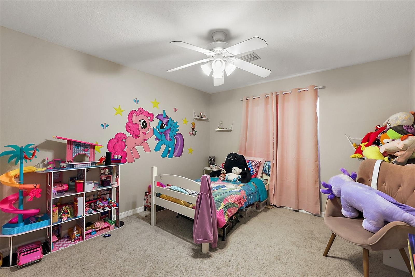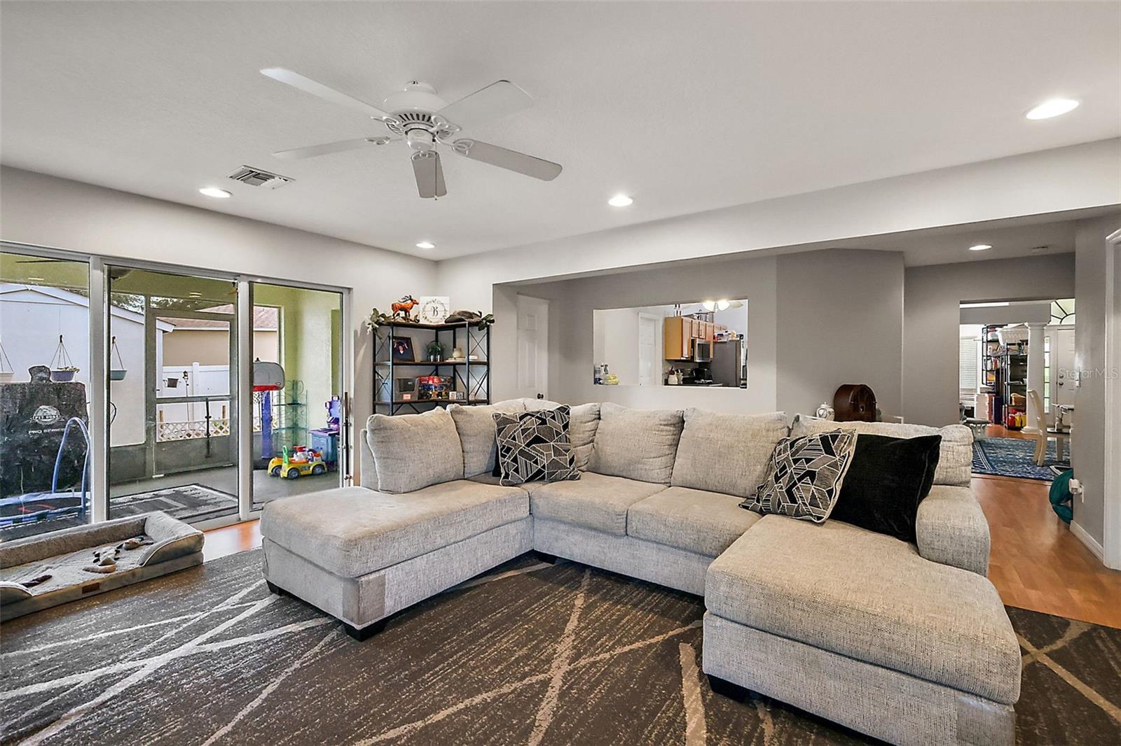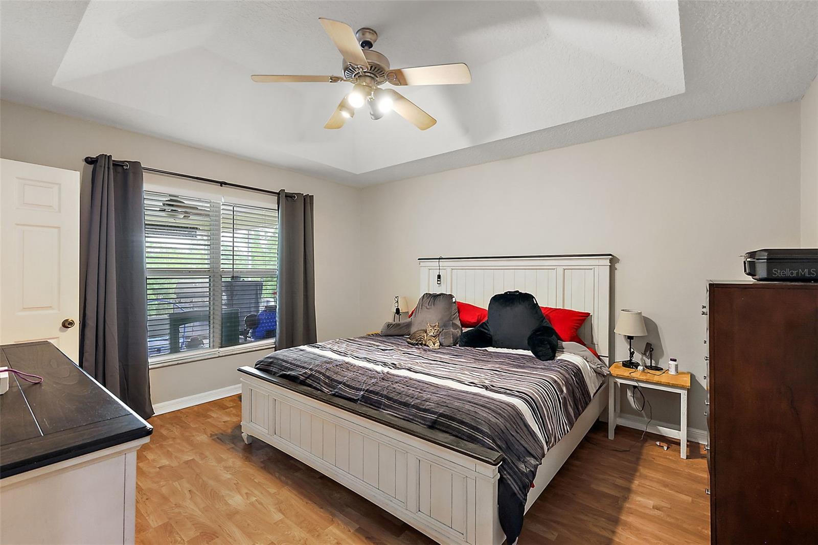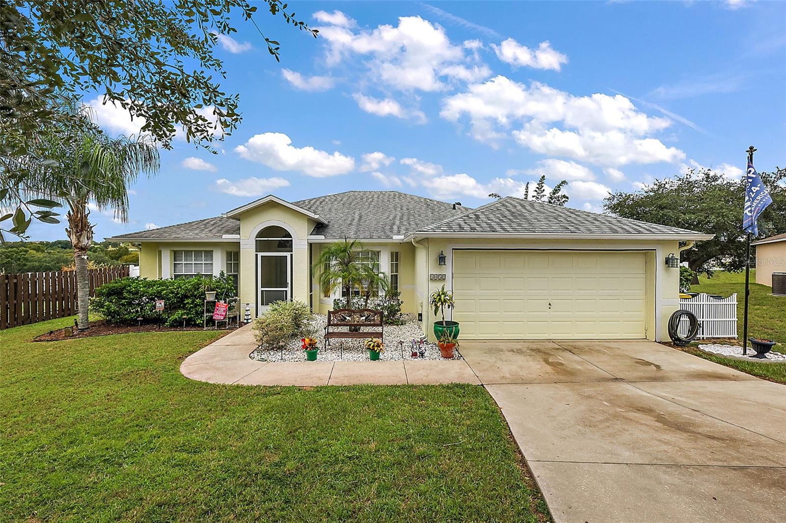 Come see this amazing large single story family home on a bump out cul de sac in the heart of Clermont . Beautiful views from your back yard including the citrus tower. Open floor plan with family room, dining room, kitchen with nook and additional bonus living area. Split bedroom plan with 3 full bathrooms The kitchen boasts generous counter space and a breakfast bar, making cooking and entertaining a delight. Stainless steel appliances. Discover a bright interior with neutral vinyl floors and new plush carpet in all the right places. The main bedroom boasts a private ensuite with separate tub, shower and walk-in closets. The other 3 bedrooms ceiling fans, and sizable closets. Covered screened lanai to enjoy relaxing with a drink after work. The yard is fully fenced yard with a storage shed. Convenient to retail, restaurants etc Low HOA fees make this home a great choice for your family! seller will consider a rent to own lease current VA mortgage is assumable buyer/buyer agent to check all measurements